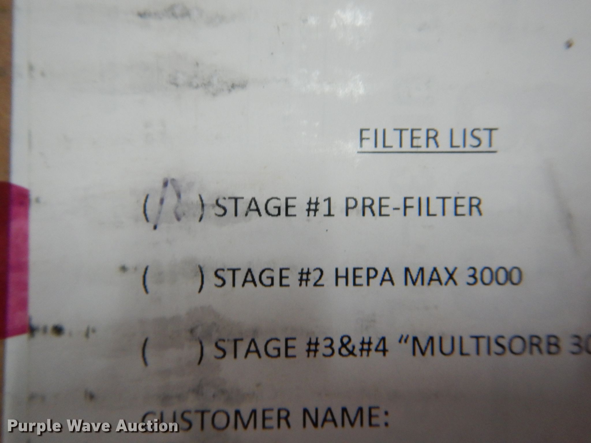 Purple Wave is selling a used Building Materials in Missouri. This item is a (6) Air Vacuum Corporation 911 air filters with the following: 120V, Control box, (2) filters