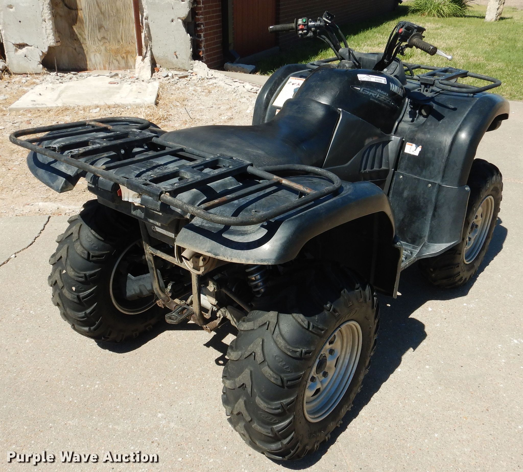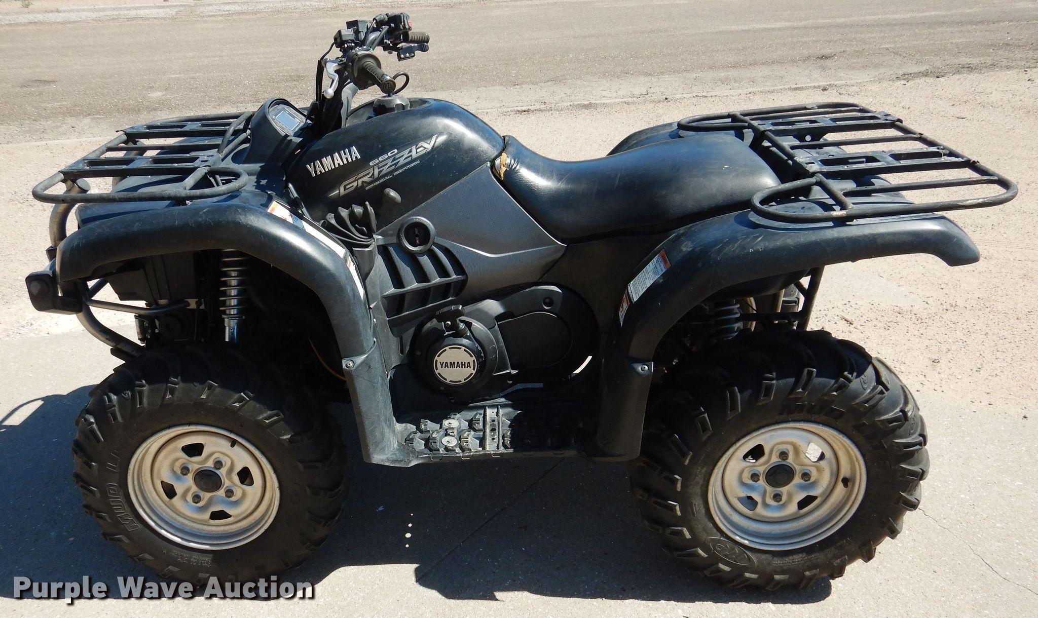 Purple Wave is selling a used ATV in Kansas. This item is a 2005 Yamaha Grizzly 650 ATV with the following: 6,092 miles on odometer, 2,443 hours on meter, Yamaha 660cc single cylinder gas engine, CVT transmission, Four wheel drive, Winch, Grill guard, 25x8-12 front tires, 25x10-12 rear tires