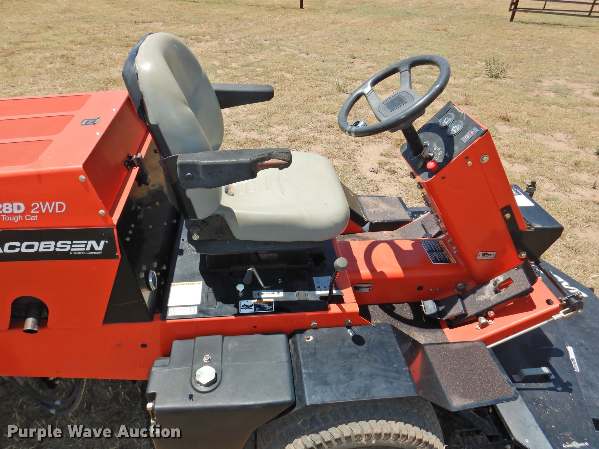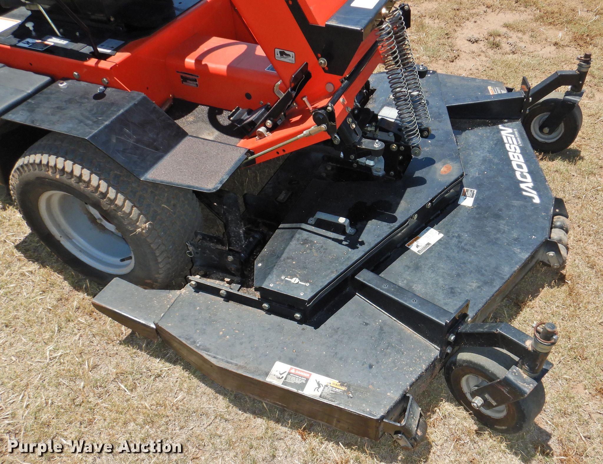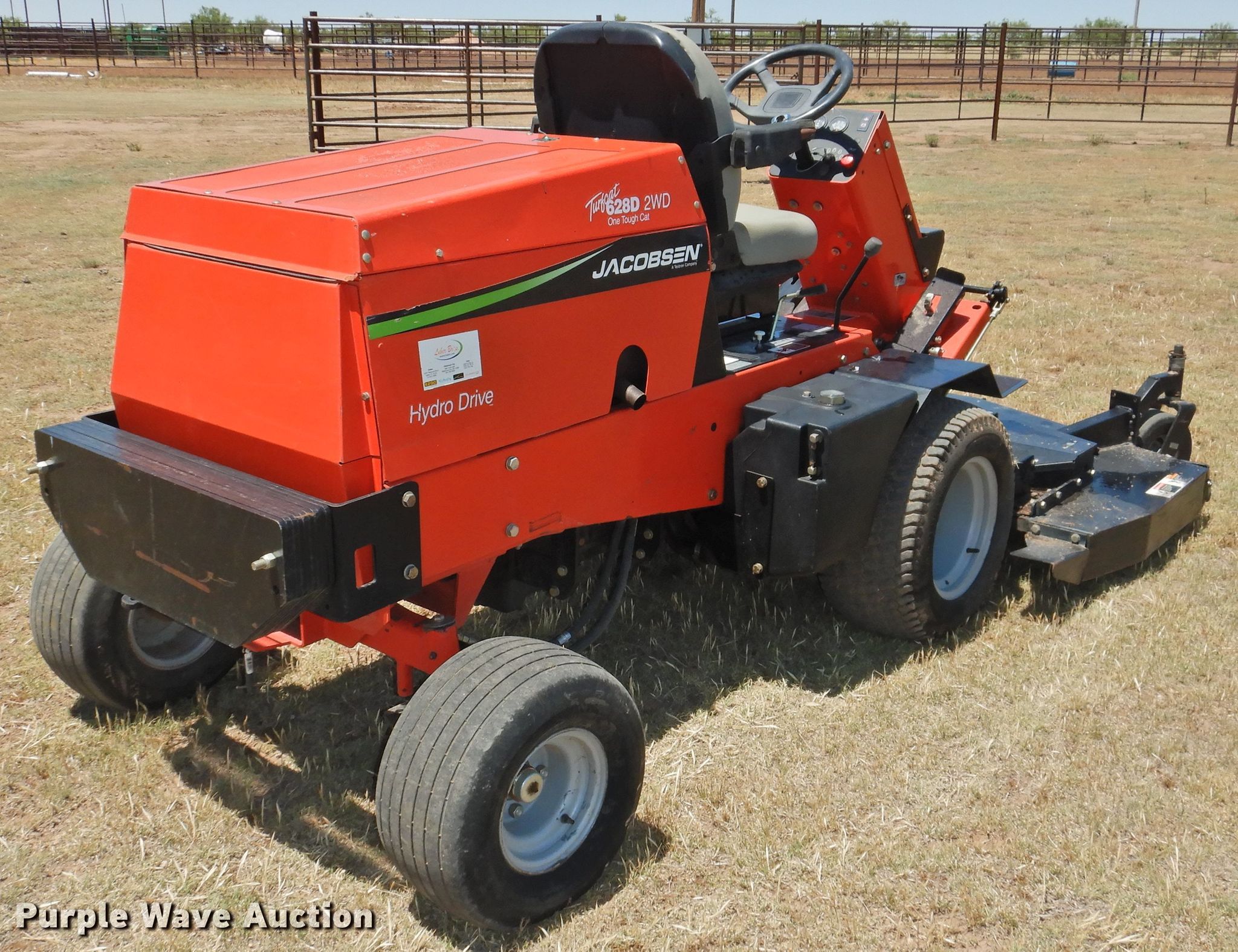 Purple Wave is selling a used Commercial Turf Mower in Texas. This item is a 2006 Jacobsen Turfcat 628D lawn mower with the following: 119 hours on meter, 72" cutting width, Kubota D1105 1.1L three cylinder diesel engine, 26 HP, Serial 6E3123, Hydrostatic transmission, Counter weights, Hydraulic front deck lift, 23x10.50-12 front tires, 18x8.50-8 rear tires, Serial 94671302282