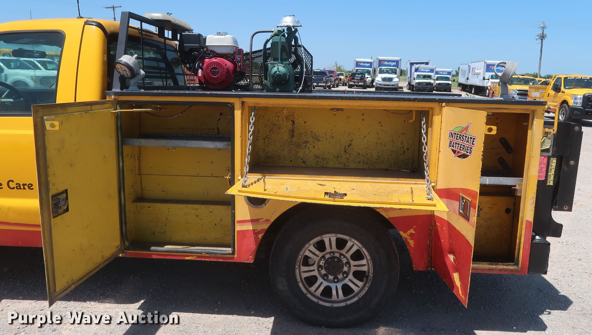 2011 Ford F250 Super Duty XL utility bed pickup truck. 221,969 miles on odometer. Engine Displacement: 6.2L V8 OHV 16V, Cylinders: 8, Fuel type: Gas. Transmission Automatic. Interior AC, Heat, Cruise control. Operational Utility bed Warner, Length: 8', End gate lift Anthony ALB1500, Air compressor Champion, Auxiliary fuel tank Pump, Hose, Nozzle assembly. Tires Size: P255/75R17. Notes Windshield chipped or cracked, Non-operational AC and heat, Steering wheel bent. Oklahoma title. 1FDBF2A64BEC54320. 10220 W Reno Ave. Oklahoma City, OK 73127