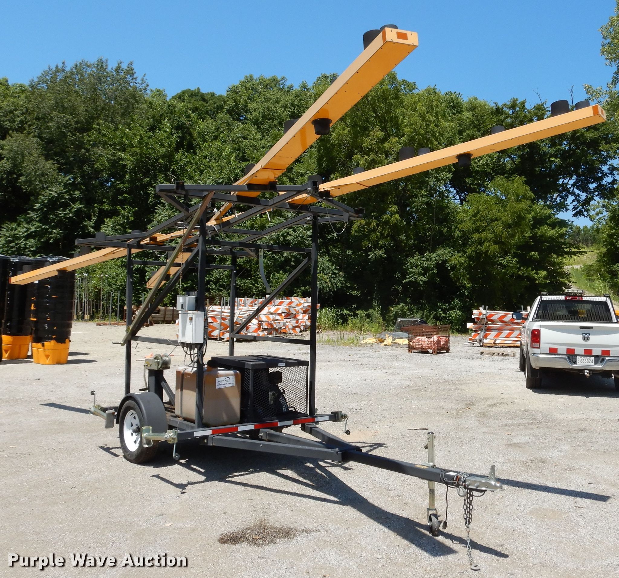 Purple Wave is selling a used Other Industrial or Business in Kansas. This item is a Wanco airport X signal with the following: 1,114 hours on meter, Yanmar L48V6 single cylinder diesel engine, Manual hoist, (4) outriggers, 2" ball hitch, 205/75R15 tires, Unknown operating condition