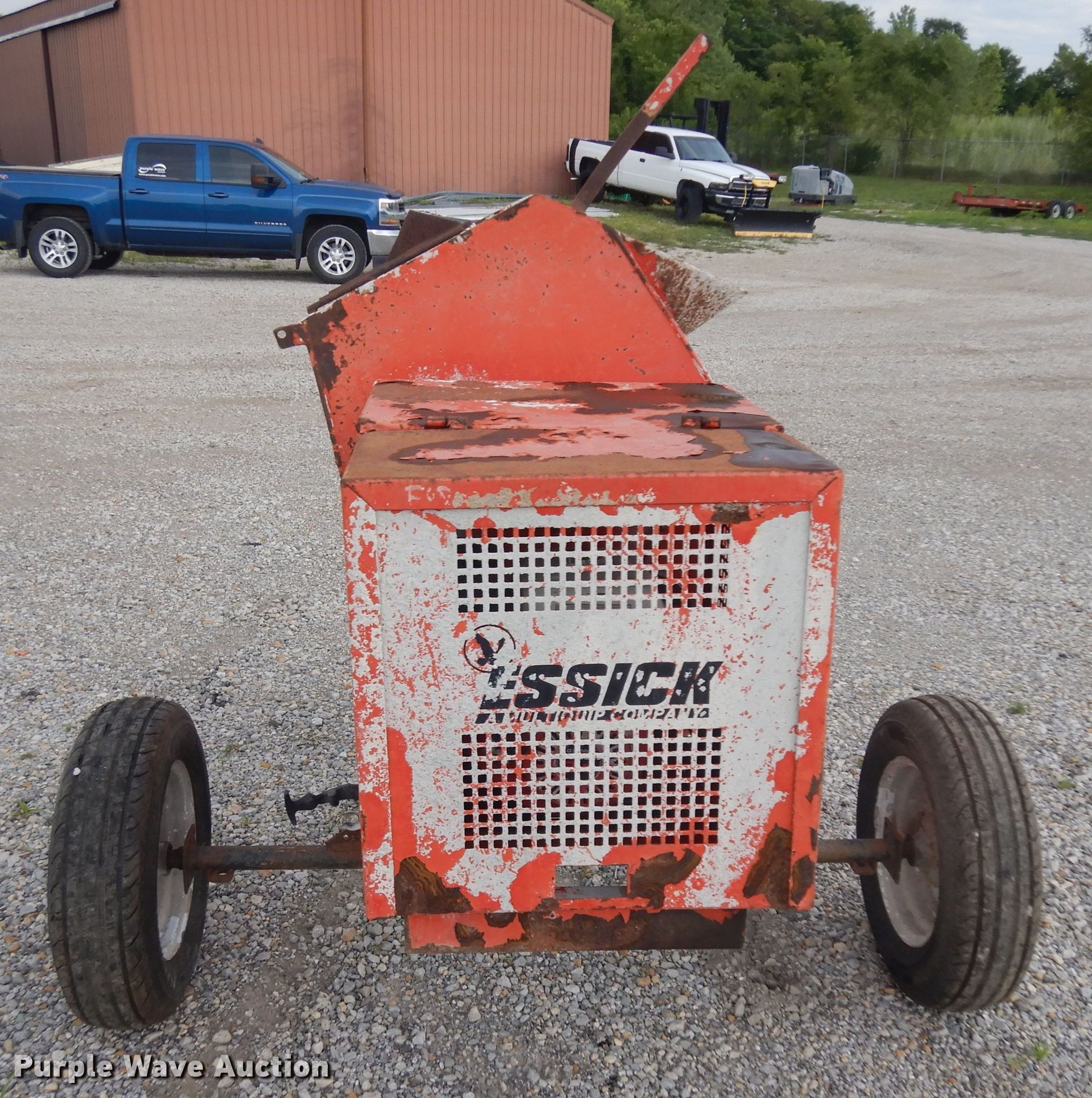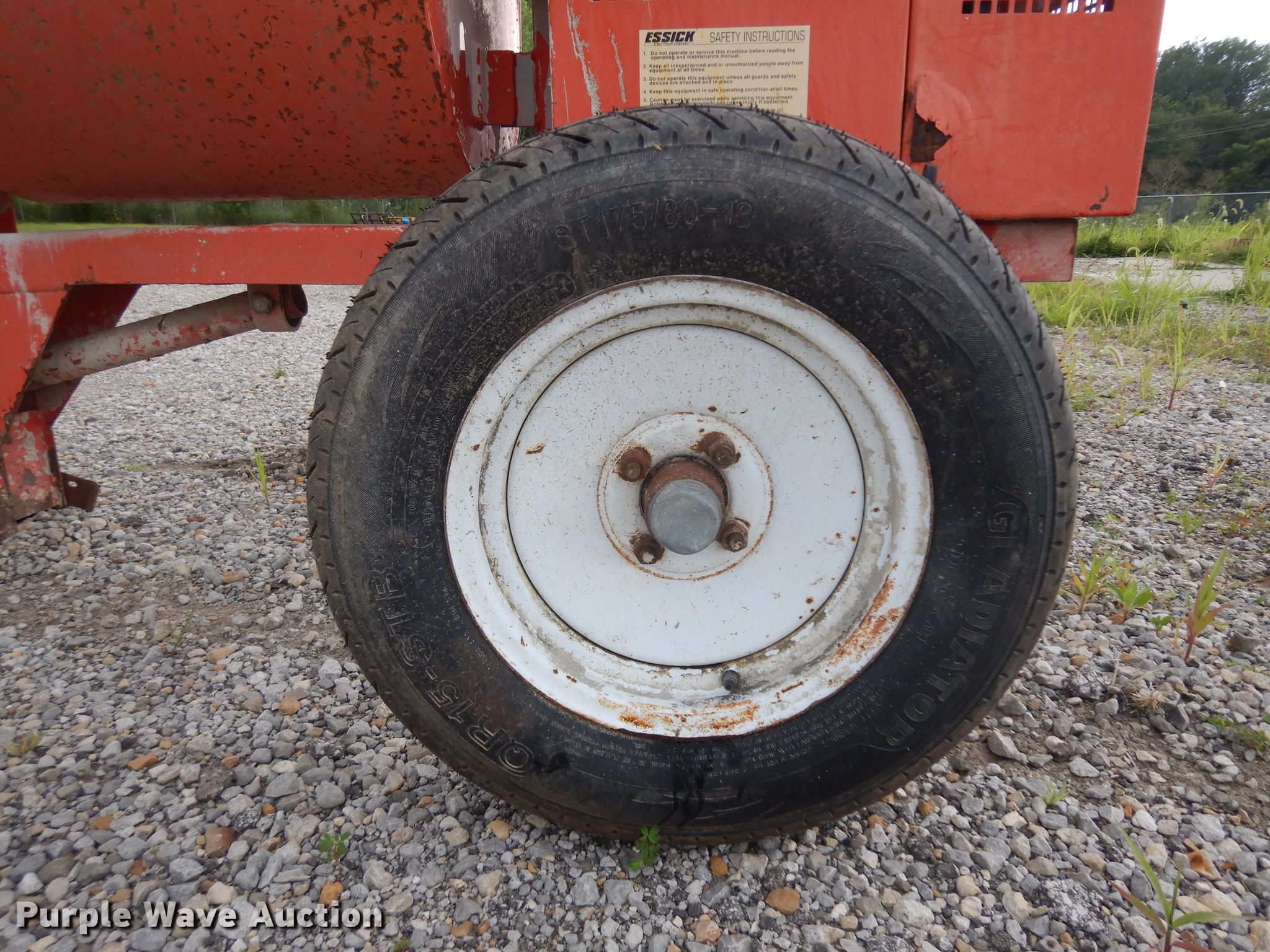 Purple Wave is selling a used Concrete Dispenser in Kansas. This item is a Essick EM-900 concrete mixer with the following: Single cylinder gas engine, 175/80-13 tires, Serial 98825765