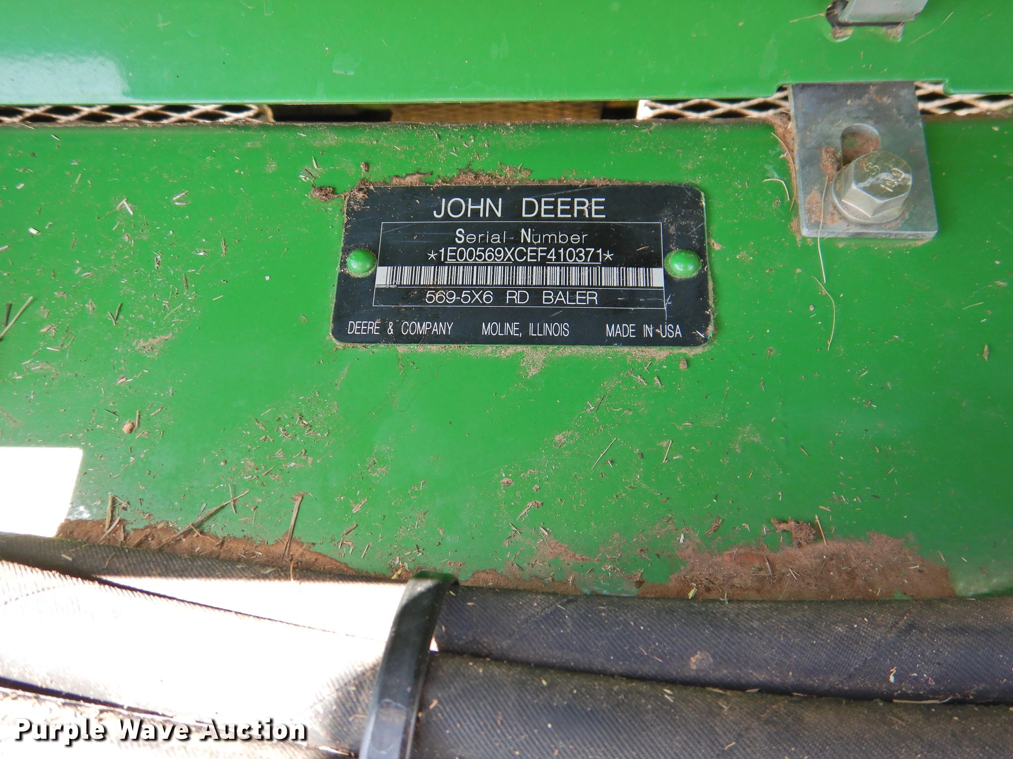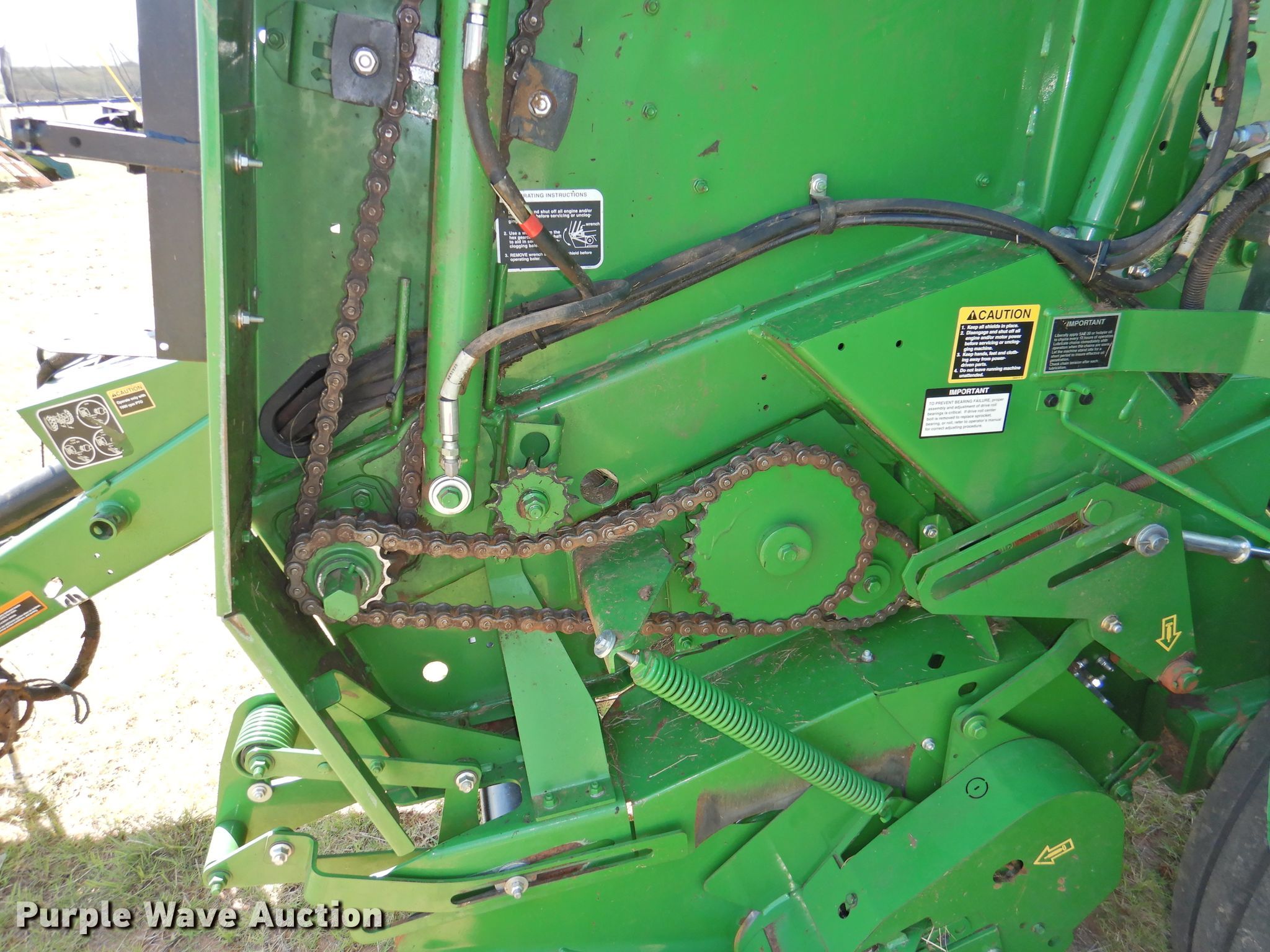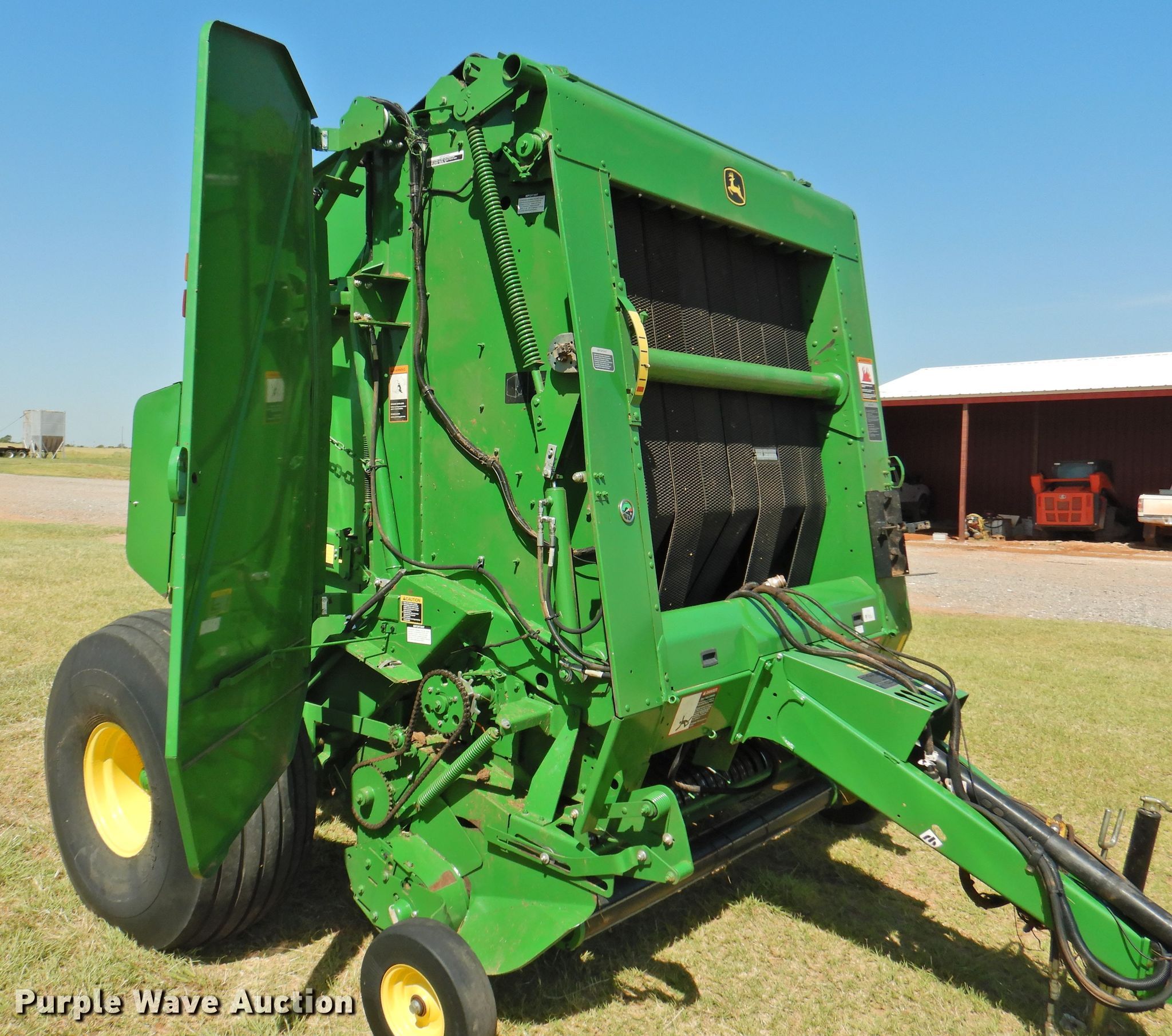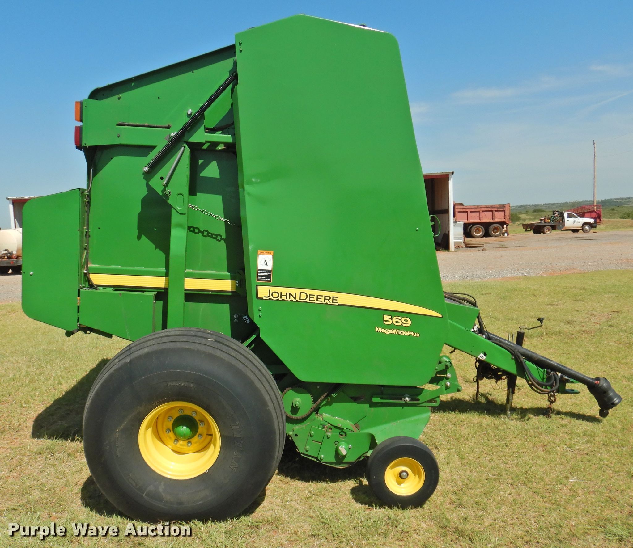 Purple Wave is selling a used Round Baler in Oklahoma. This item is a 2015 John Deere 569 Mega Wide Plus round baler with the following: Bales count: 9,452, Serial: 1E00569XCEF410371