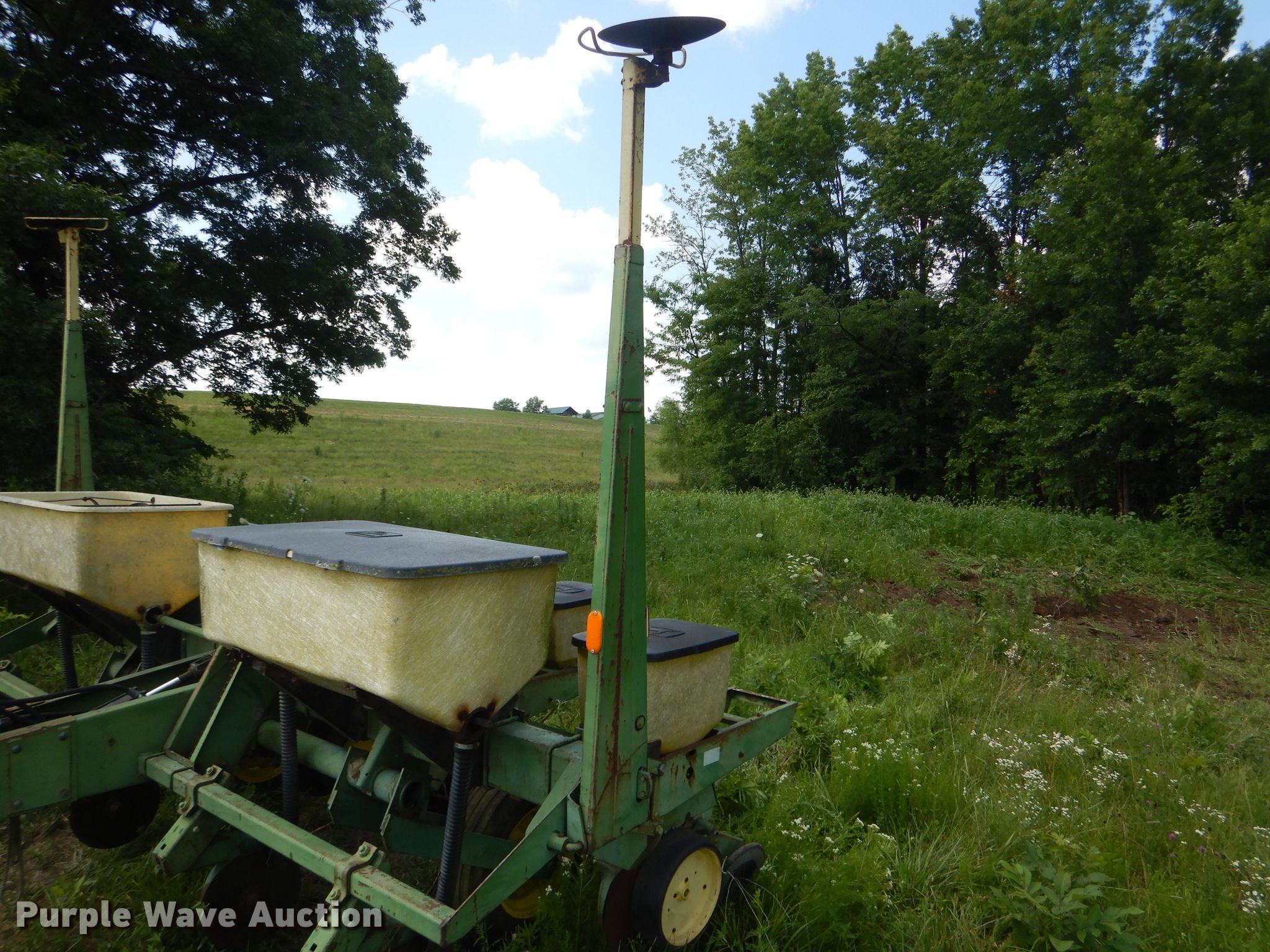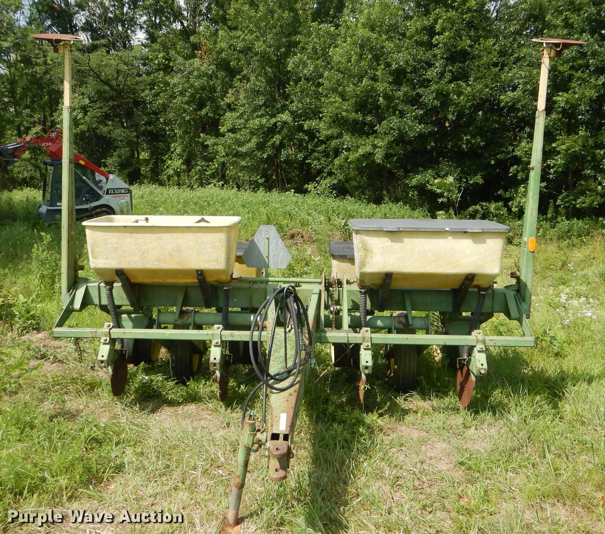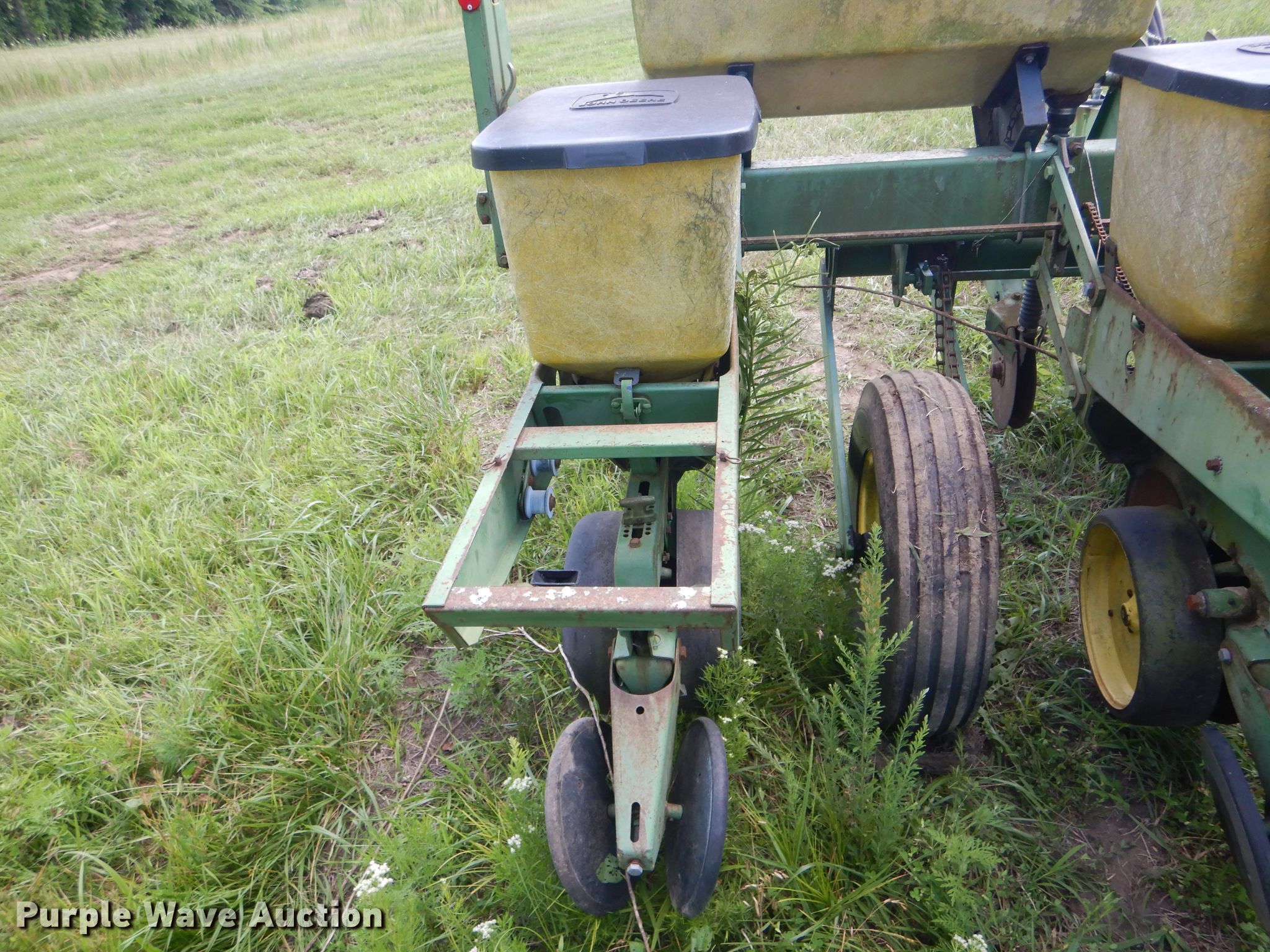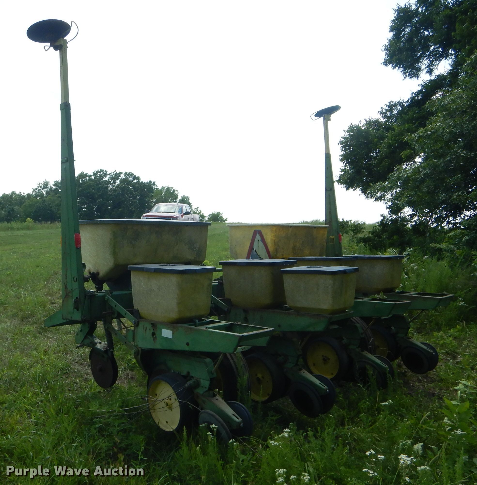 Purple Wave is selling a used Planter in Missouri. This item is a John Deere 7000 planter with the following: 12'W, Four row units, 38" row spacing, Marker arms, Individual seed hoppers, Ground meter drive, Double disk openers, Double gauge wheels, Double rubber closing system, (2) 7.60-15 transport tires