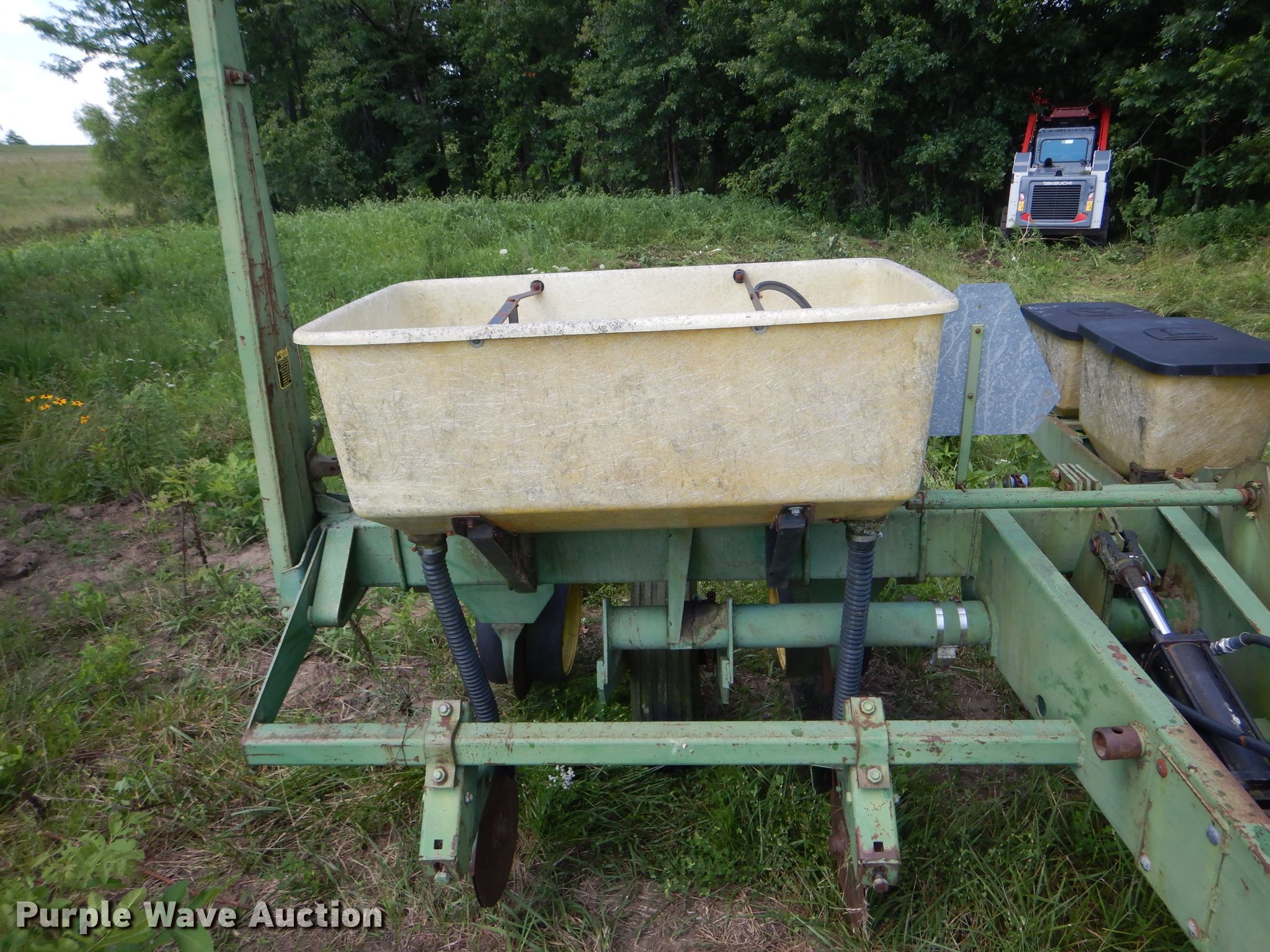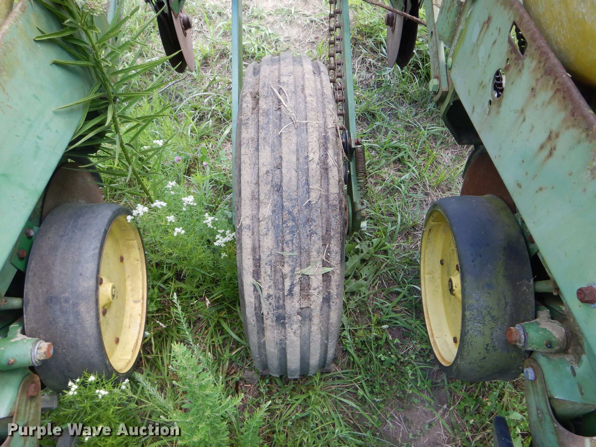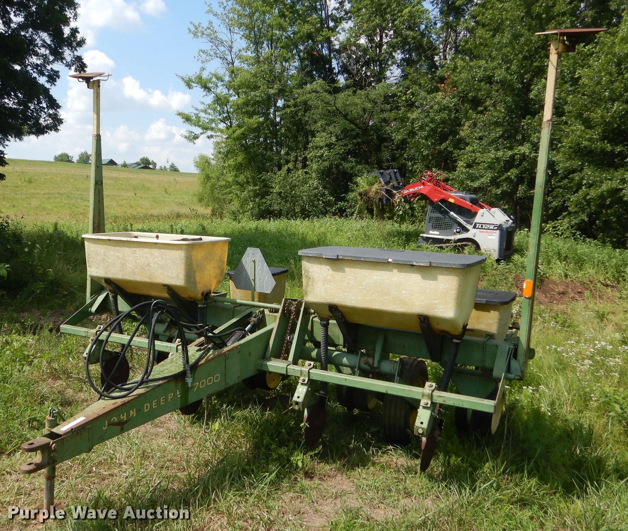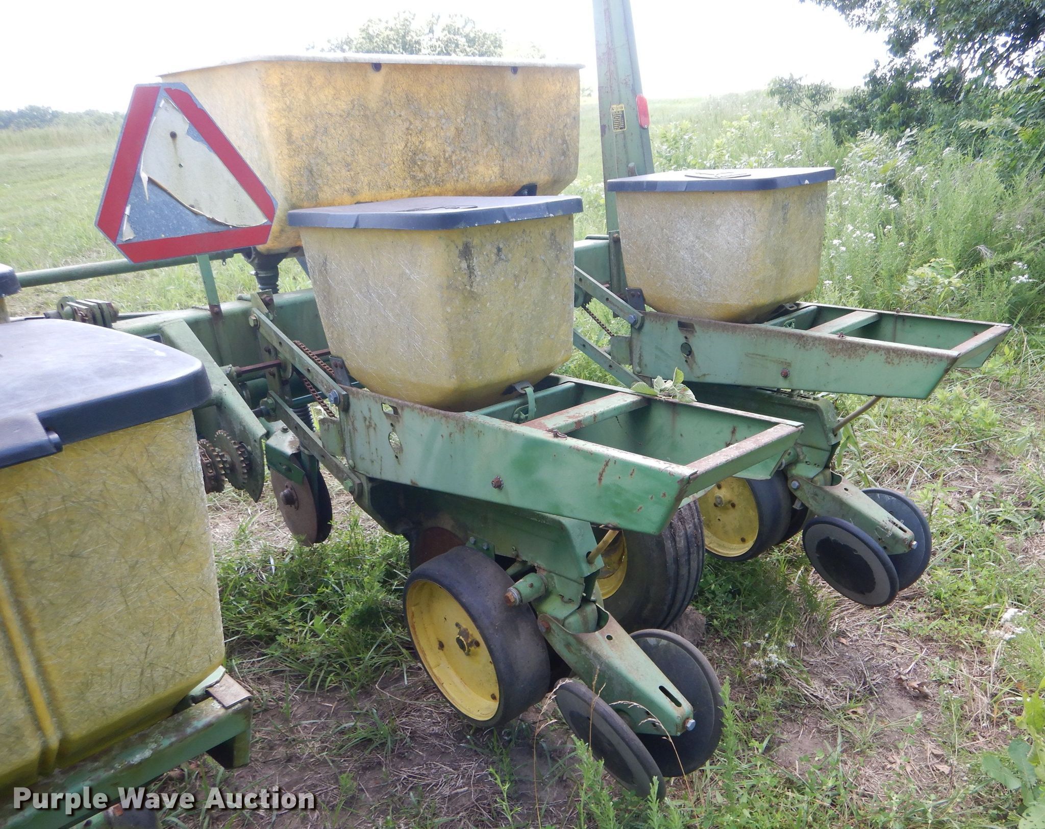 Purple Wave is selling a used Planter in Missouri. This item is a John Deere 7000 planter with the following: 12'W, Four row units, 38" row spacing, Marker arms, Individual seed hoppers, Ground meter drive, Double disk openers, Double gauge wheels, Double rubber closing system, (2) 7.60-15 transport tires