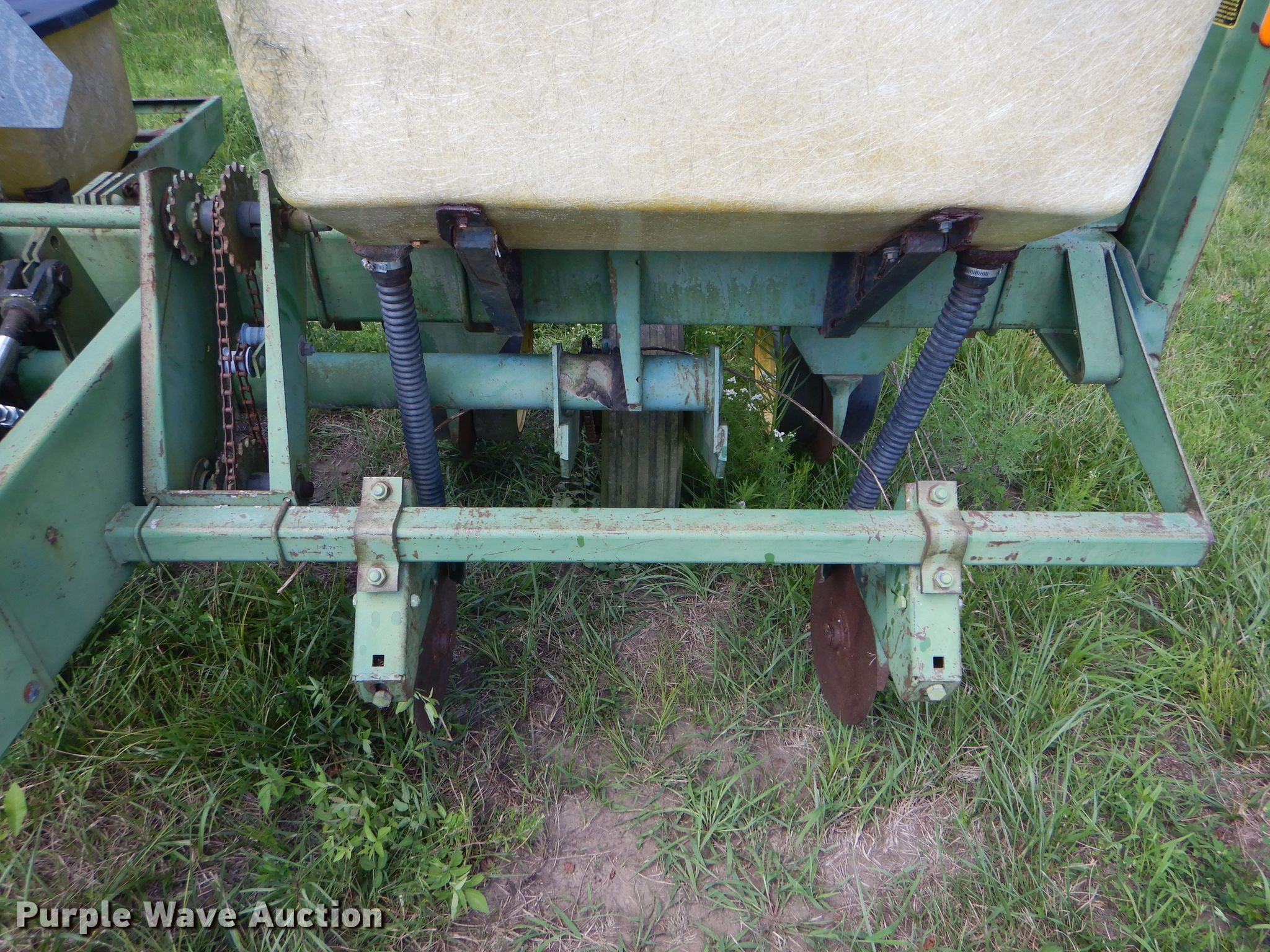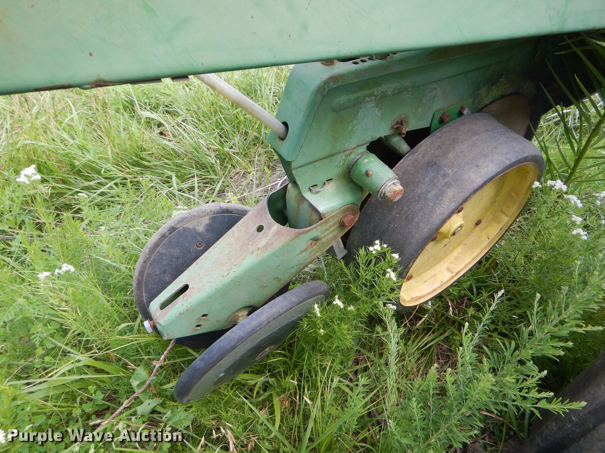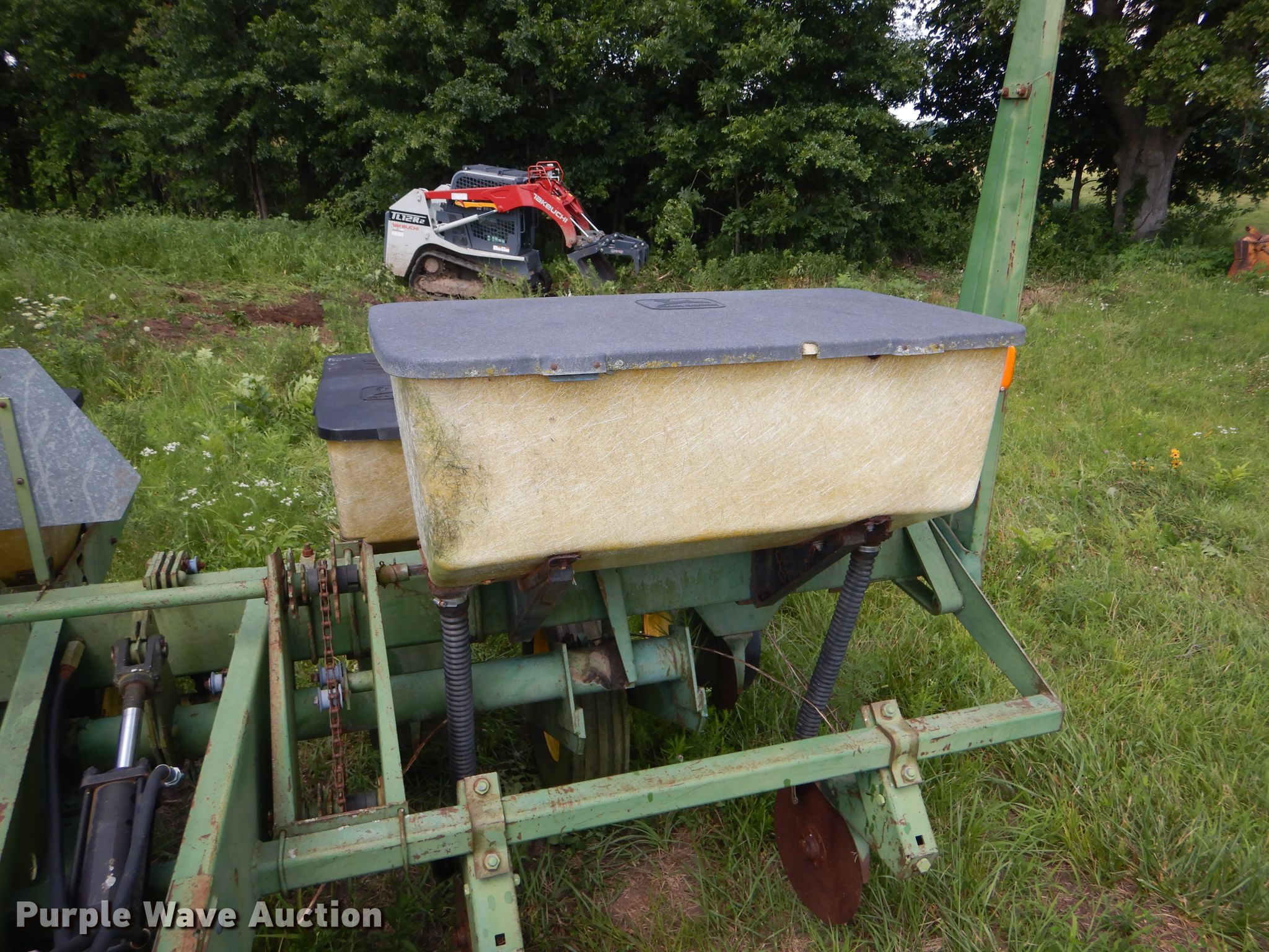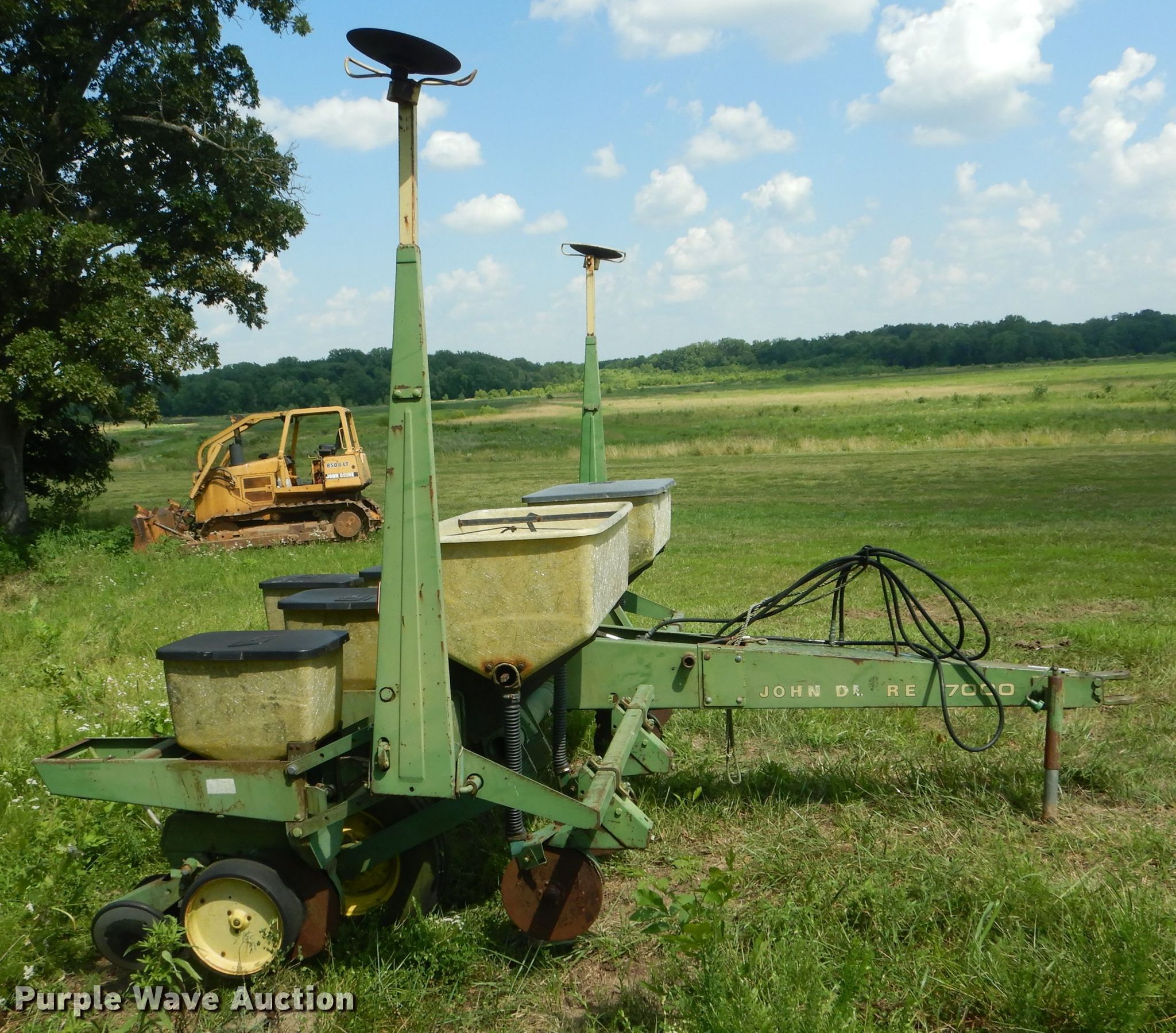 Purple Wave is selling a used Planter in Missouri. This item is a John Deere 7000 planter with the following: 12'W, Four row units, 38" row spacing, Marker arms, Individual seed hoppers, Ground meter drive, Double disk openers, Double gauge wheels, Double rubber closing system, (2) 7.60-15 transport tires