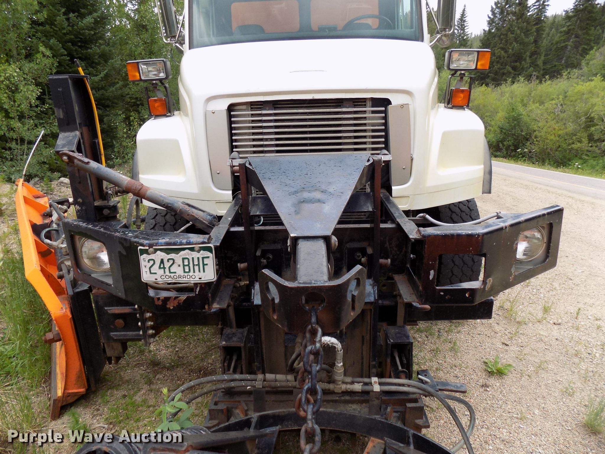 2001 Freightliner FL80 spreader truck. 65,626 miles on odometer, Unit #: 1. Engine Cummins ISC 300, Displacement: 8.3L, Cylinders: 6, Fuel type: Diesel, HP: 300. Transmission Automatic, Four wheel drive. Chassis Axles: Single, Suspension: Spring, Brakes: Air, PTO, GVWR: 39,800 lbs FAWR: 16,000 lbs, RAWR: 23,800 lbs, Wheelbase: 157". Interior Heat, Heated mirrors, Power windows, Cruise control. Operational Spreader bed Monroe MV-120-84-50, 12' L, Bed type: Steel, Plow Monroe MP41R11-CT, Width: 132", Wing plow Width: 9'. Tires Front: 385/65R22.5, Rear: 11R22.5. Notes Non-operational unit. Colorado title. Title distribution may be delayed up to 30 days from verification of funds. 1FV2JLCB11HG37820. Town of Winter Park Public Works Dept.. 80500 US-40. Winter Park, CO 80482