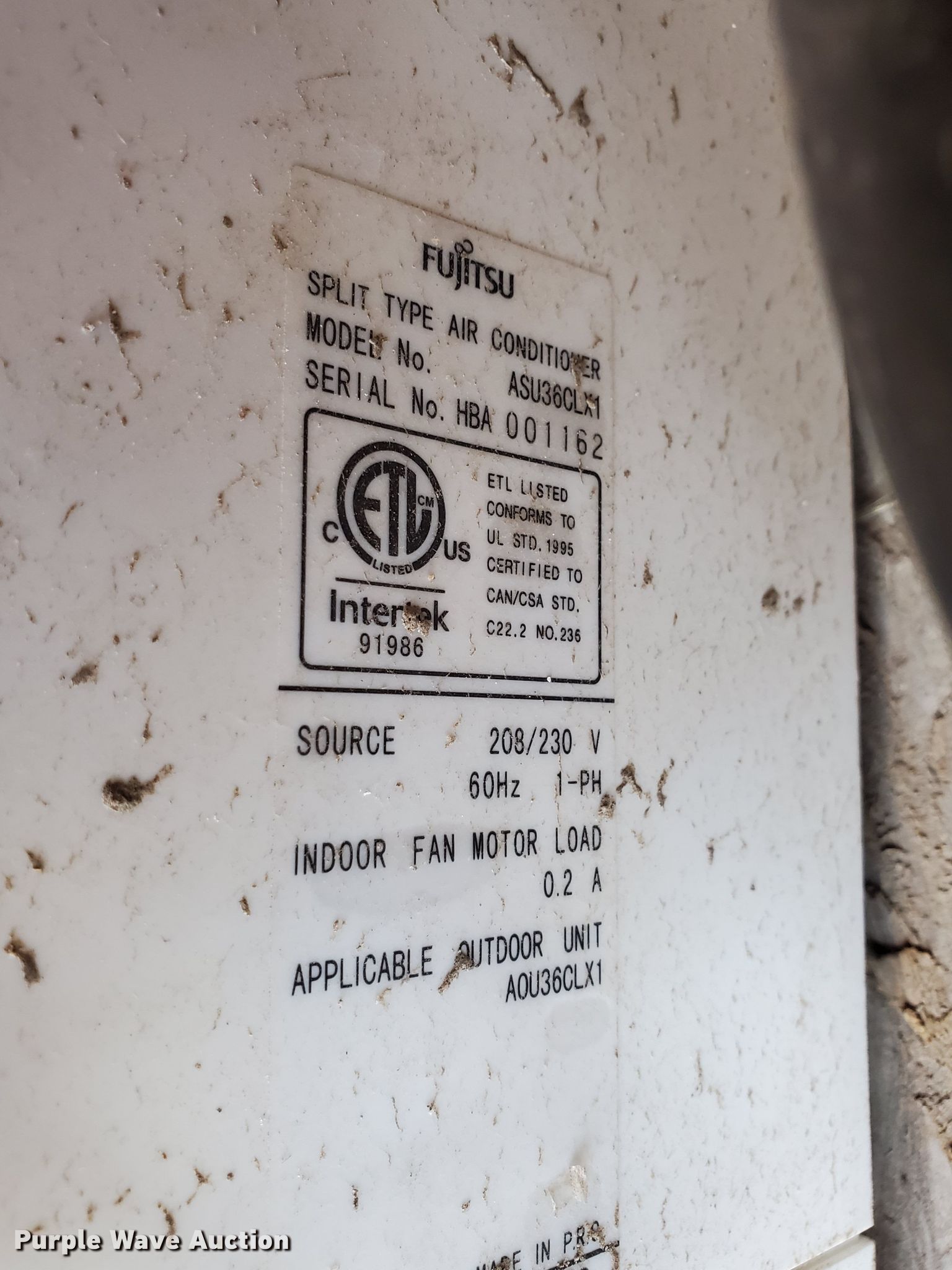 Purple Wave is selling a used Appliances in Kansas. This item is a Fujitsu Halcyon AC unit with the following: 230V, Single phase, 33,000 BTU capacity, Split type