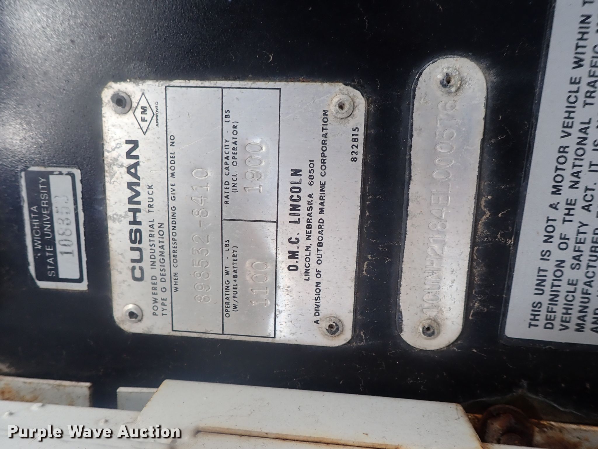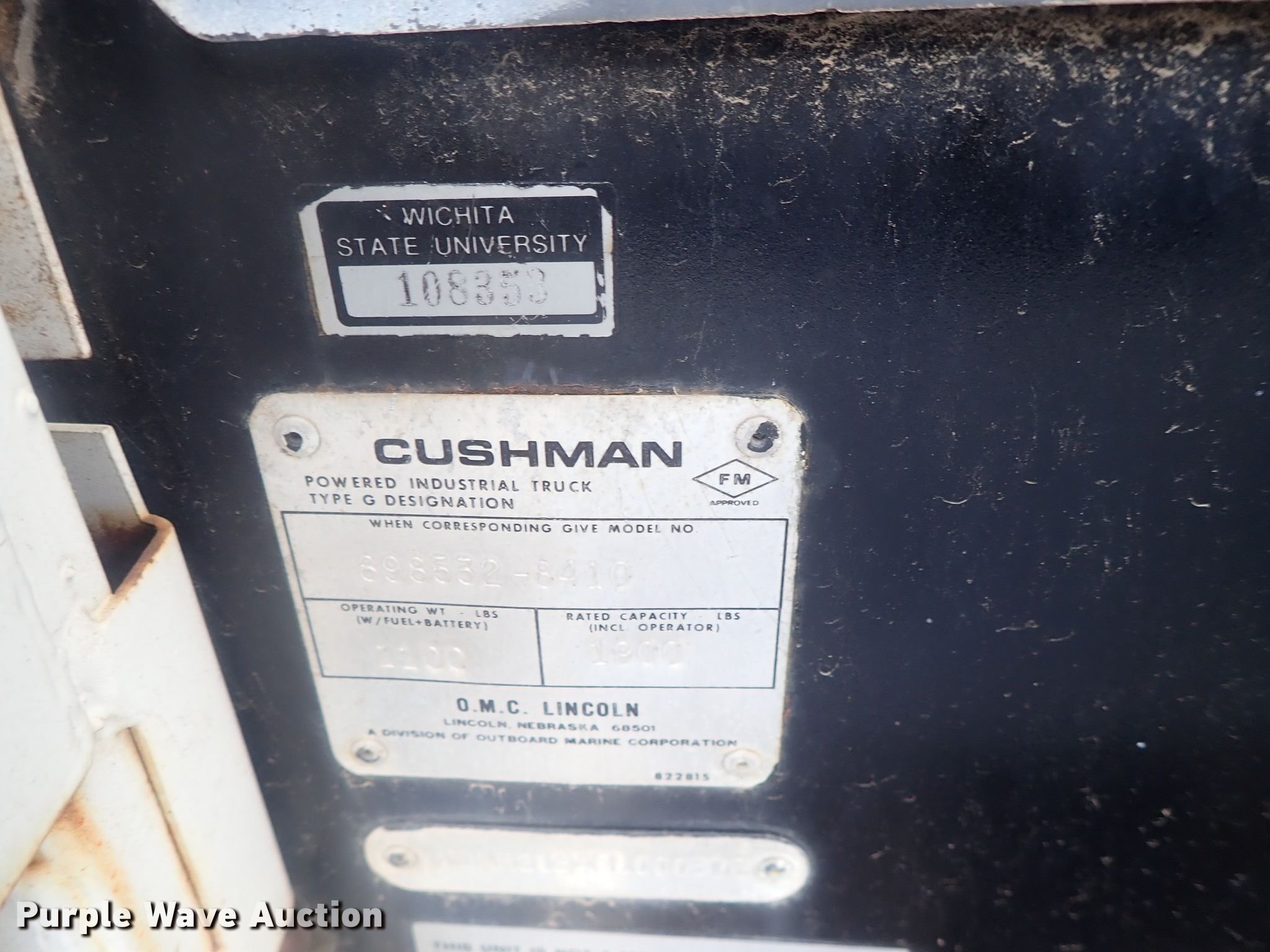 Purple Wave is selling a used Utility Vehicle in Kansas. This item is a 1984 Cushman 898532-8410 utility vehicle with the following: 3,114 hours on meter, Unit #: 140