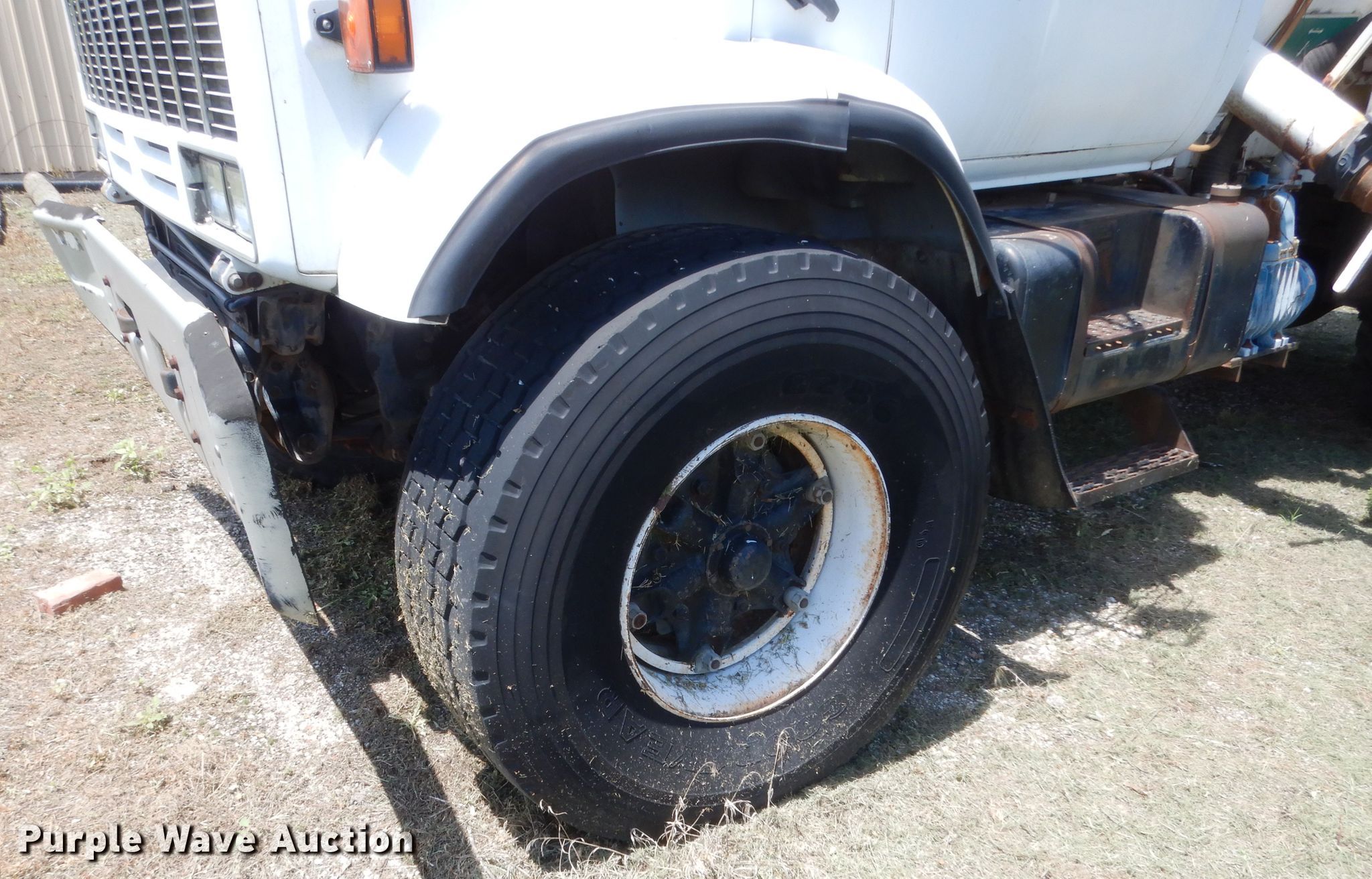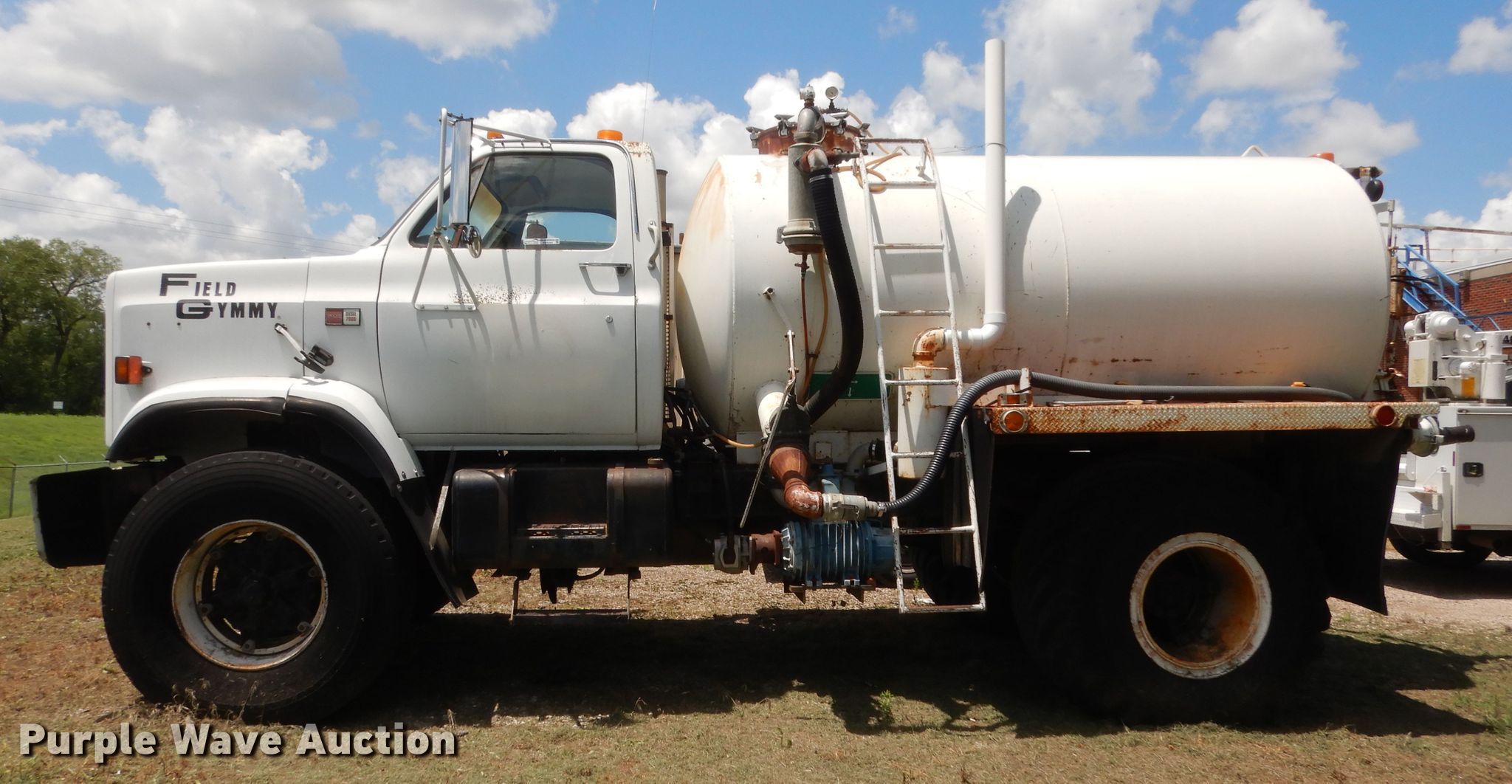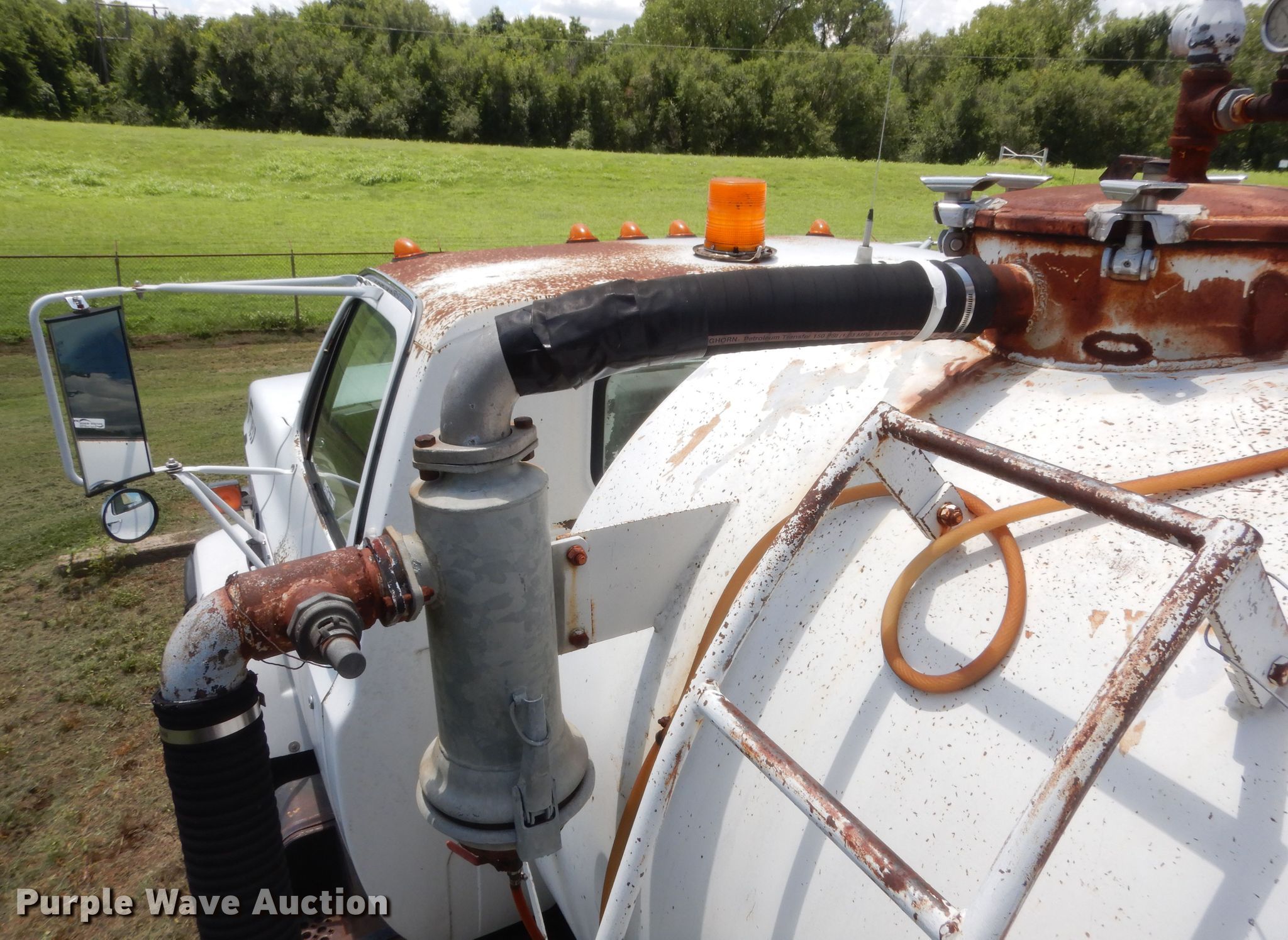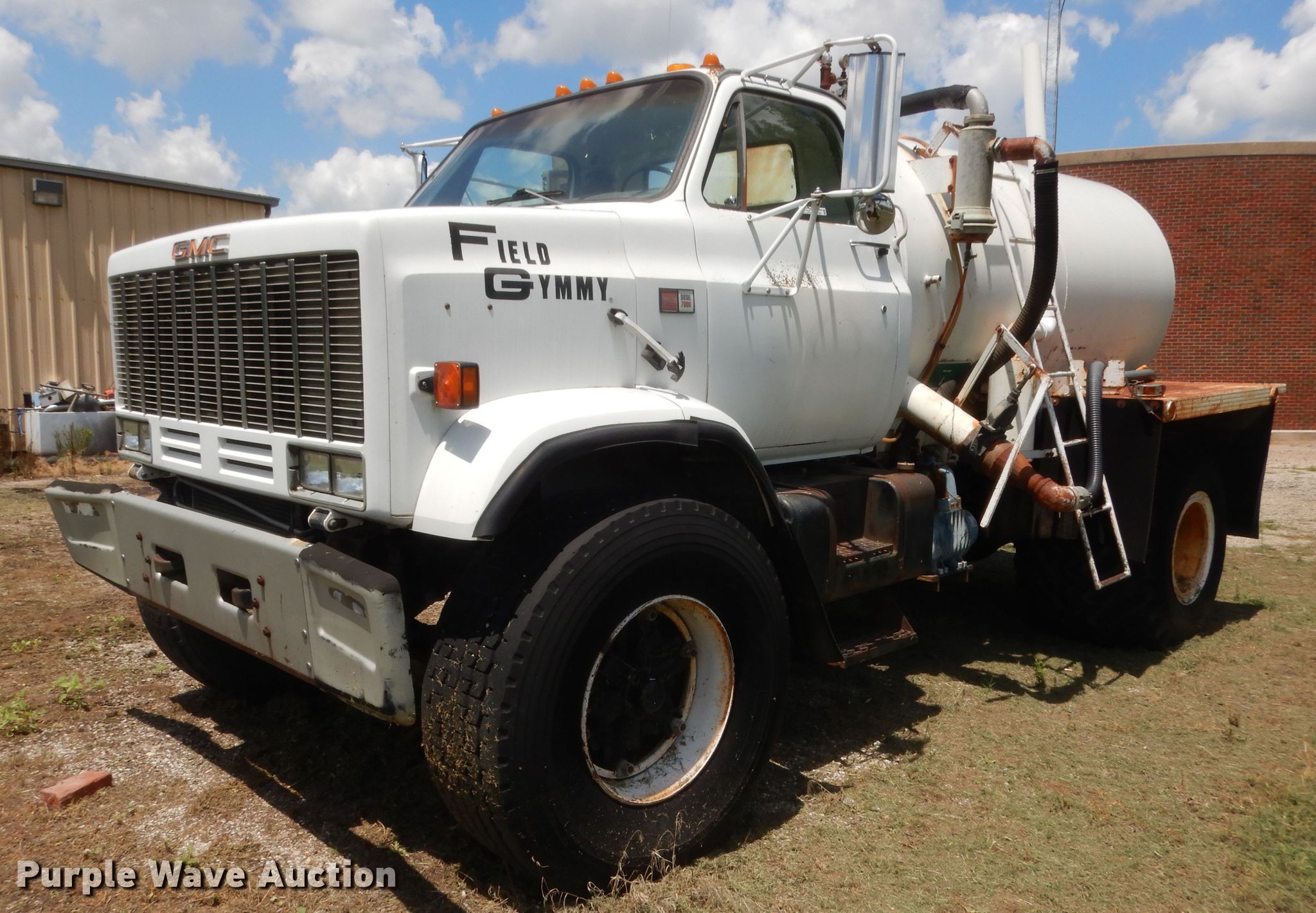 1985 GMC 7000 manure spreader truck. 74,735 miles on odometer. Engine Caterpillar 3208, Displacement: 10.4L, Cylinders: 6, Fuel type: Diesel, HP: 210. Transmission Automatic. Chassis Axles: Single, Suspension: Spring, Brakes: Air, PTO. Operational Tank bed Capacity: 1,600 gallons, Vacuum pump Allestimenti M10. Tires Front: 455/65R22.5, Rear: 48x31.00-20. Notes Unknown operating condition. Photocopy of title rec'd and verified. 1GDM7D1Y7FV625477. City of Arkansas City Water Treatment Plant. 1701 S M St. Arkansas City, KS 67005