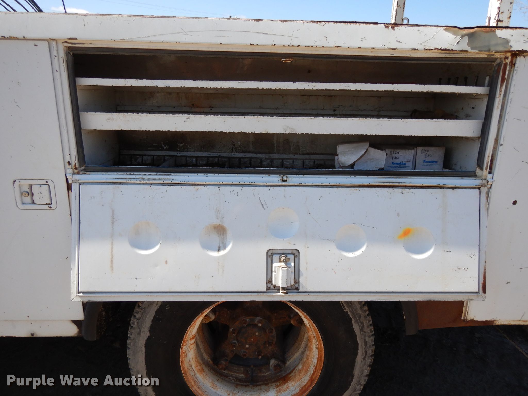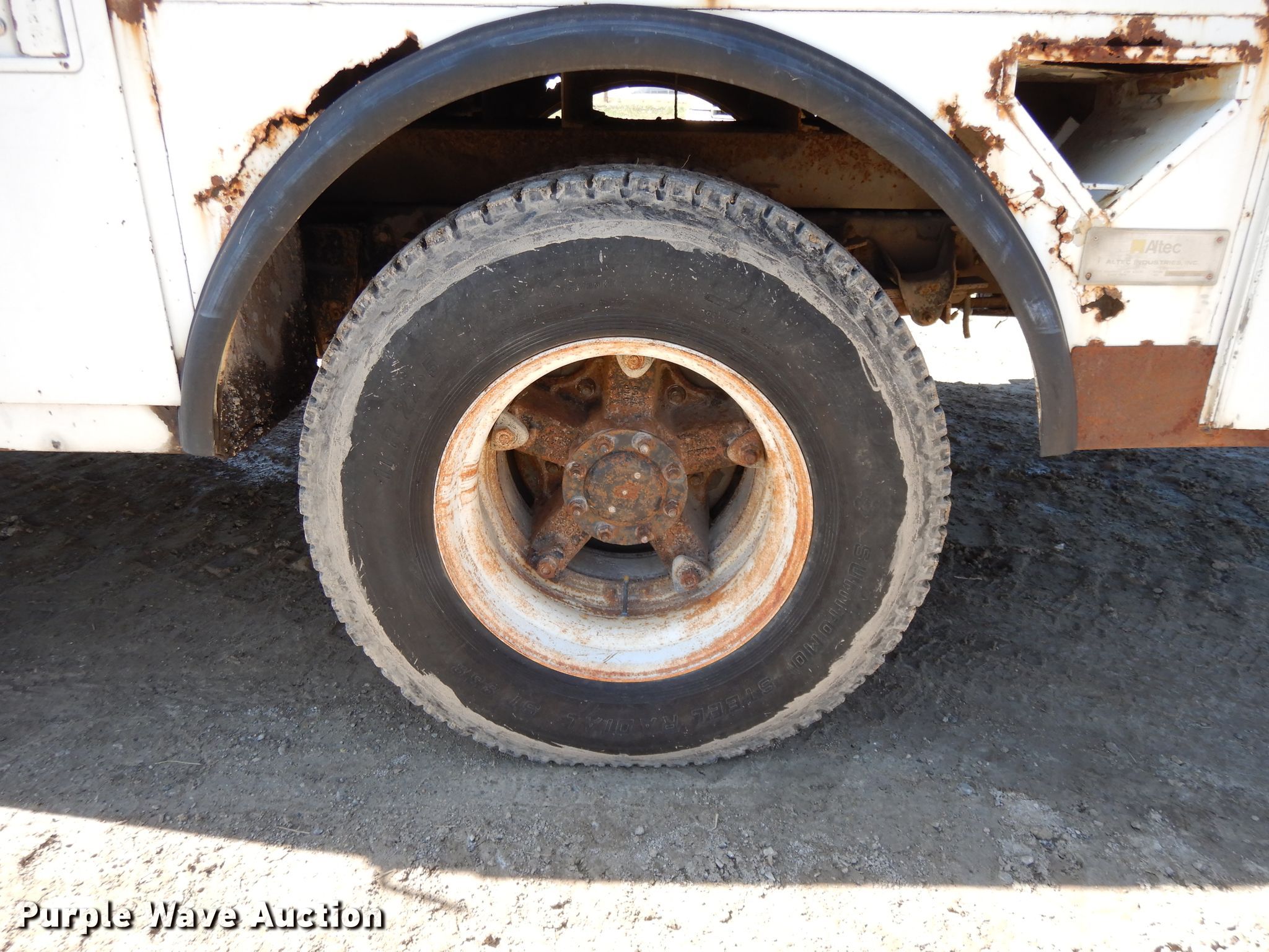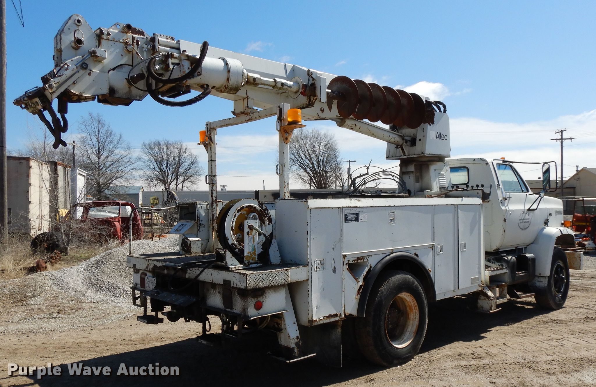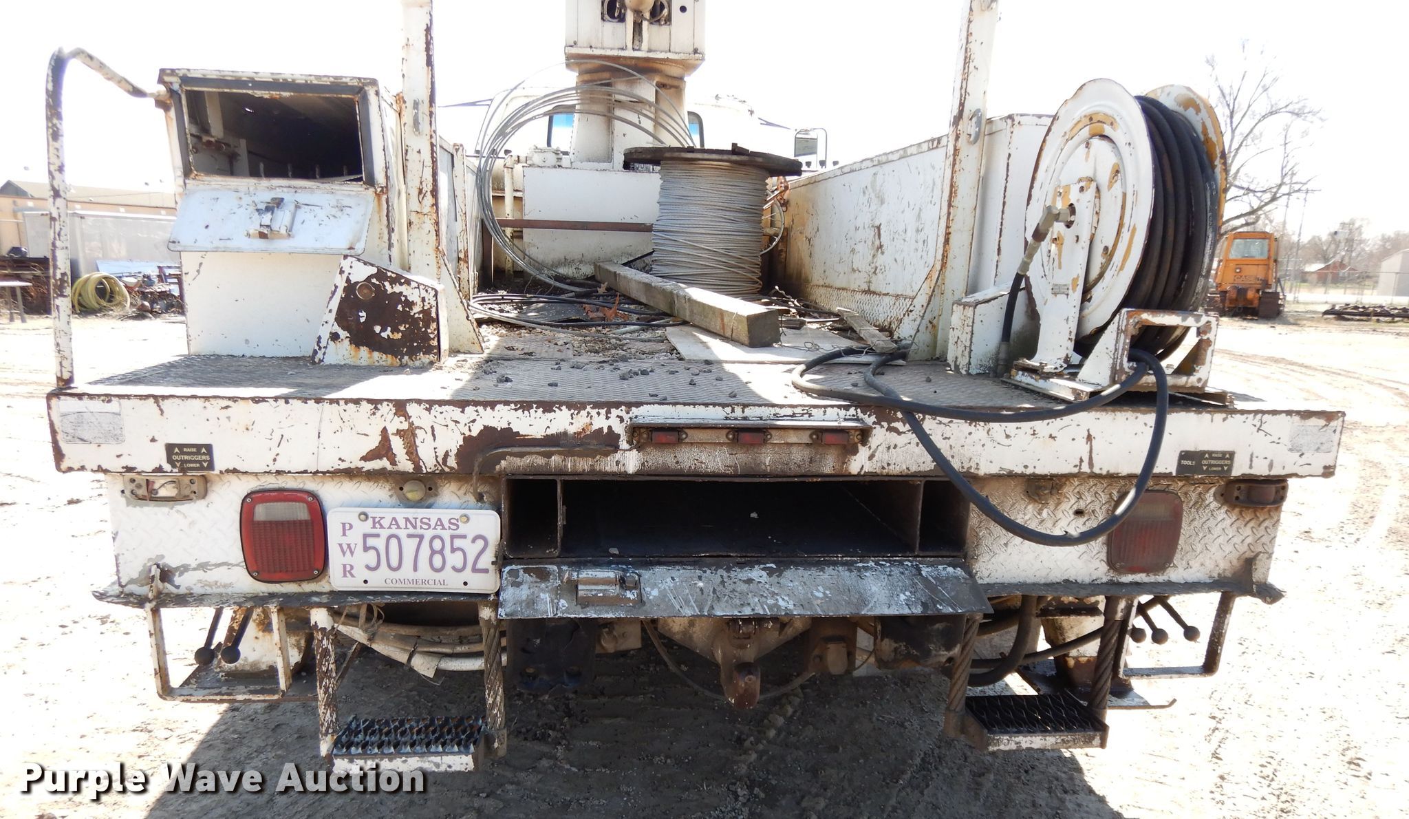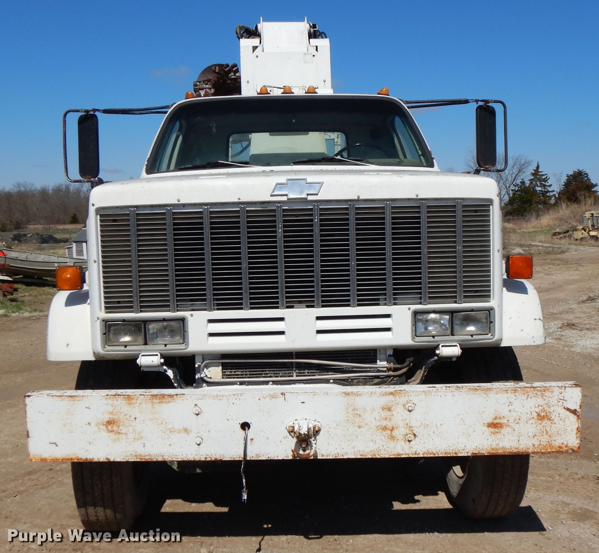 Purple Wave is selling a used Digger Derrick Truck in Kansas. This item is a 1986 Chevrolet C70 digger derrick truck with the following: 157,406 miles on odometer, Caterpillar 3208 10.4L V8 diesel engine, 10 speed manual transmission, Single axle, Heat, PTO, Altec 12'L utility bed, Serial 37-61062, Altec D890A-B telescopic boom, 13,300 lbs maximum lift capacity, 40' maximum lift height, Ground controls, Material handler, Pole guide, 18" diameter auger, Serial 0586-E0334, 164" wheelbase, Spring suspension, Air brakes, 11R22.5 tires, GVWR 29,900 lbs, Contents not included, Clutch weak, Power steering leak, Hydraulic leaks, Electrical issues, Bad outrigger valve, Non-operational boom, Turret bearings bad