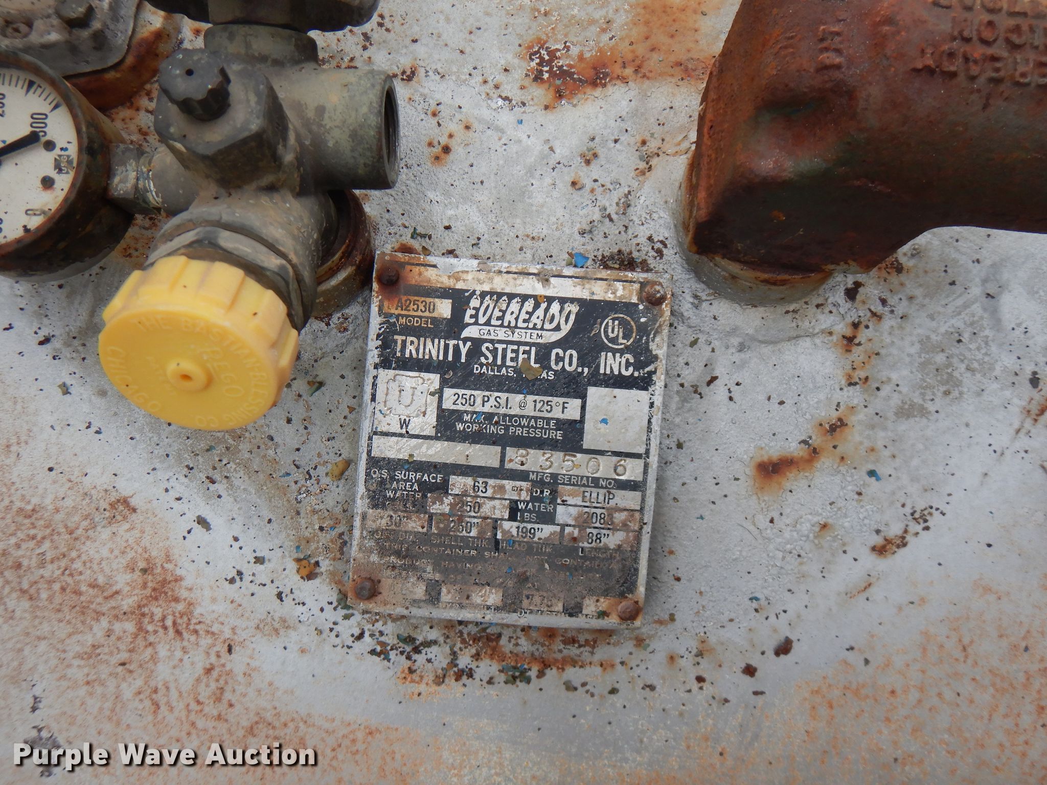 Purple Wave is selling a used Fuel and Lube in Oklahoma. This item is a Steel propane tank with the following: 250 gallon capacity, 0.25" shell thickness