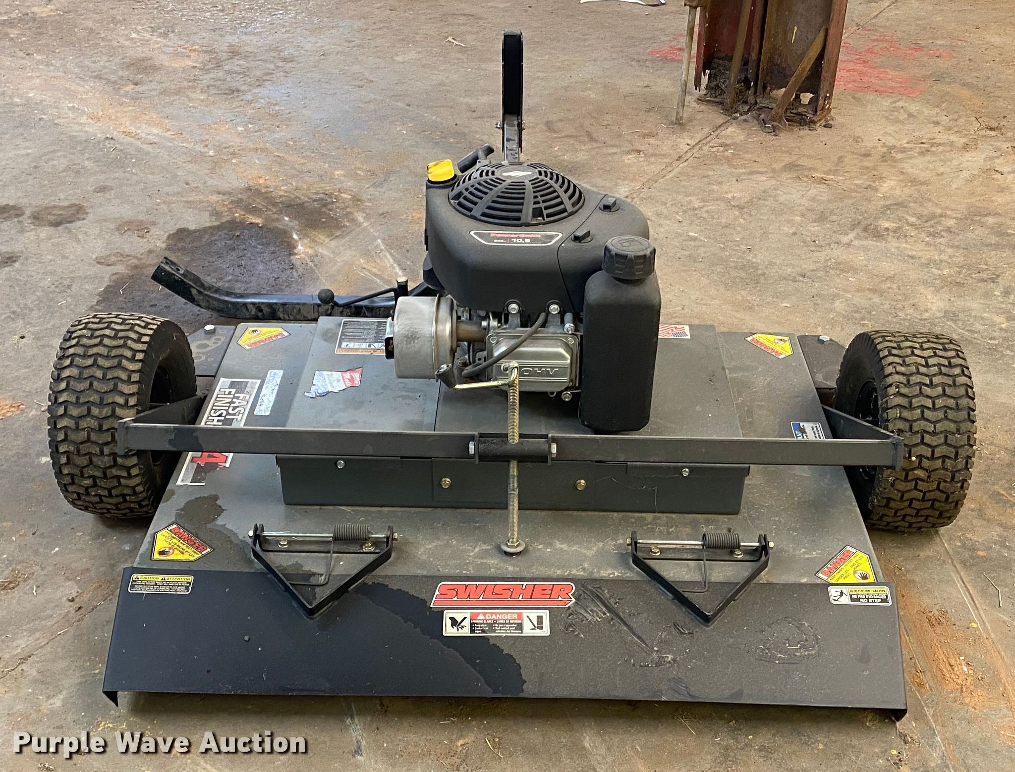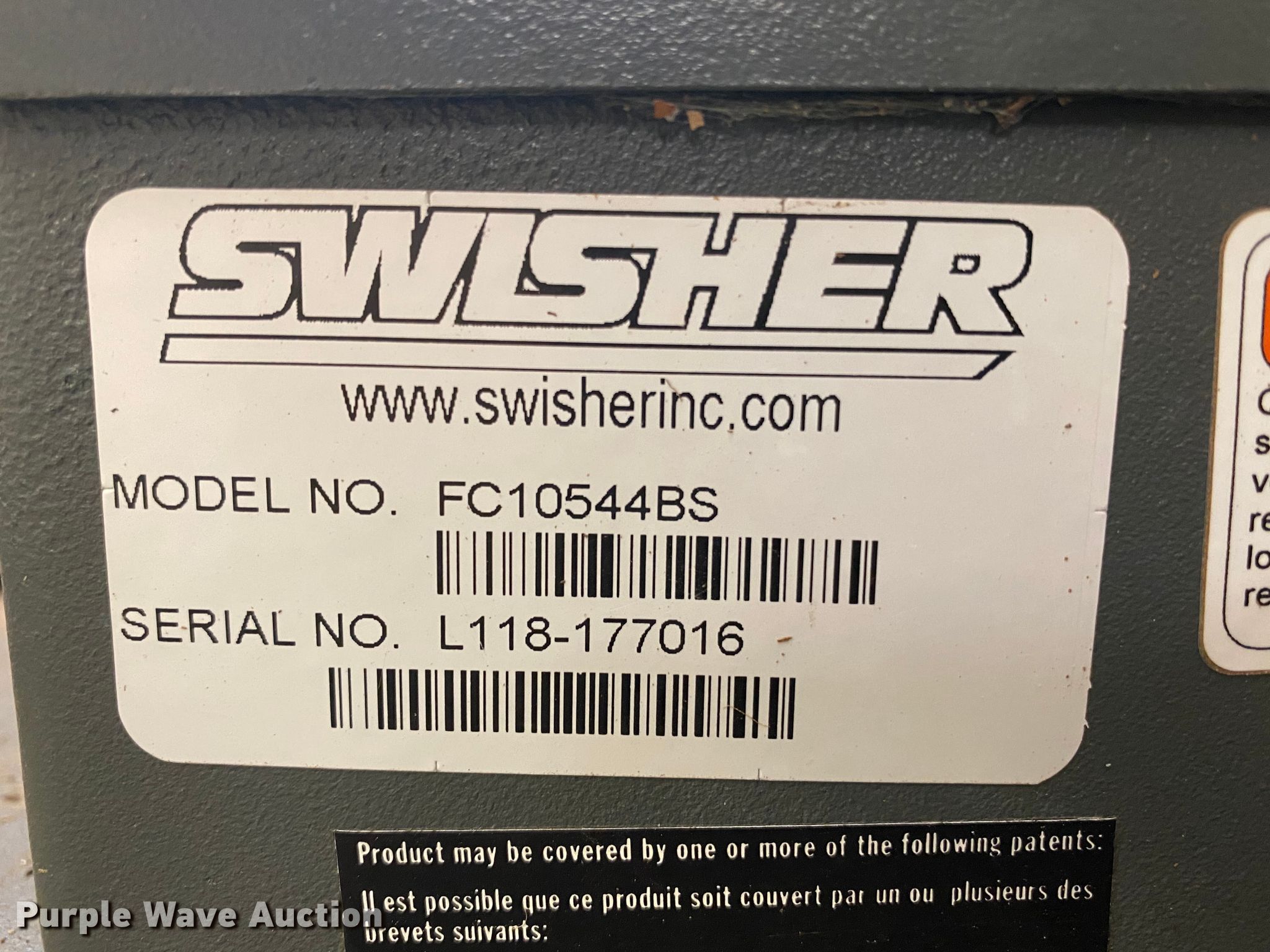 Purple Wave is selling a used Lawn Mower in Oklahoma. This item is a Swisher Fast Finish 44 finish mower with the following: Model FC10544BS, 44" cut, Power Built 344cc gas engine, 15x6.00-6 tires, Serial L118-177016