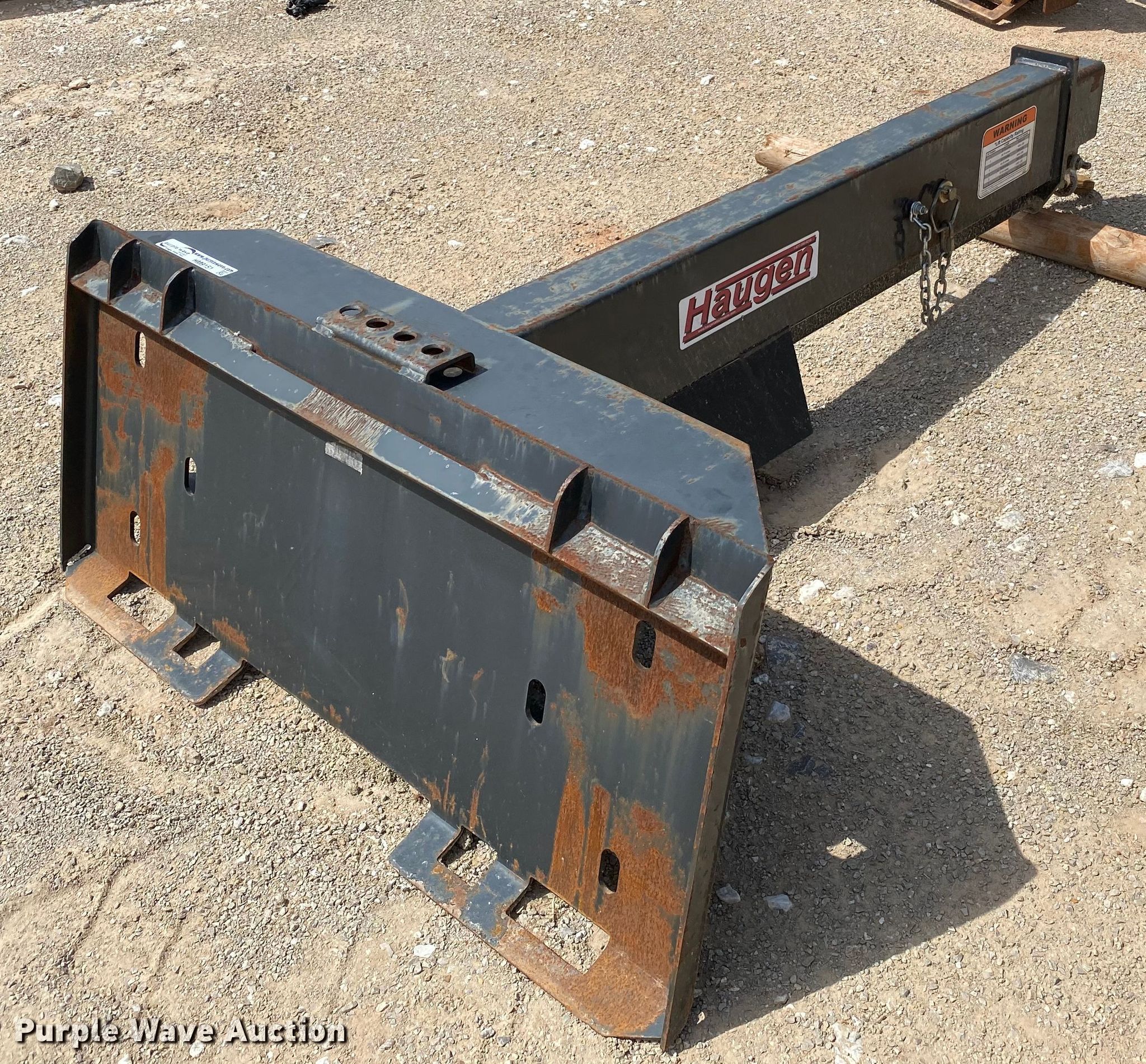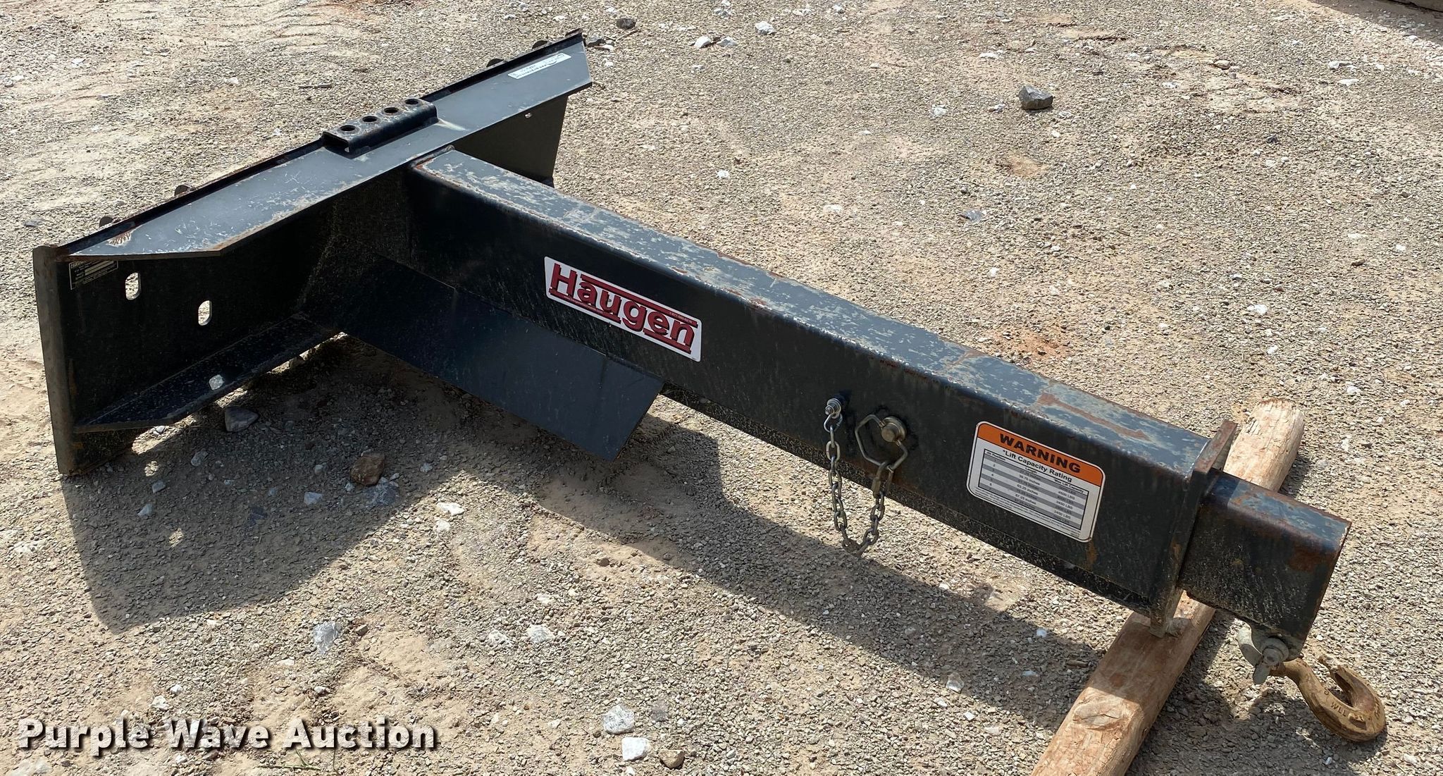 Purple Wave is selling a used Skid Steer Attach. in Oklahoma. This item is a Haugen MIJ SKD skid steer telescopic jib with the following: Seven positions, Telescopes from 5' to 7', Serial M0014638