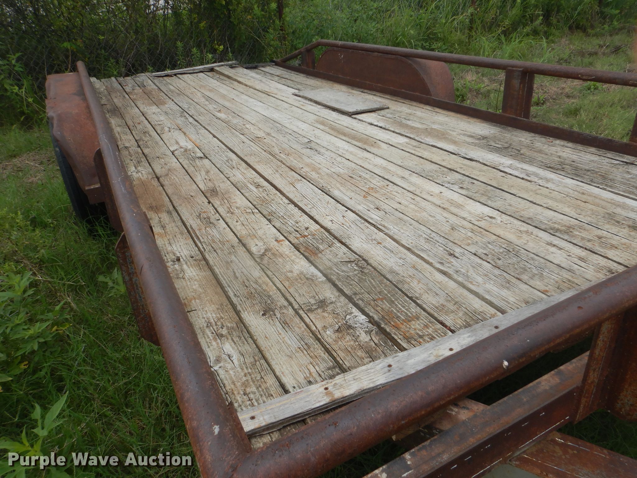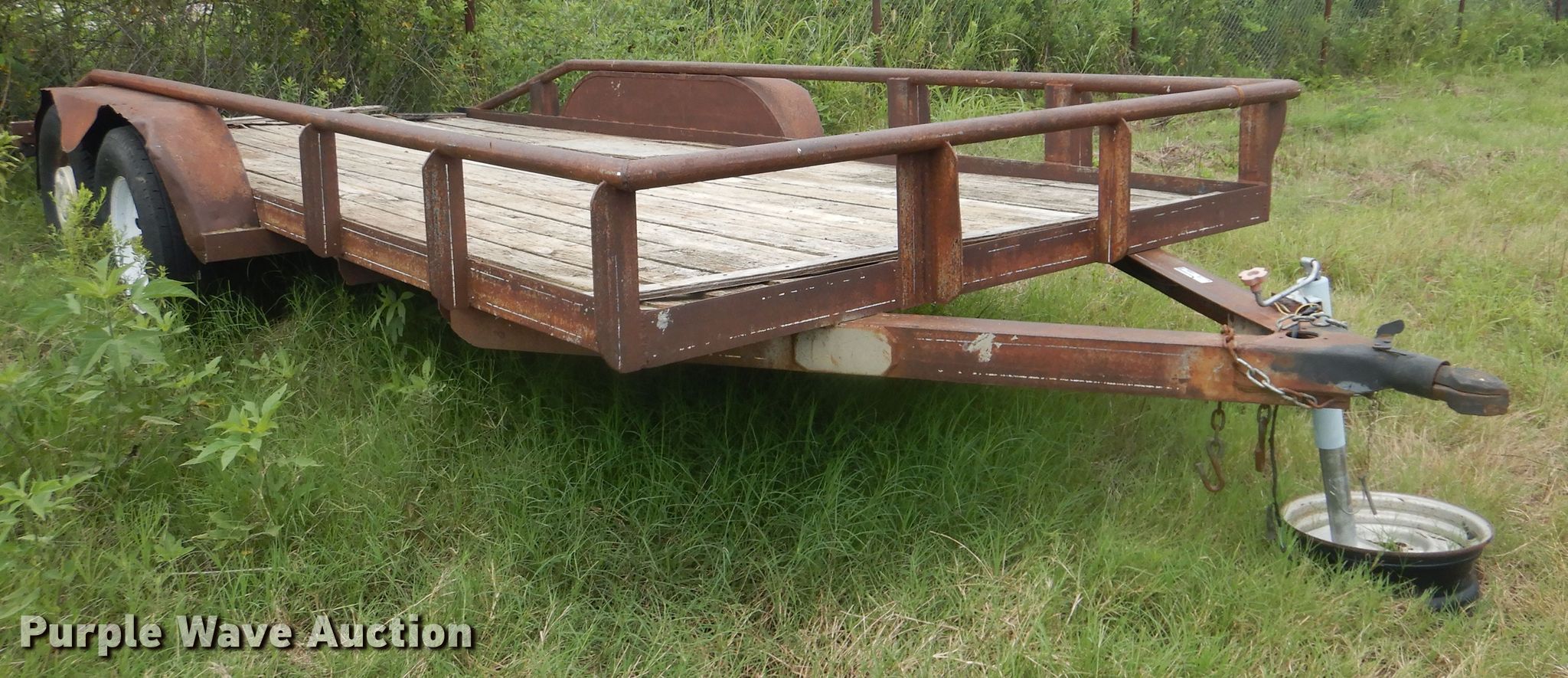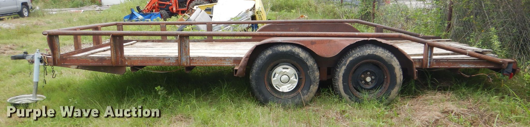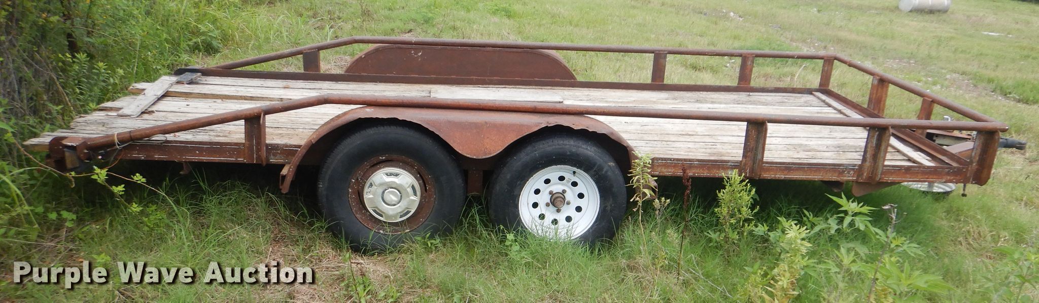 Purple Wave is selling a used Car or Utility Trailer in Oklahoma. This item is a Shop built utility trailer with the following: 19.5'L x 95"W overall, 16'L x 77"W deck, 2" ball hitch, Single leg landing gear, Spring suspension, Electric brakes, P215/75R15 tires