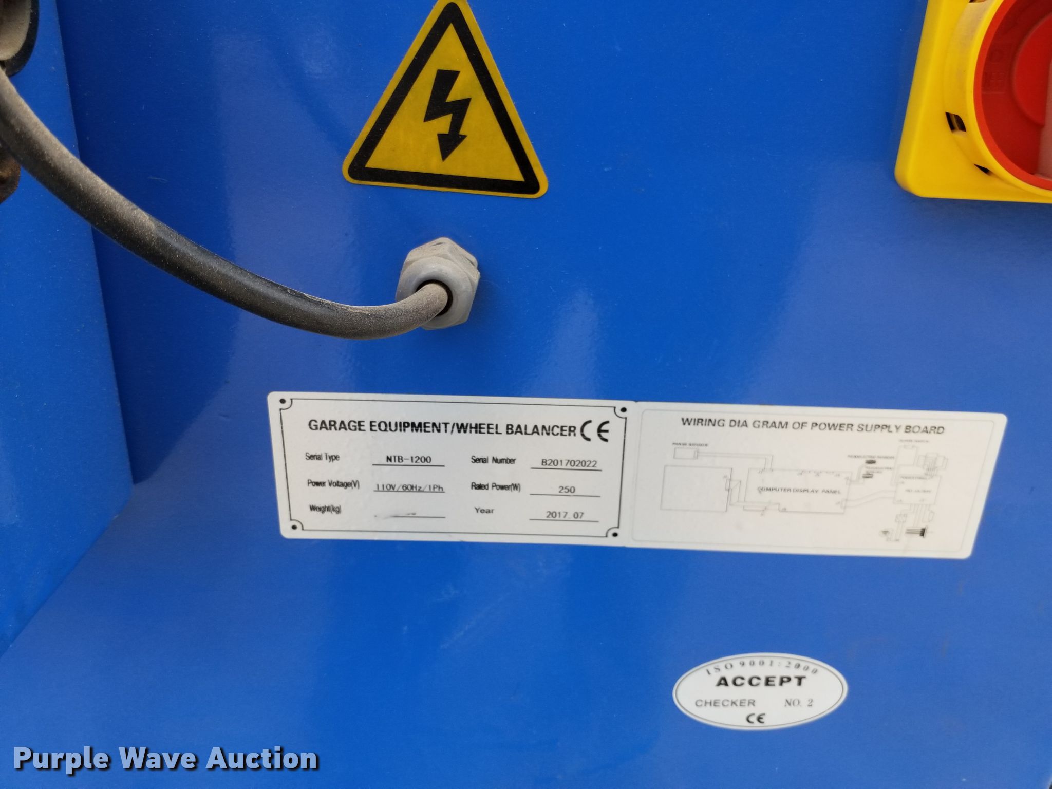 Purple Wave is selling a used Tools in Kansas. This item is a 2017 Triumph NTB-1200 tire balancer with the following: 110V, Unknown operating condition, Serial B201702022