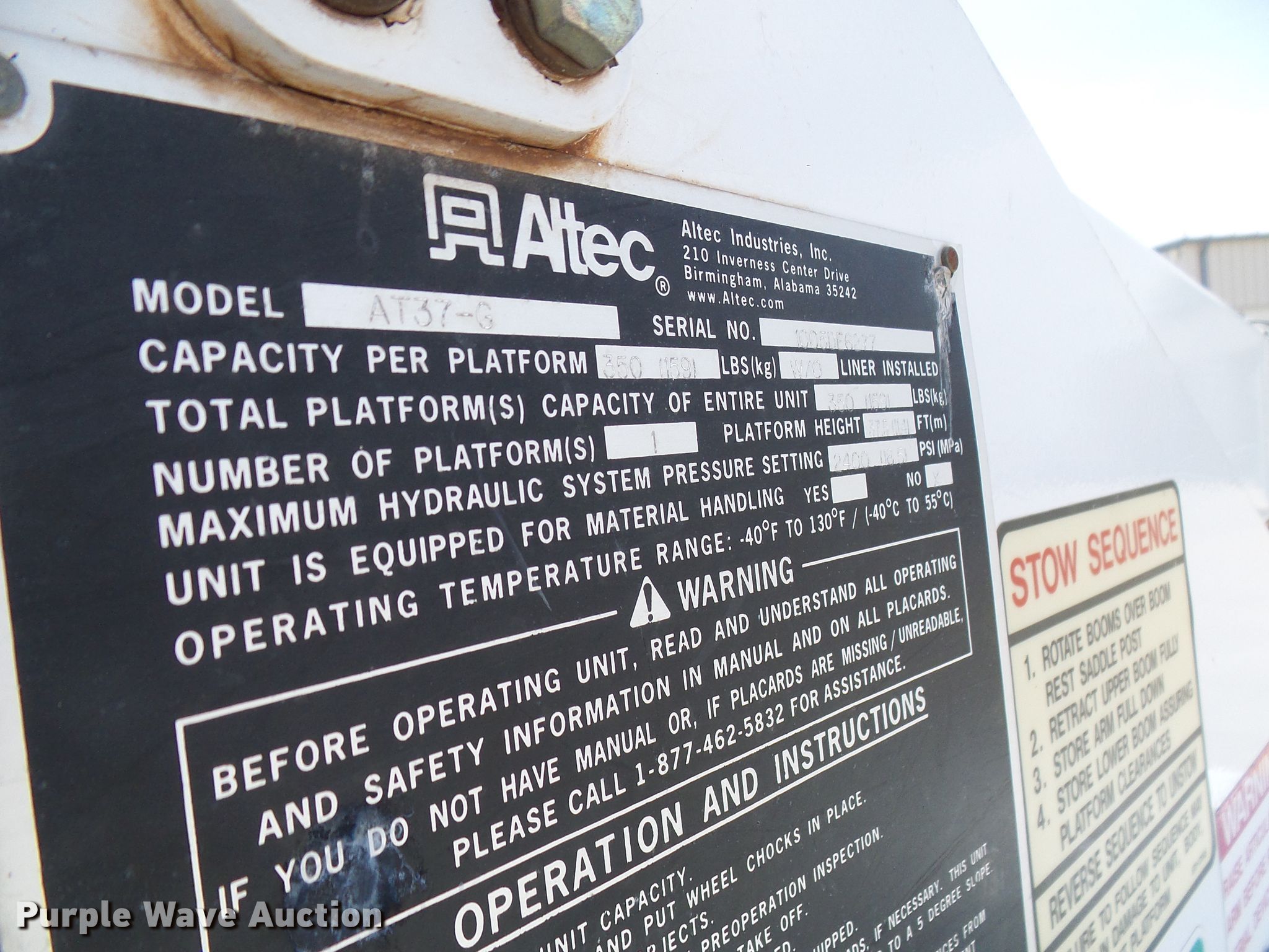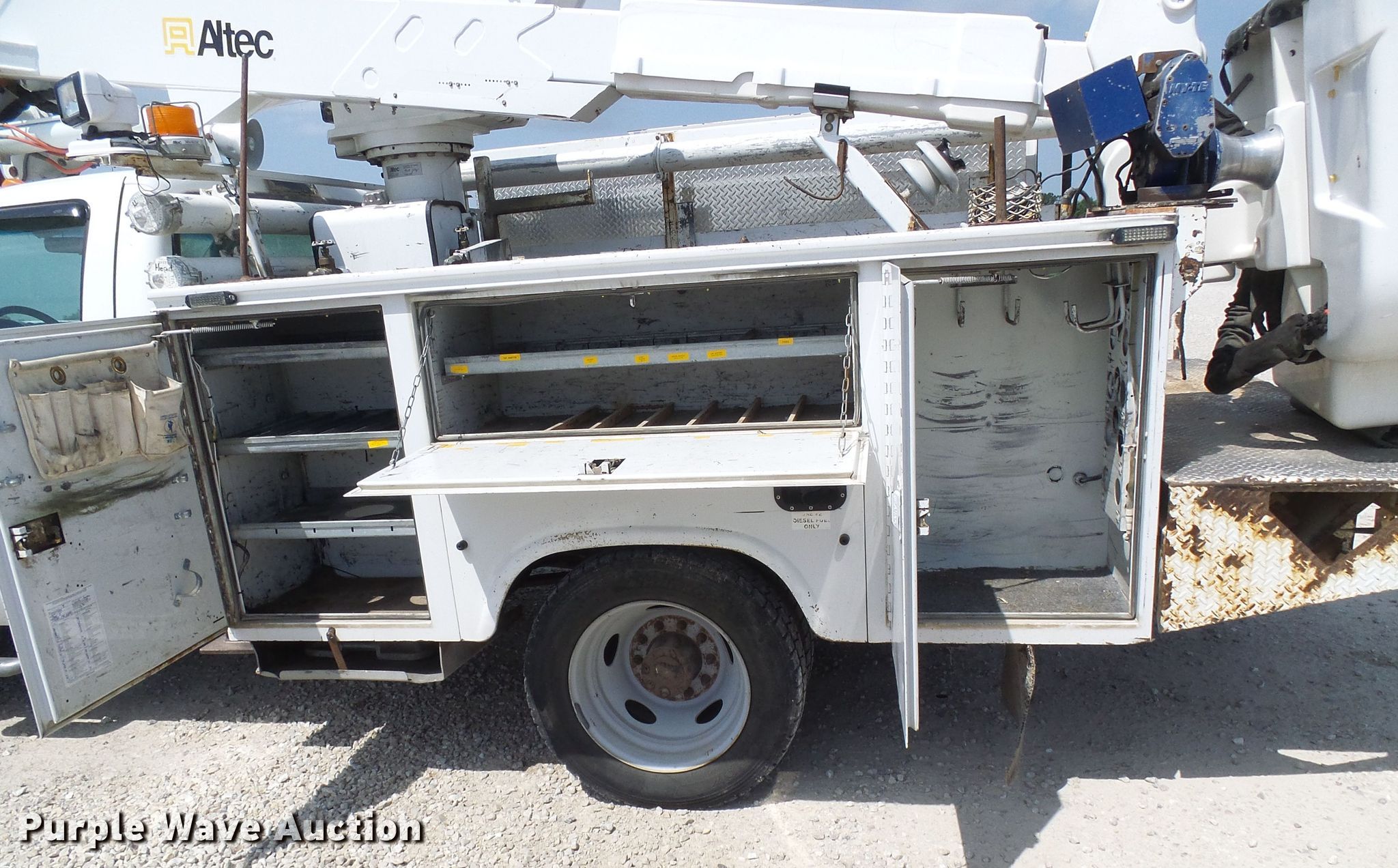 2006 Ford F550 Super Duty bucket truck. 288,000 miles on odometer, Unit #: 9. Engine Displacement: 6.0L OHV 32V, Cylinders: 8, Fuel type: Diesel. Transmission Manual, Speed: 5. Chassis Four wheel drive, Axles: Single, Suspension: Spring, Brakes: Hydraulic, PTO. Interior AC, Heat. Operational Utility bed Altec, Length: 8', Boom Altec AT37G, Serial: 1005DF6277, Maximum lift capacity: 350 lbs, Maximum lift height: 37.5', Boom type: Articulating, Insulated, Telescopic, Man basket, Boom controls Ground, Platform/ basket.. Tires Size: 225/70R19.5. Missouri title. Mileage has not been verified. Odometer discrepancy will be marked on the title. 1FDAF57P06EB20973. Co-Mo Electric Cooperative. 448 Richard Blvd. Tipton, MO 65081