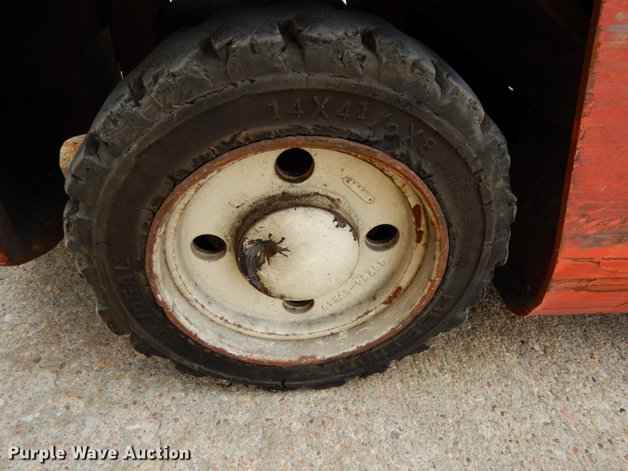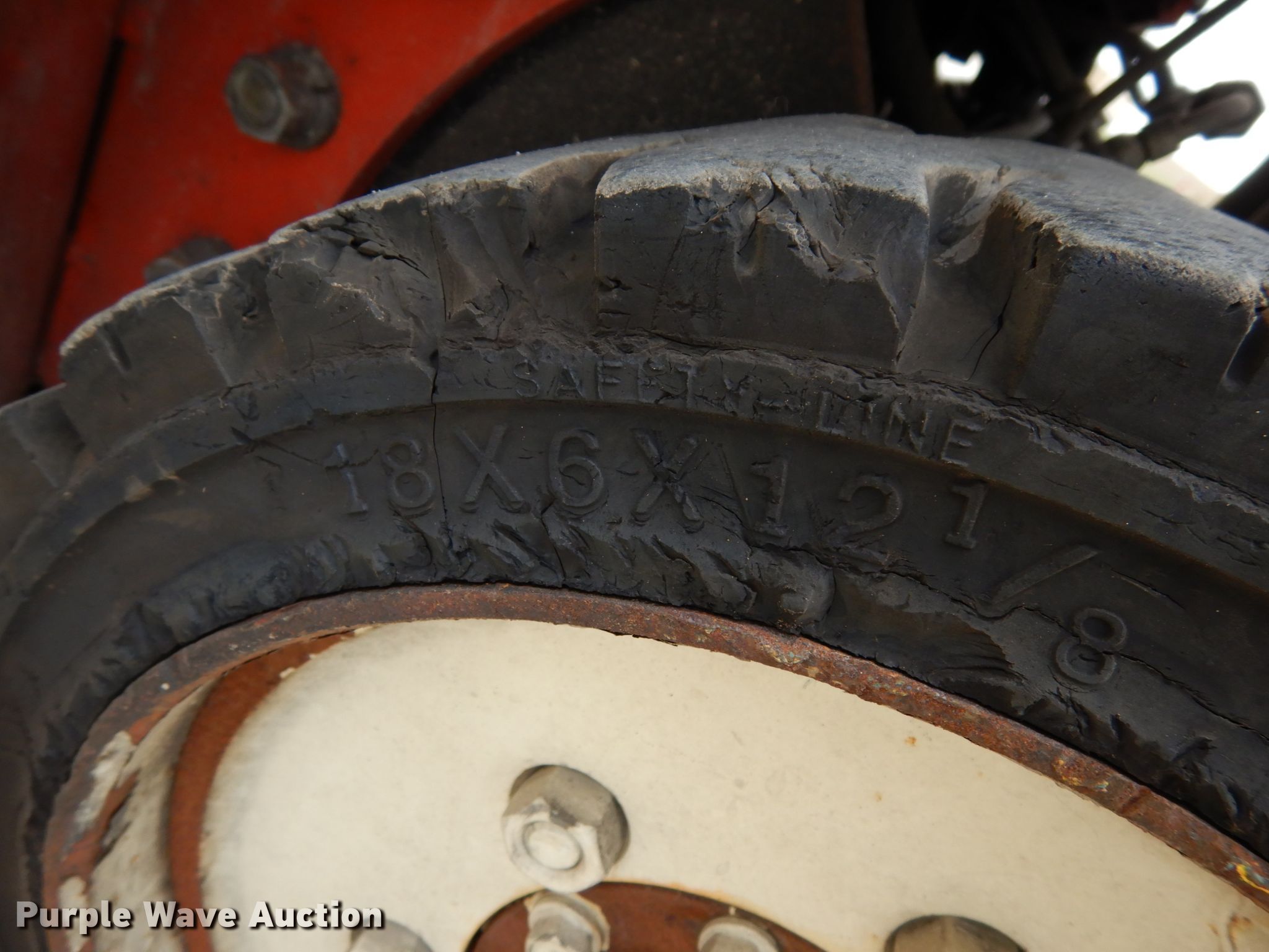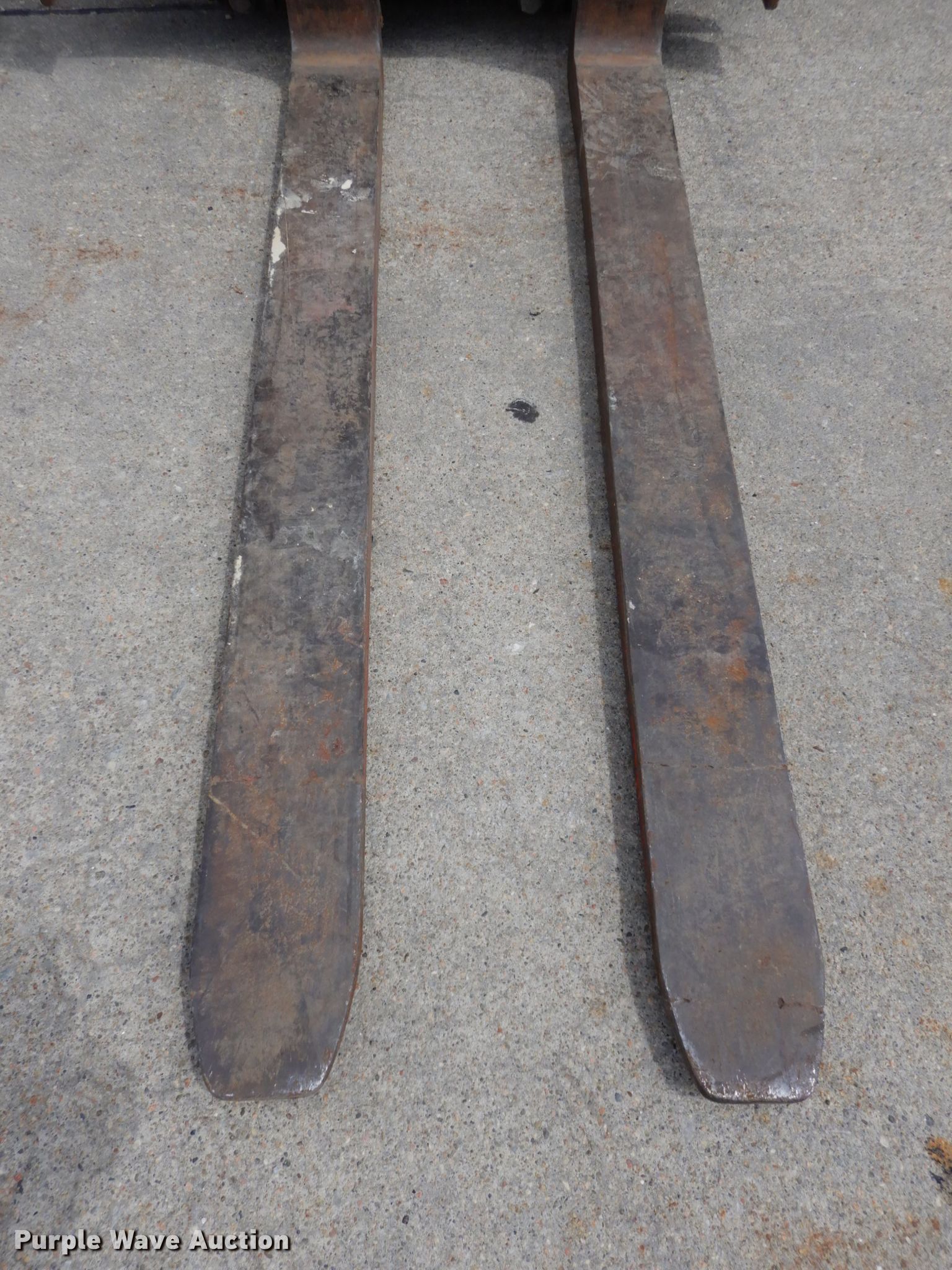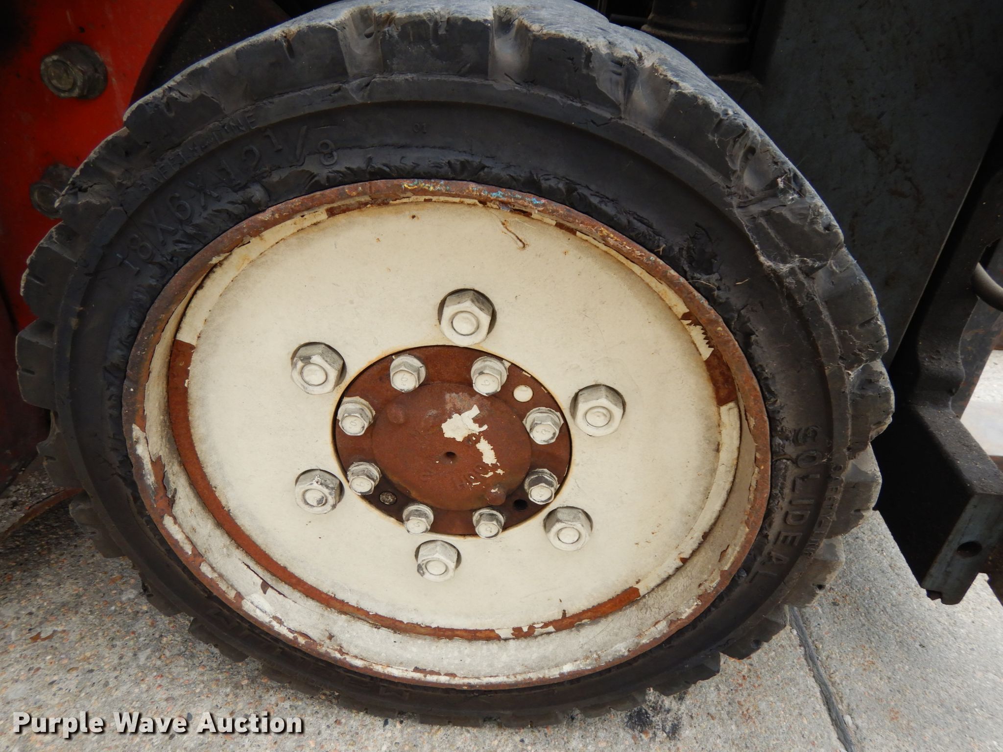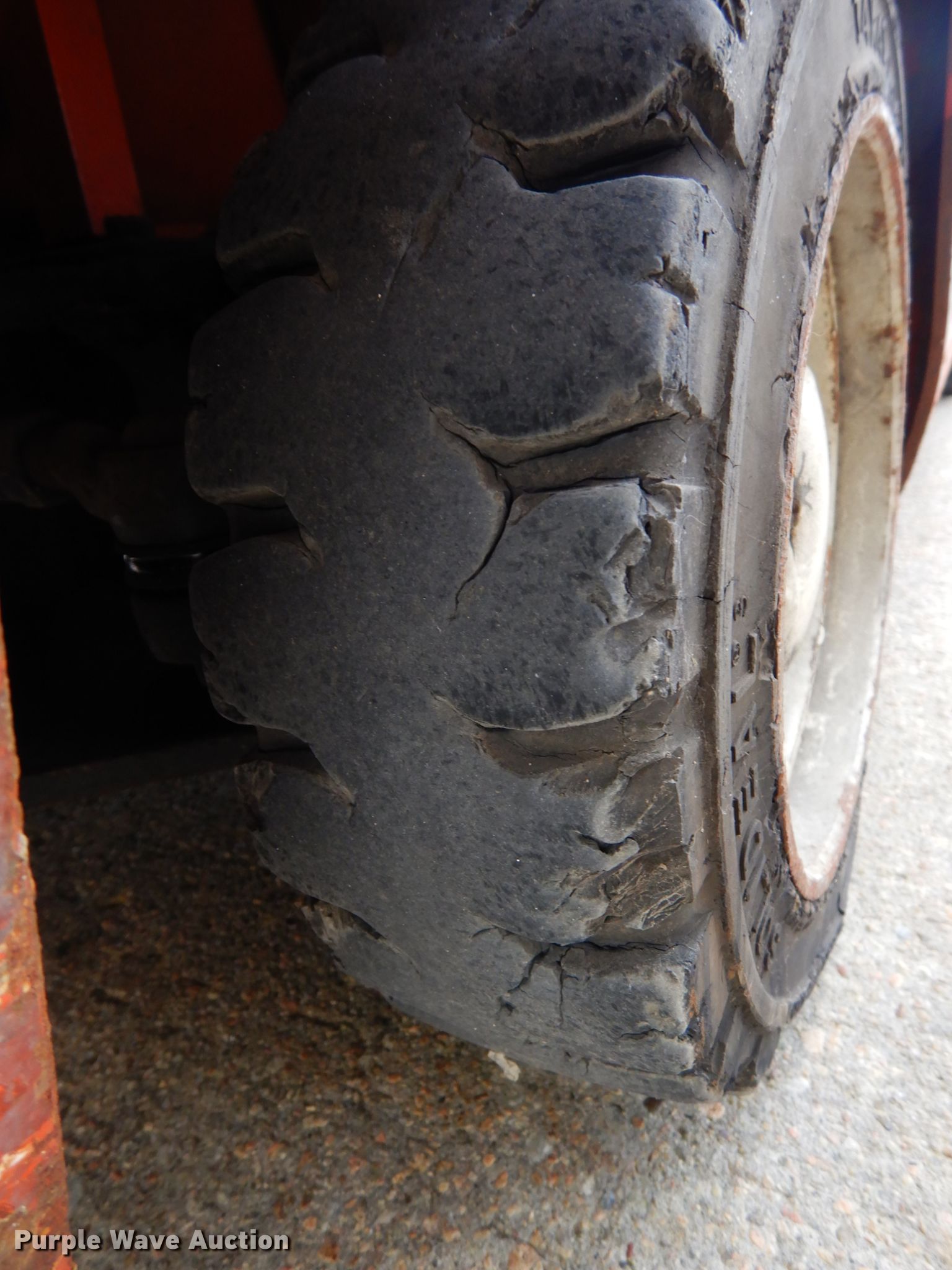 Nissan CSP01L15S forklift. 19,977 hours on meter, Serial: CSP01-9A1729. Electric motor. Transmission Hydrostatic. Operators station Canopy. Operational Maximum lift capacity: 2,600 lbs, Maximum lift height: 188", Mast stages: 3, Side shift, Mast tilt, Fork length: 42". Tires Front: 18x6x12-1/8, Rear: 14x4-1/4x8, Solid. RAKA. 10808 S 156th St. Omaha, NE 68138
