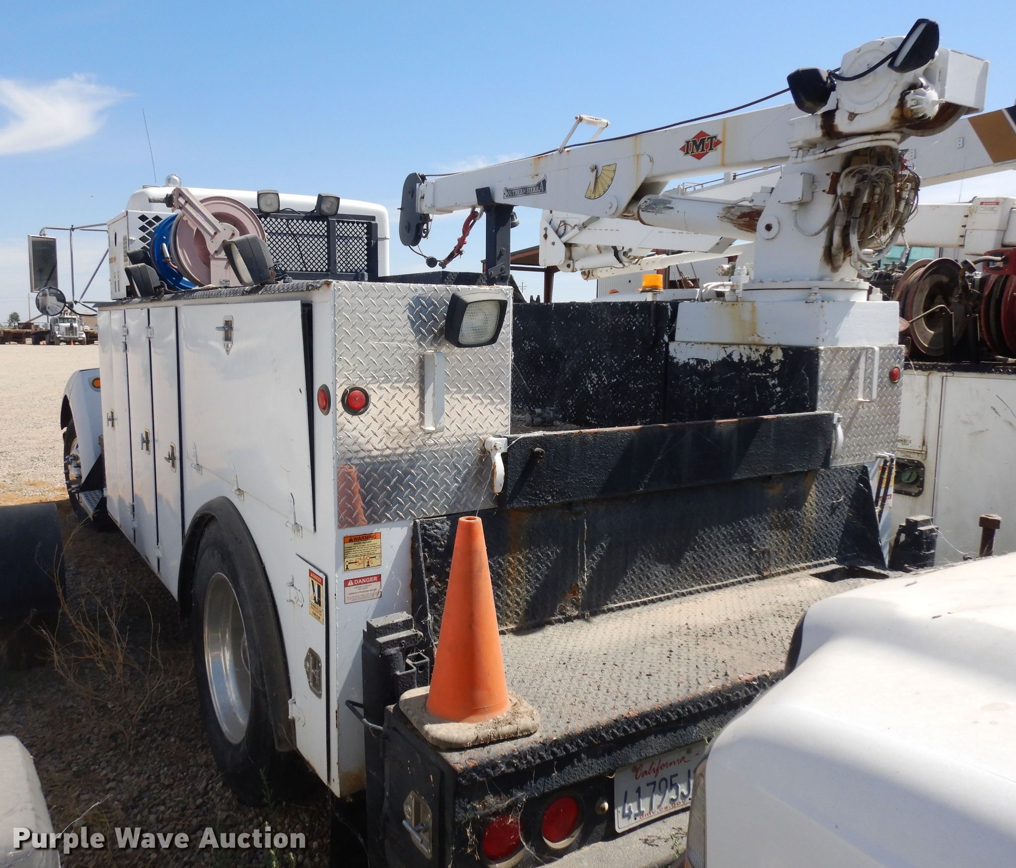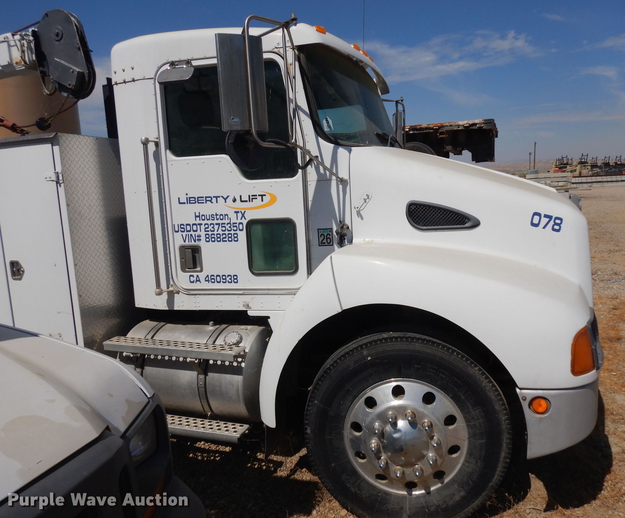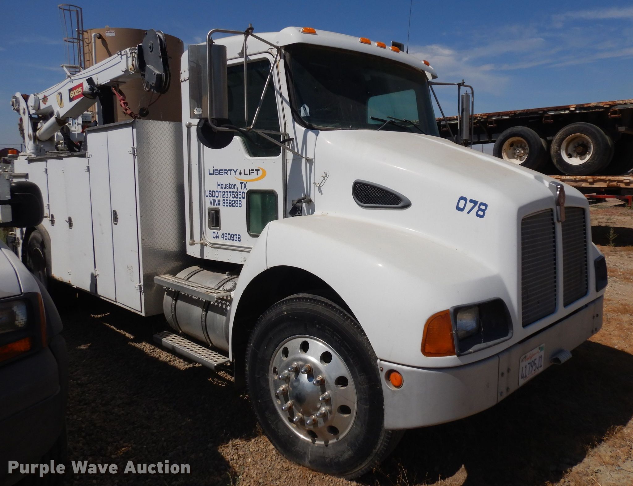 2001 Kenworth T300 utility bed truck with crane. 347,343 miles on odometer, Unit #: 078. Engine Caterpillar 3126, Displacement: 7.2L, Cylinders: 6, Fuel type: Diesel. Transmission Manual, Speed: 6. Chassis Axles: Single, Suspension: Spring, Brakes: Air, PTO, GVWR: 33,000 lbs. Interior AC, Heat, Heated mirrors. Operational Utility bed 12' 94", Crane IMT 6025, Boom length: 10'. Tires Size: 295/75R22.5. Notes Battery dead, Unknown operating condition. California title. 2NKMHD7X31M868288. Liberty Lift Solutions LLC. 10131 S Enos Ln. Bakersfield, CA 93311
