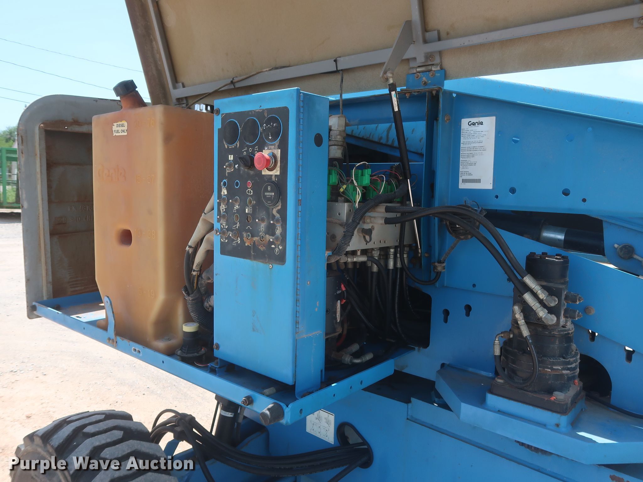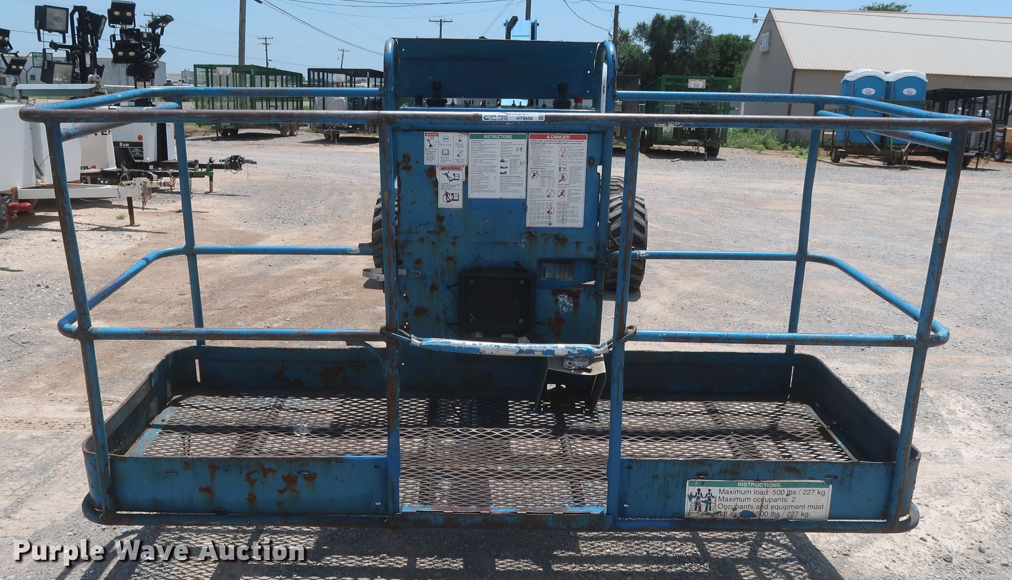 2008 Genie S-40 boom lift. 2,752 hours on meter, Serial: S4008-14147. Engine Deutz D2011L03I, Serial: 10445140, Displacement: 2.332L, Cylinders: 4, Fuel type: Diesel, HP: 49. Chassis Four wheel drive. Operational Rough terrain, Maximum lift capacity: 500 lbs, Maximum reach length: 31' 8", Maximum lift height: 40', Platform: 96" L x 36" W, AC power outlet, Controls: Platform, Ground, Platform rotation: Hydraulic, Safety alarm. Tires Tire size: 12-16.5NHS. C&C Portable Equipment Rentals. 706 SE 4th St. Lindsay, OK 73052