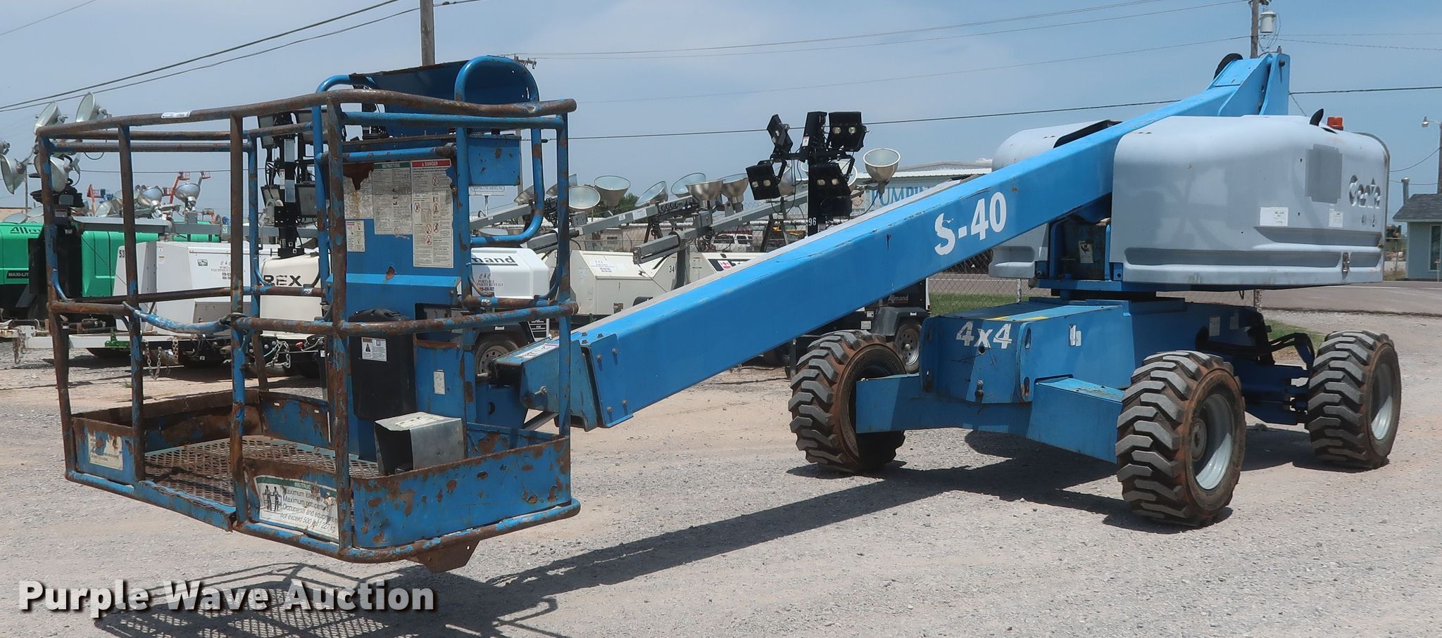 Purple Wave is selling a used Boom Lift in Oklahoma. This item is a 2006 Genie S40 boom lift with the following: 3,380 hours on meter, Serial: S4006-10896