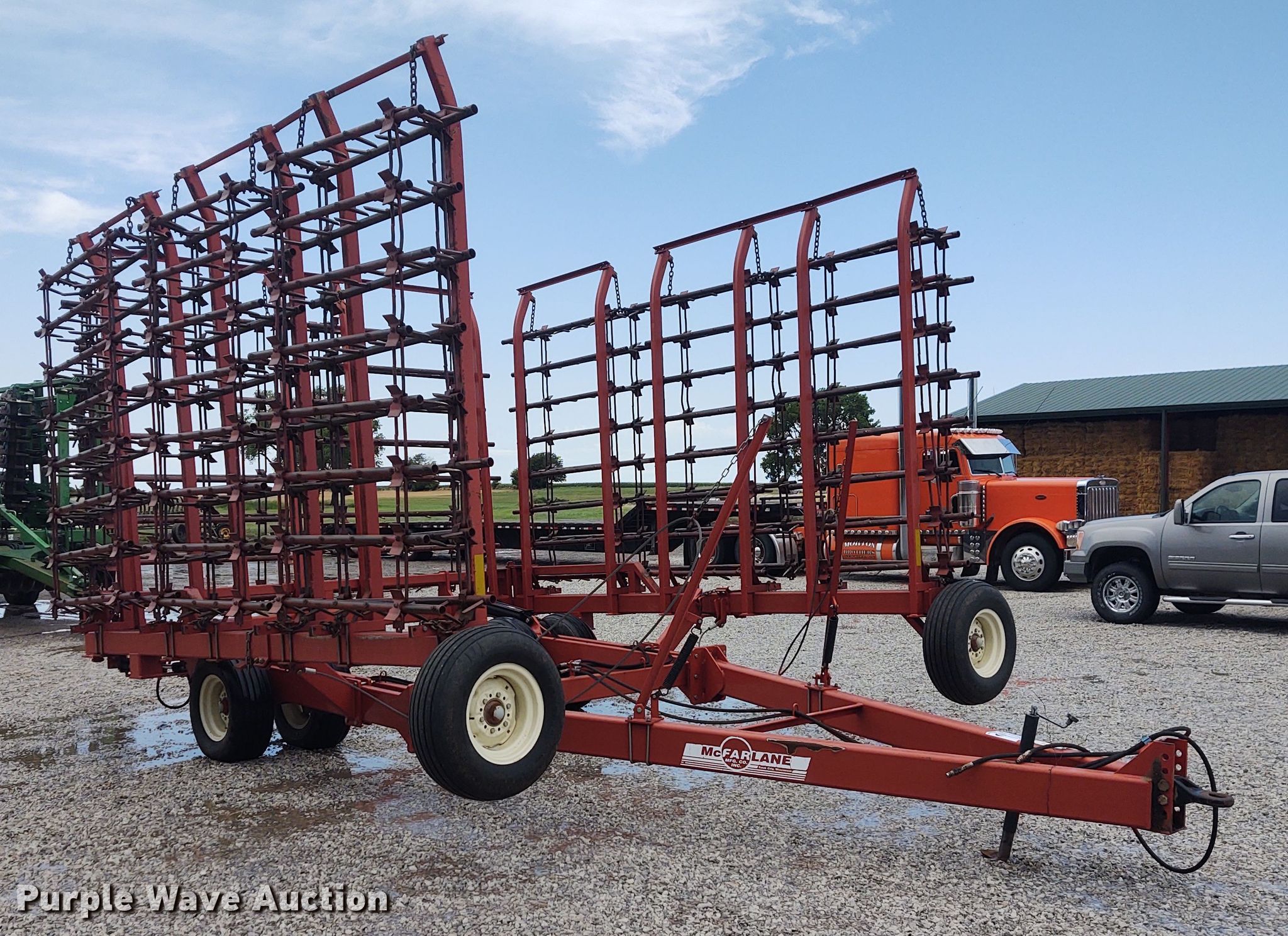 Purple Wave is selling a used Tillage Other in Oklahoma. This item is a McFarlane HDL-1040-16 spike tooth harrow with the following: 40'W, 11L-15SL tires, Serial 16623