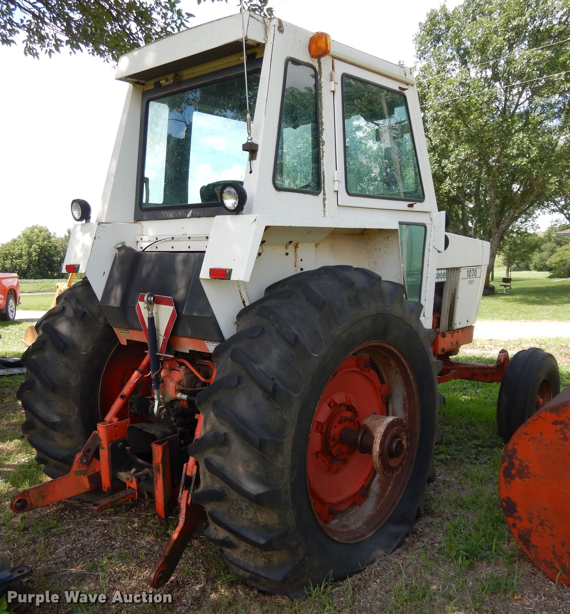 1976 Case 1070 tractor. 6,548 hours on meter, Serial: 8801949. Engine Cylinders: 6, Fuel type: Diesel. Transmission Powershift, 12F - 4R. Operators station Heat. Operational PTO: 540, Three point Top link, Hydraulic remote sets Rear: 2. Tires Front: 10.00-16, Rear: 18.4-38, Wheelbase: 106". Notes Unknown operating condition. Holton, KS 66436