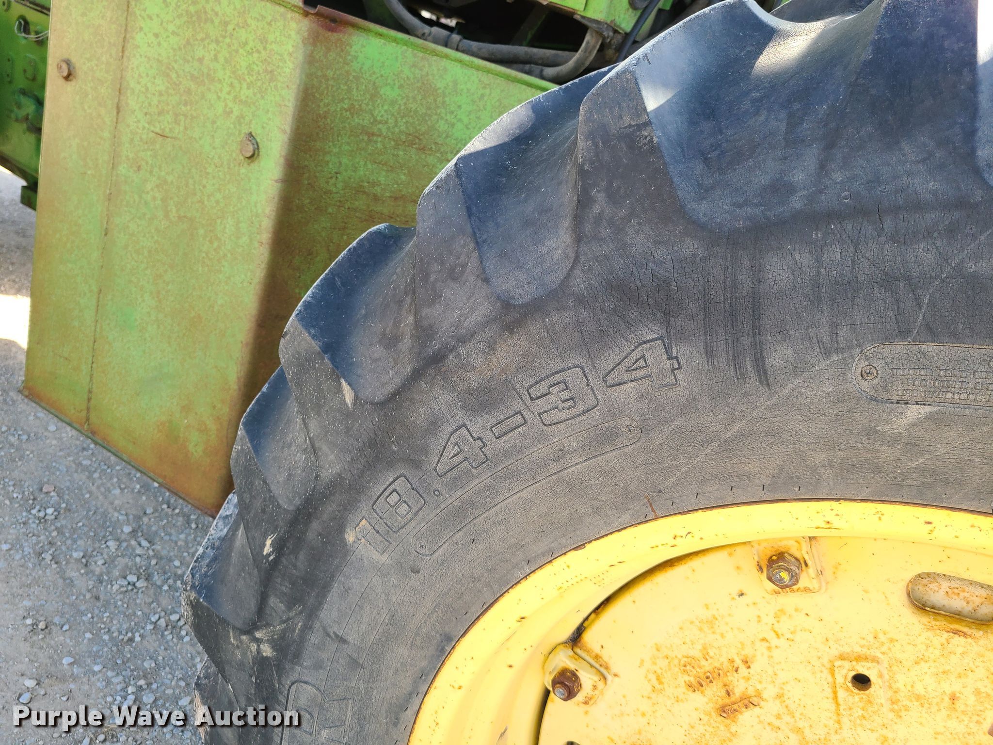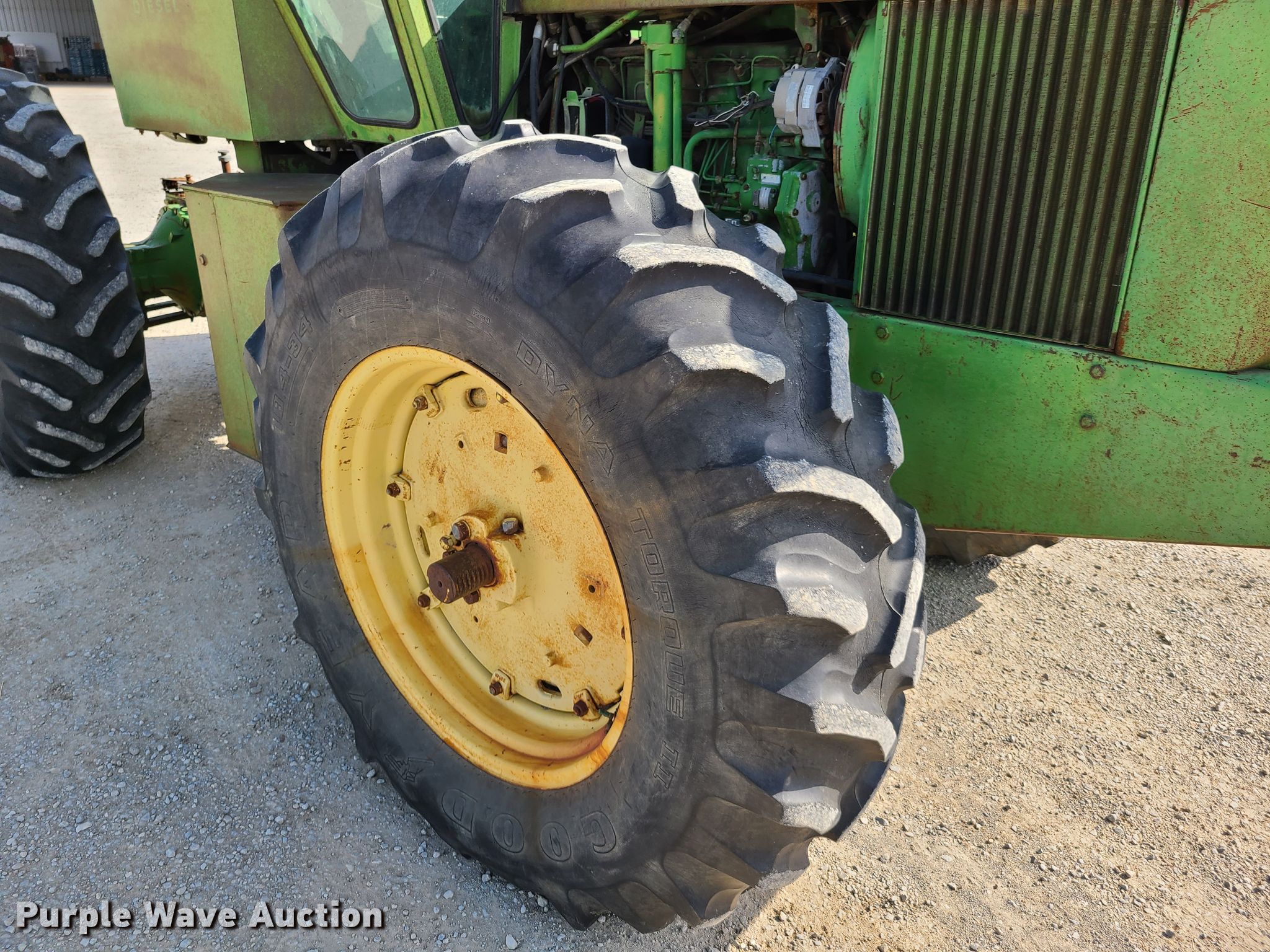 1971 John Deere 7020 4WD tractor. Serial: T773E001543R. Engine John Deere 6404AR-02 29994, Cylinders: 6, Fuel type: Diesel. Transmission Synchro, 8F - 2R. Operators station Heat. Operational PTO: 1000, Hydraulic remote sets Rear: 2. Tires Size: 18.4-34. Earthworks Excavation. 19495 Bell Rd. Higginsville, MO 64037