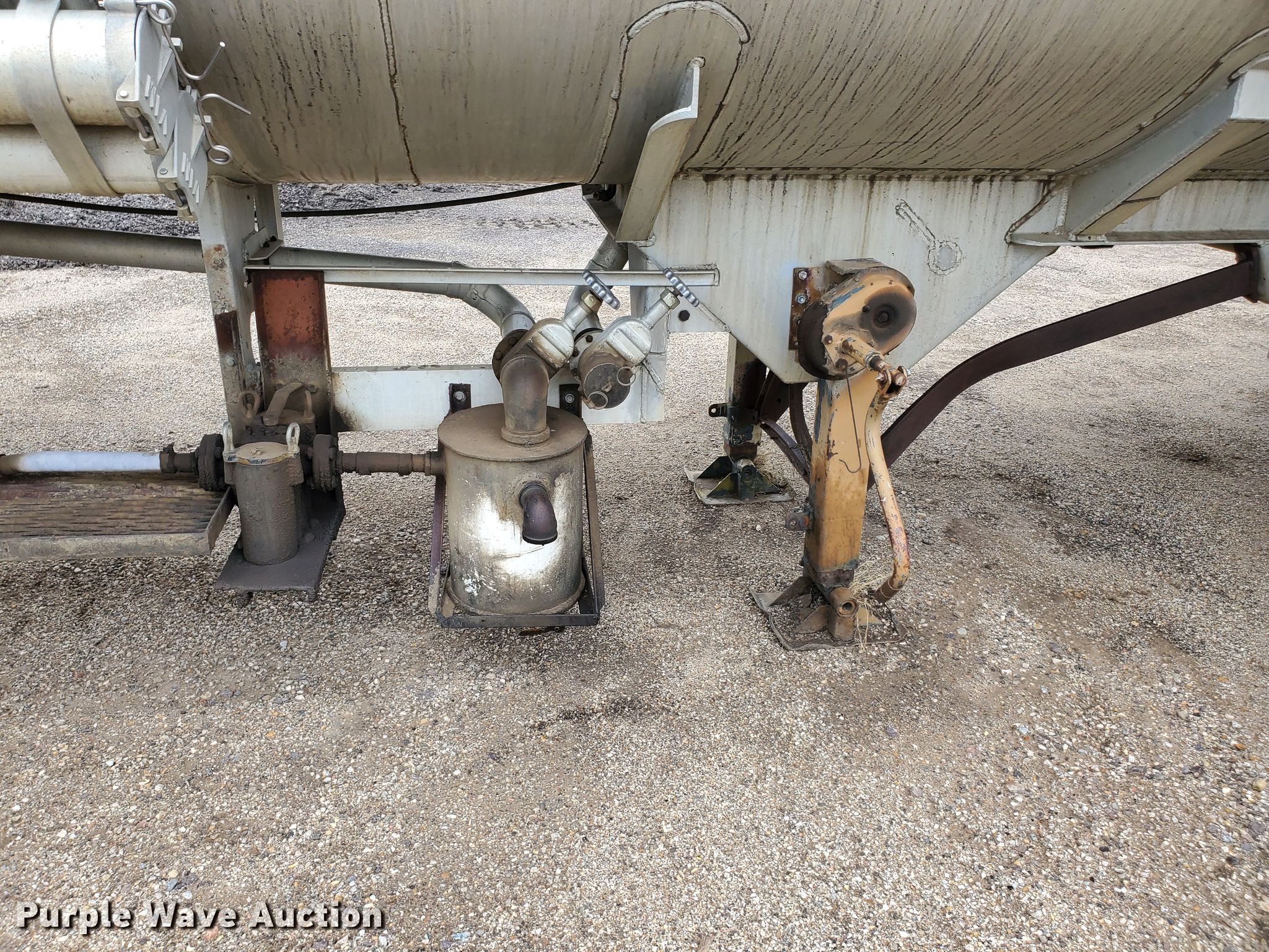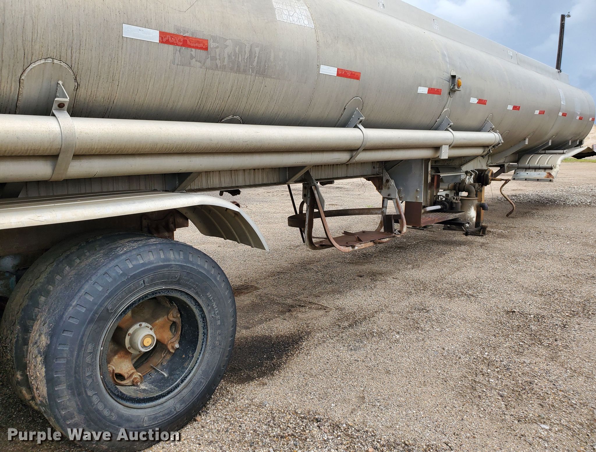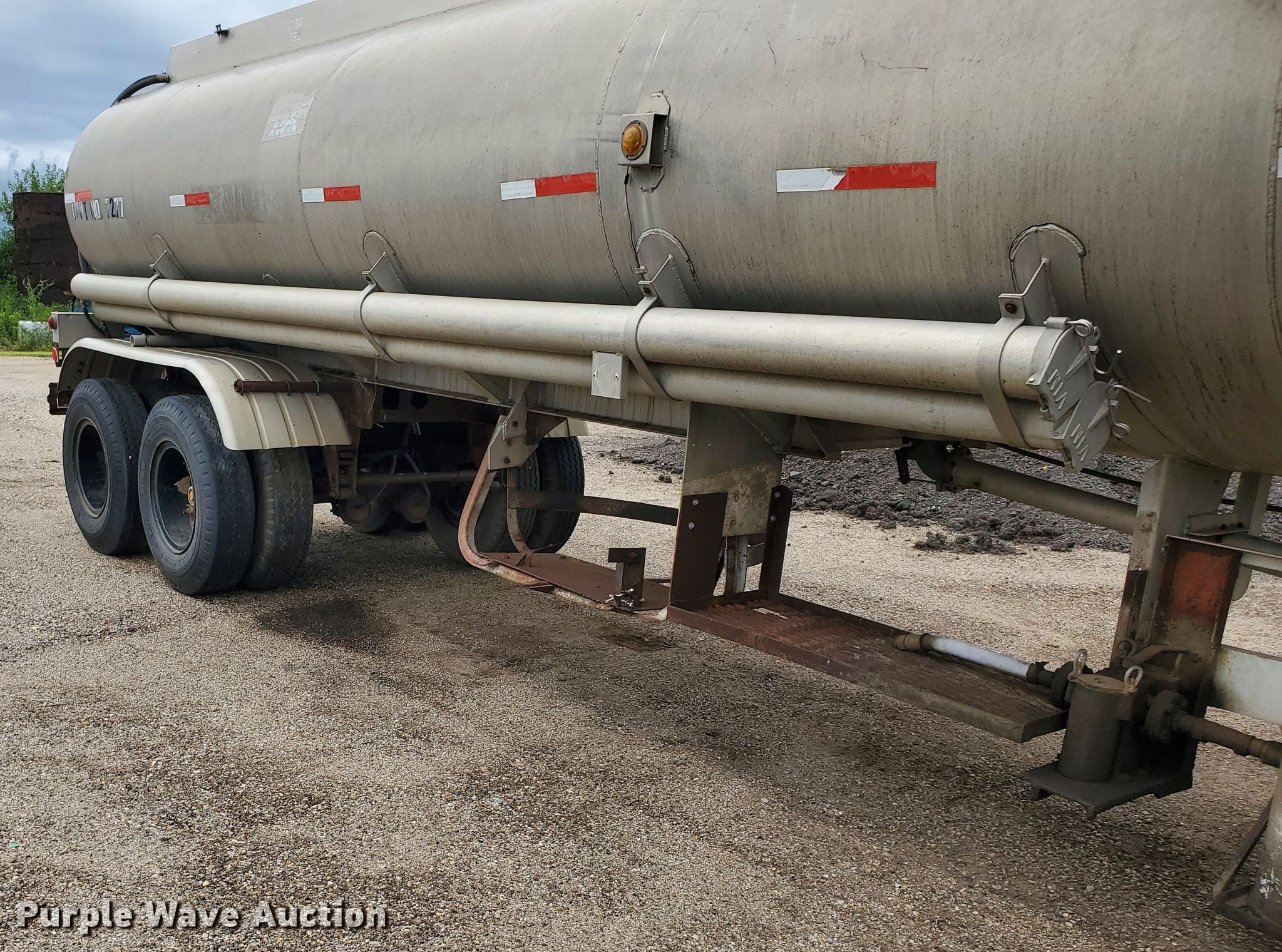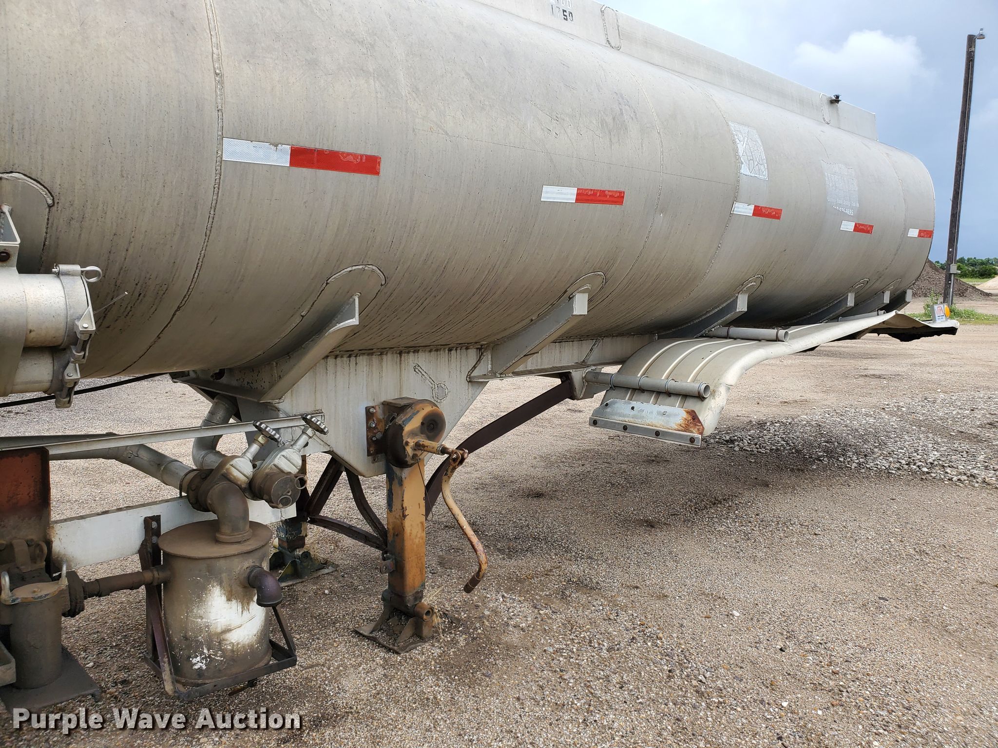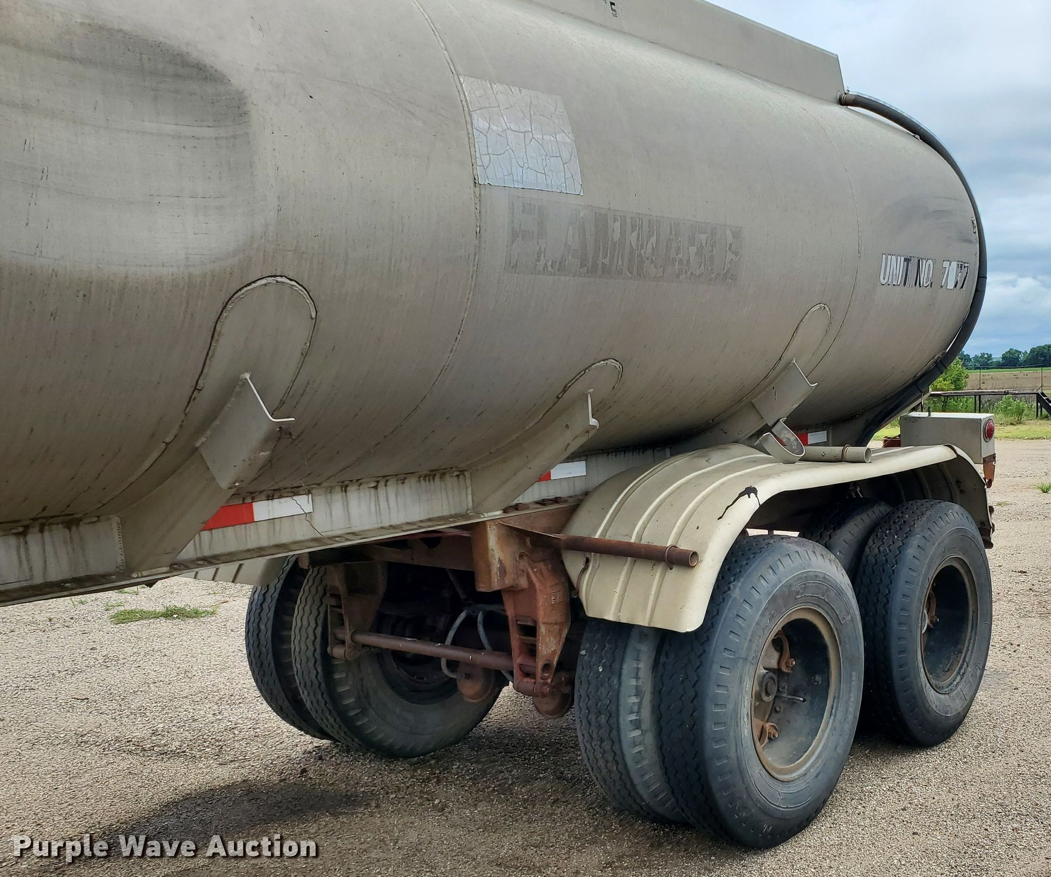 Purple Wave is selling a used Tank Trailer in Kansas. This item is a 1971 VIM tank trailer with the following: 40'L x 8'W overall, 8,750 gallon aluminum tank, (2) outlet valves, Dual leg landing gear, Spring suspension, Air brakes, Tandem axle, Steel wheels, 10.00-20 tires, GVWR 63,000 lbs, GAWR 18,000 lbs, Compartment walls have been cut-out to make single compartment, Previously used to haul used motor oil