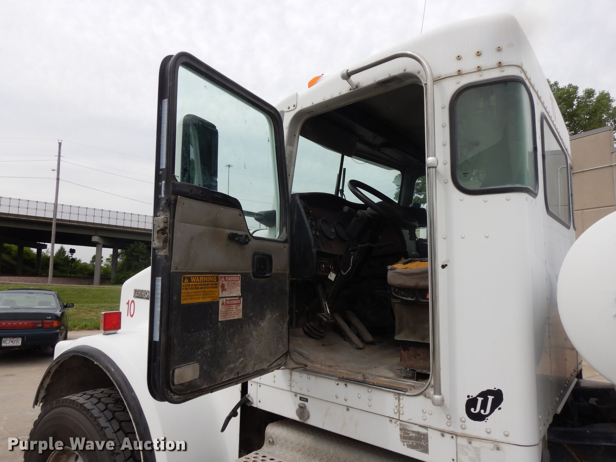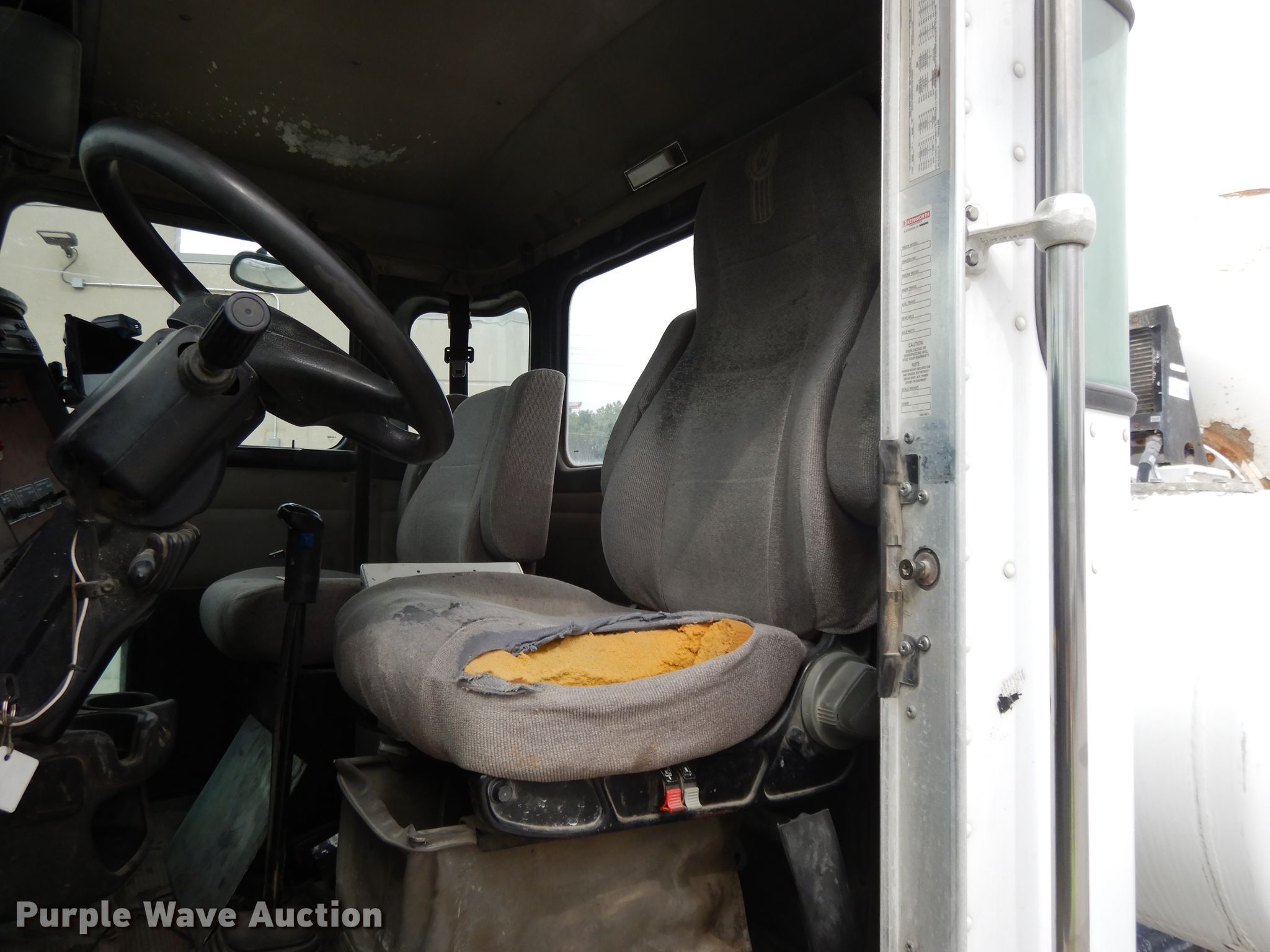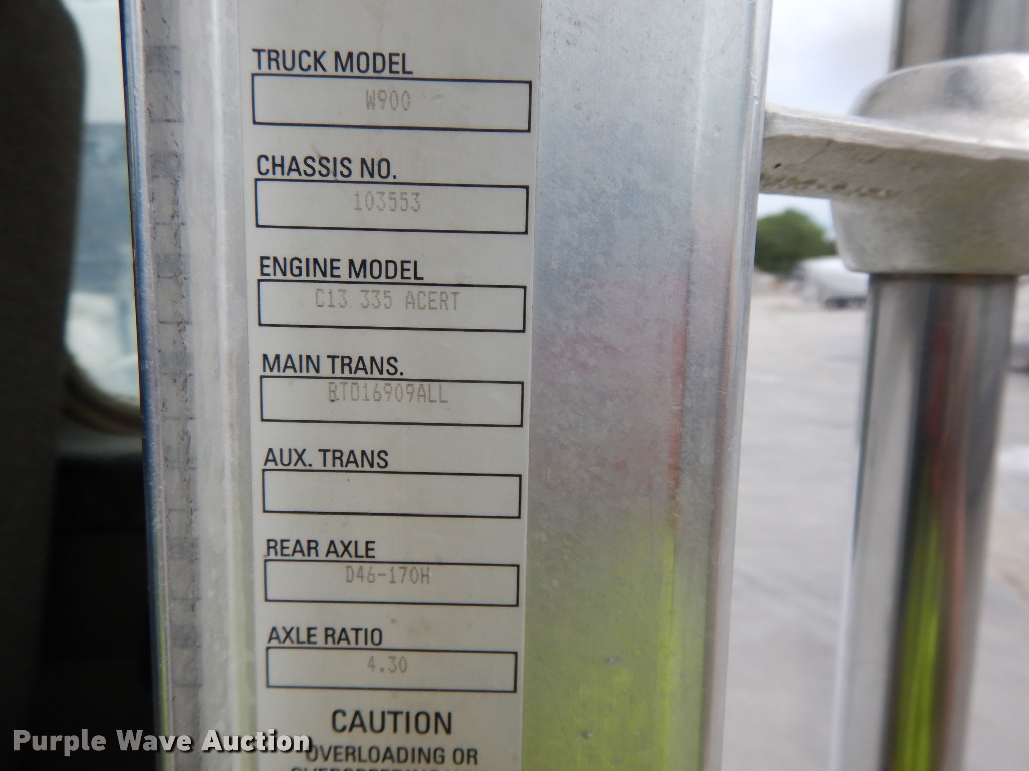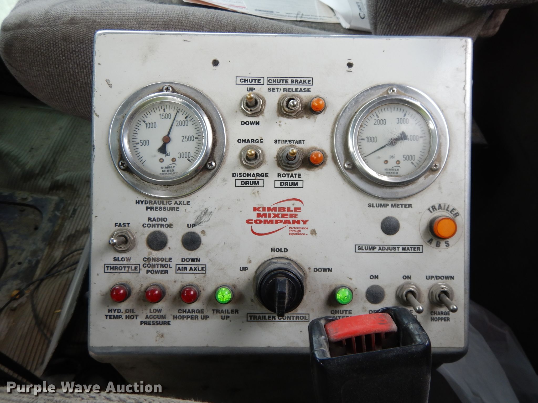 2005 Kenworth W900 ready mix truck. 35,561 miles on odometer, Engine hours: 16,995, Unit #: 10. Engine Caterpillar C13, Displacement: 12.0L, Cylinders: 6, Fuel type: Diesel. Transmission Manual, Speed: 9. Chassis Axles: Tandem, Pusher axle, Tag axle, Differential lock: Inter-axle, Suspension: Walking beam, Brakes: Air, PTO, GVWR: 90,040 lbs FAWR: 20,000 lbs, IAWR: 23,000 lbs, RAWR: 23,000 lbs, Lift axle GAWR: 11,020 lbs, Tag axle GAWR: 13,020 lbs, Wheelbase: 248". Interior AC, Heat, Heated mirrors. Operational Mixer Kimble K2000, Serial: K2105HD2745, Capacity: 10.5 cu.yd., Discharge: Rear, In-cab controls, Rear drum controls, Water tank: 150 gallon, Chute, Chute type: Steel. Tires Front: 425/65R22.5, Rear: 11R22.5. Notes Windshield cracked, Possible electrical issue, Possible hopper control issue, Possible chute lock issue, AC blows warm. Kansas title. 1NKWXUEX25J103553. Open inspection Aug. 26. 9900 W 75th St. Overland Park, KS 66204