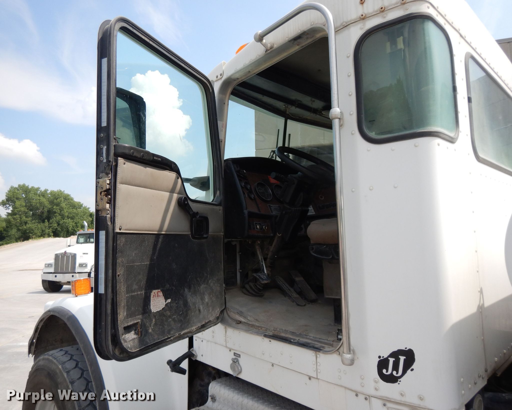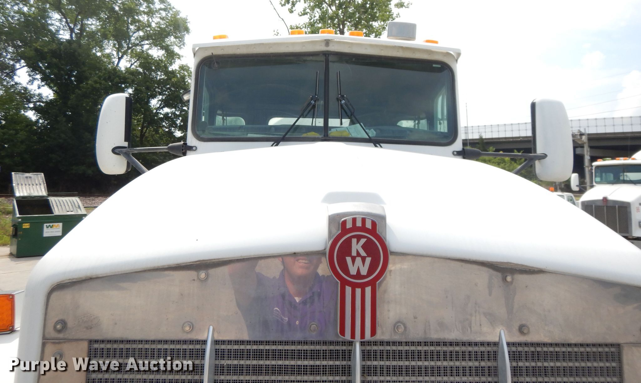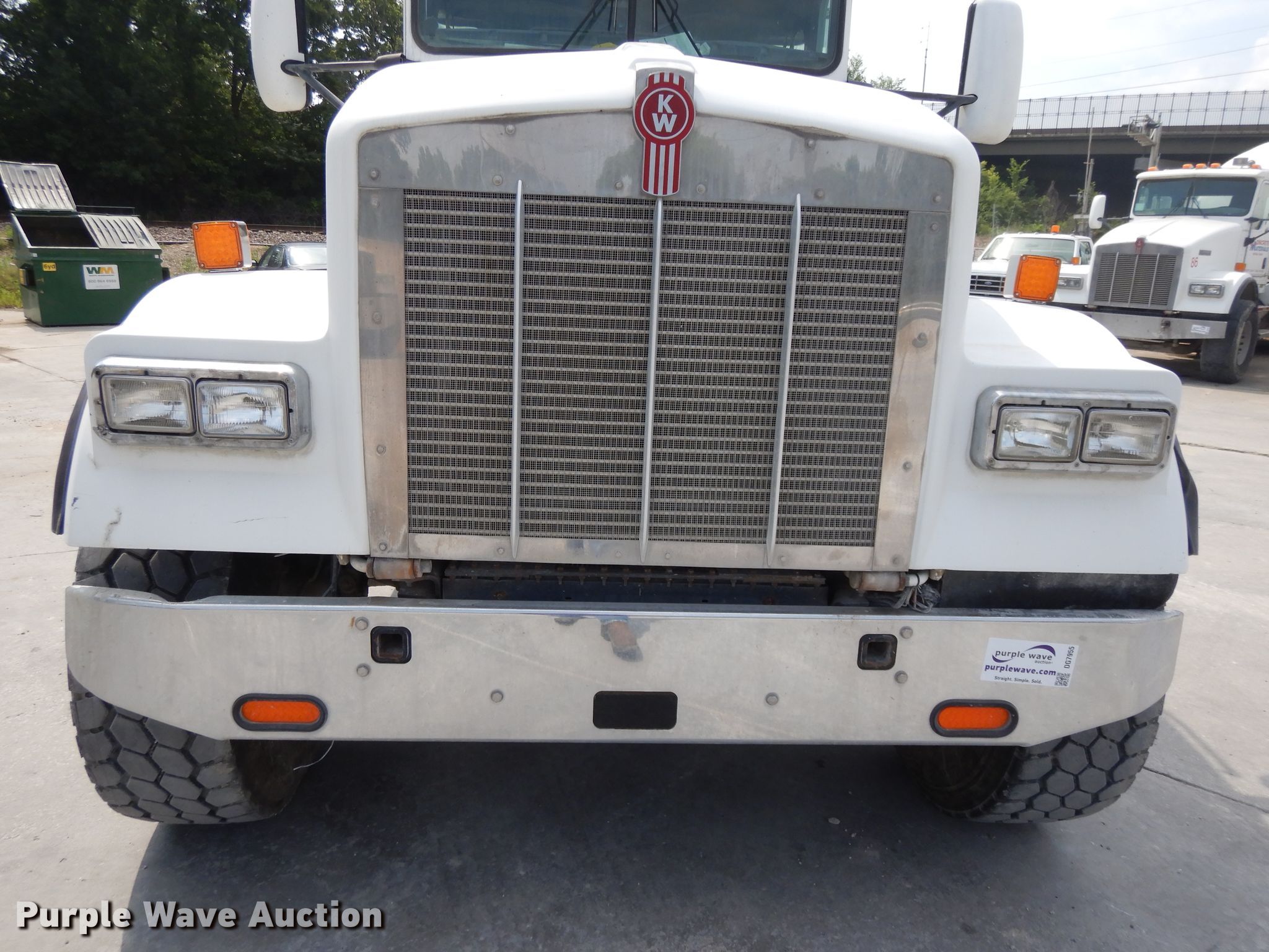 2006 Kenworth W900 ready mix truck. 155,839 miles on odometer, Engine hours: 16,215, Unit #: 15. Engine Caterpillar C13, Displacement: 12.0L, Cylinders: 6, Fuel type: Diesel. Transmission Manual, Speed: 9. Chassis Axles: Tandem, Pusher axle, Tag axle, Differential lock: Inter-axle, Suspension: Walking beam, Brakes: Air, PTO, GVWR: 88,040 lbs FAWR: 20,000 lbs, IAWR: 23,000 lbs, RAWR: 23,000 lbs, Lift axle GAWR: 11,020 lbs, Wheelbase: 248". Interior AC, Heat, Heated mirrors. Operational Mixer Kimble K2000, Serial: K210.5HD2751, Capacity: 10.5 cu.yd., Discharge: Rear, In-cab controls, Rear drum controls, Water tank: 150 gallon, Chute Extensions: 3, Chute type: Steel. Tires Front: 11R22.5, Rear: 425/65R22.5. Notes ABS light on, AC blows warm. Kansas title. 1NKWXUEX66J103556. Open inspection Aug. 26. 9900 W 75th St. Overland Park, KS 66204