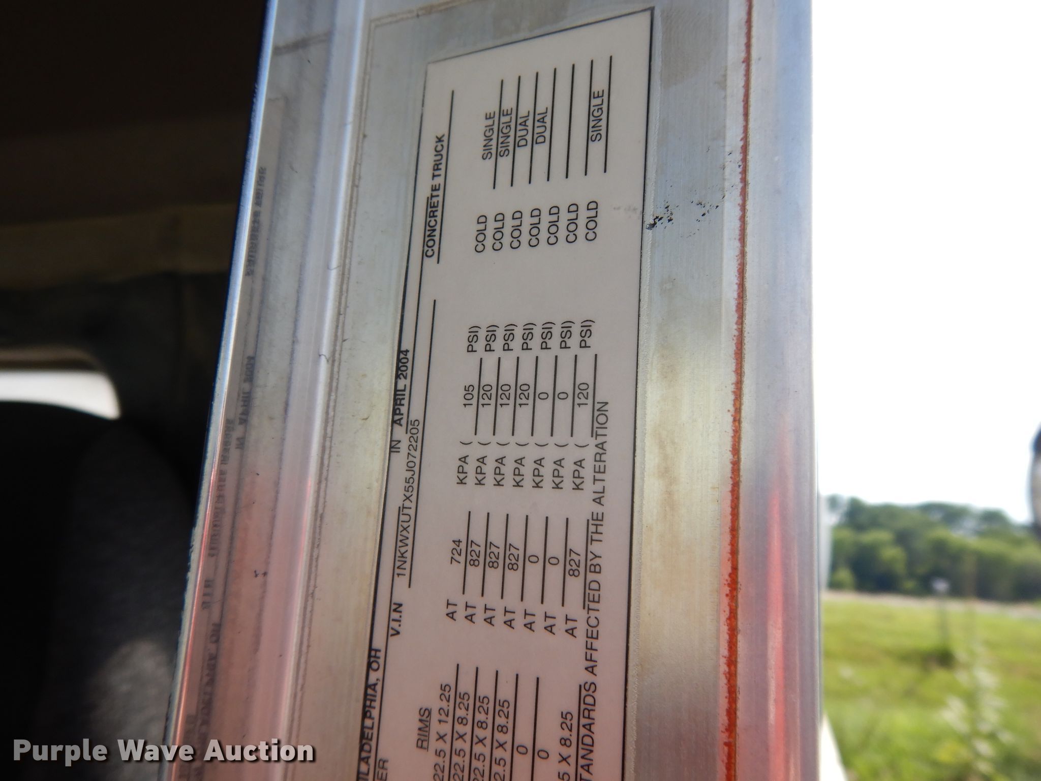 2005 Kenworth W900 ready mix truck. 211,436 miles on odometer, Engine hours: 23,450, Unit #: 64. Engine Caterpillar C13, Displacement: 12.0L, Cylinders: 6, Fuel type: Diesel. Transmission Manual, Speed: 8, Lo-Lo. Chassis Axles: Quad, Pusher axle, Tag axle, Differential lock: Inter-axle, Suspension: Walking beam, Brakes: Air, PTO, GVWR: 90,040 lbs FAWR: 20,000 lbs, IAWR: 23,000 lbs, RAWR: 23,000 lbs, Lift axle GAWR: 13,020 lbs, Wheelbase: 248". Interior AC, Heat, Heated mirrors. Operational Mixer Kimble K2000, Serial: K210.5HD2427, Capacity: 10.5 cu.yd., Discharge: Rear, In-cab controls, Rear drum controls, Water tank: 150 gallon, Chute Extensions: 3, Chute type: Steel. Tires Front: 425/65R22.5, Rear: 11R22.5. Notes Brake valve issue. Kansas title. Title distribution may be delayed up to 14 days from verification of funds. 1NKWXUTX55J072205. Open inspection Aug. 26. 531 NW Tyler St. Topeka, KS 66608