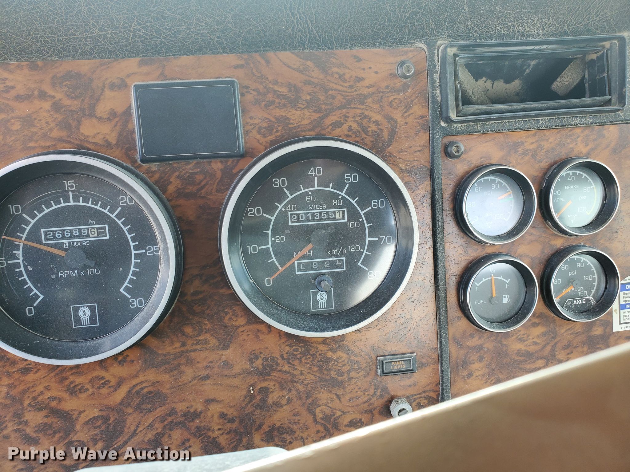 2000 Kenworth T800B ready mix truck. 26,689 miles on odometer, Engine hours: 201,355. Engine Cummins ISM 335, Displacement: 10.8L, Cylinders: 6, Fuel type: Diesel. Transmission Eaton Fuller Road Ranger 9LL, Manual, Speed: 9. Chassis Axles: Triple, Tag axle, Differential lock: Full, Suspension: Walking beam, Brakes: Air, PTO, GVWR: 77,020 lbs. Interior AC, Heat, Auxiliary controls. Operational Mixer McNeilus, Capacity: 10.5 cu.yd., Discharge: Rear, In-cab controls, Rear drum controls, Water tank: 150 gallon, Chute Extensions: 2, Chute type: Steel. Tires Front: 425/65R22.5, Rear: 11R22.5. Notes Frame cracked. Kansas title. 1NKDX0EX6YR867069. Open inspection Aug. 26. 111 J C St. Garden City, KS 67846