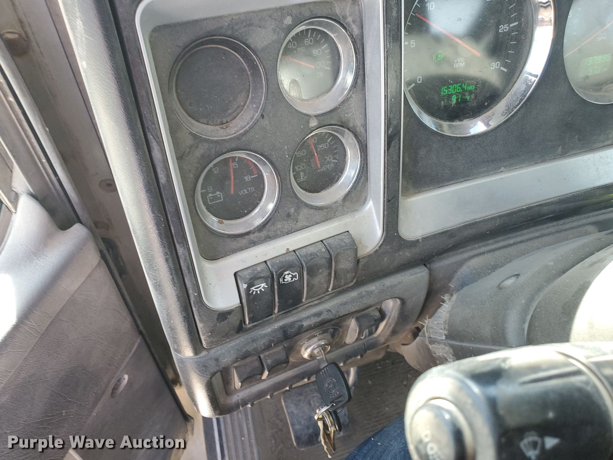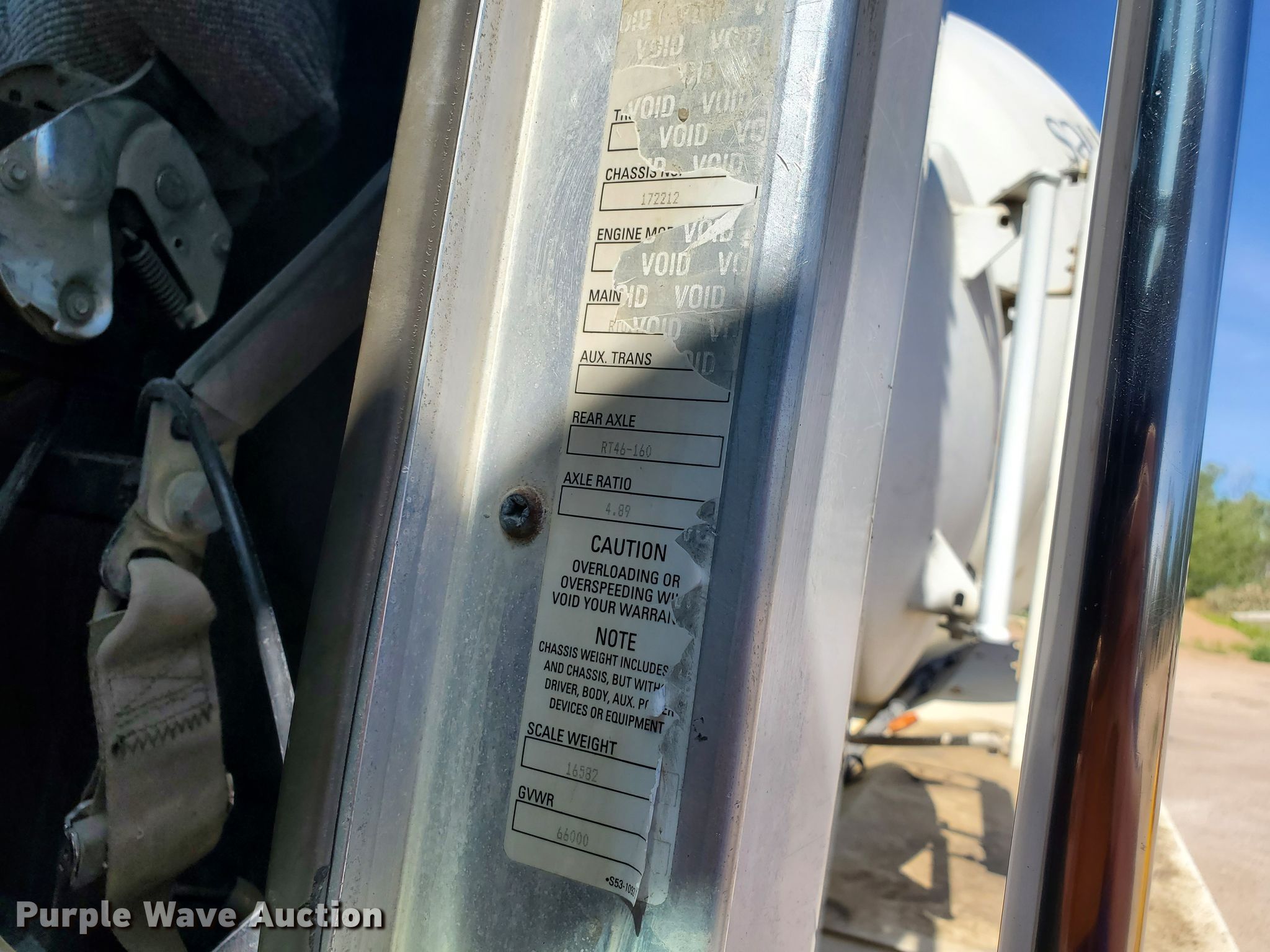 2007 Kenworth W900B ready mix truck. 137,995 miles on odometer, Engine hours: 15,306, Unit #: 104. Engine Cummins ISM 350, Displacement: 10.8L, Cylinders: 6, Fuel type: Diesel, HP: 335. Transmission Eaton Fuller Road Ranger 9LL, Manual, Speed: 9. Chassis Axles: 5, Pusher axle, Tag axle, Differential lock: Full, Suspension: Walking beam, Brakes: Air, PTO, GVWR: 80,000 lbs. Interior AC, Heat, Power windows, Power locks. Operational Mixer McNeilus, Capacity: 11 cu.yd., Discharge: Rear, In-cab controls, Rear drum controls, Water tank: 150 gallon, Chute Extensions: 3, Chute type: Steel. Tires Front: 425/65R22.5, Rear: 11R22.5, Pusher axle: 215/75R17.5. Kansas title. Title distribution may be delayed up to 14 days from verification of funds. 1NKWL00X27R172212. Open inspection Aug. 26. 107 E Glenn Ave. Scott City, KS 67871