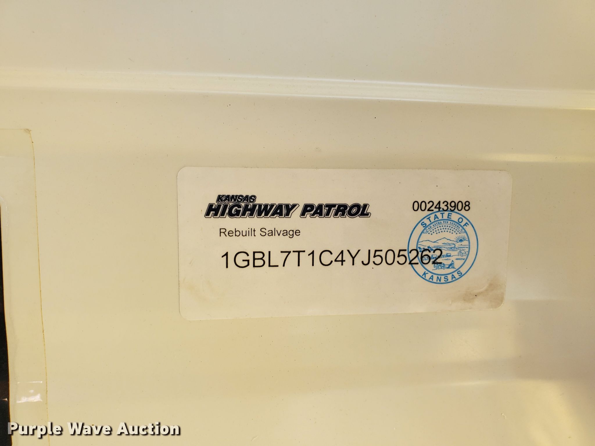 2000 Chevrolet Blue Bird school bus. 108,353 miles on odometer. Engine Caterpillar 3126, Displacement: 7.2L, Cylinders: 6, Fuel type: Diesel. Transmission Allison, Automatic. Chassis Axles: Single, Suspension: Spring, Brakes: Hydraulic, GVWR: 27,060 lbs. Interior Heat, Auxiliary controls, Passengers: 42. Tires Size: 10R22.5. Kansas rebuilt salvage title. Title distribution may be delayed up to 14 days from verification of funds. 1GBL7T1C4YJ505262. USD 271. 421 Main St. Stockton, KS 67669