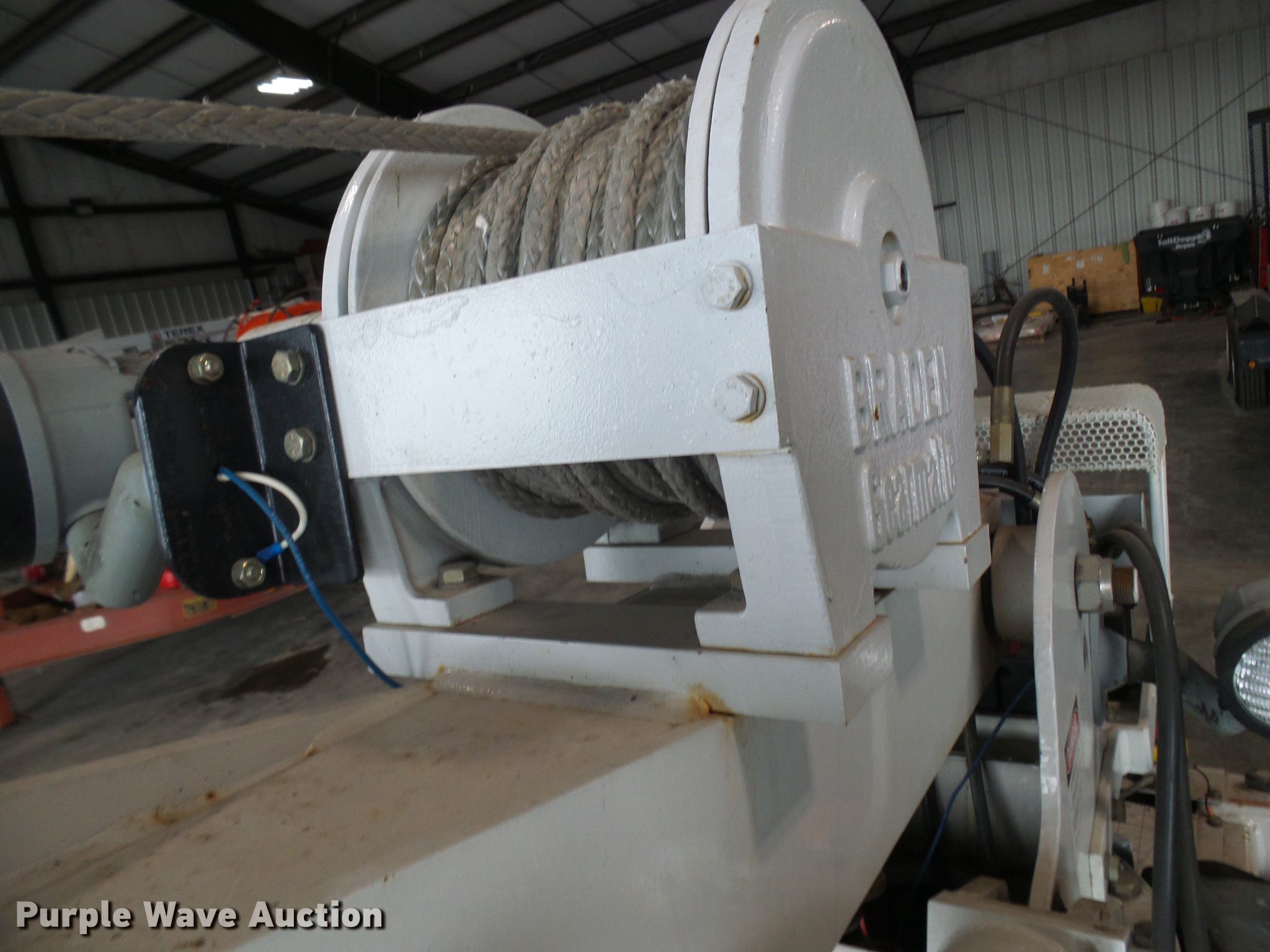 Purple Wave is selling a used Drilling Rig in Missouri. This item is a 2003 Pitman 4000-T mini digger derrick with the following: 479 hours on meter, Kubota D722E three cylinder diesel engine, Hydrostatic transmission, 2,500 lbs max lift capacity, 25' max lift height, Insulated and telescopic boom, Man basket, Ground boom controls, Remote control, 18" diameter auger, Bit extensions, Certification expired on March 12,2020, 9"W extendable tracks, Boom serial 0207200183, 10'L x 66"W trailer, Spring suspension, Electric brakes, Tandem axle, 215/85R16 tires, GVWR 10,400 lbs