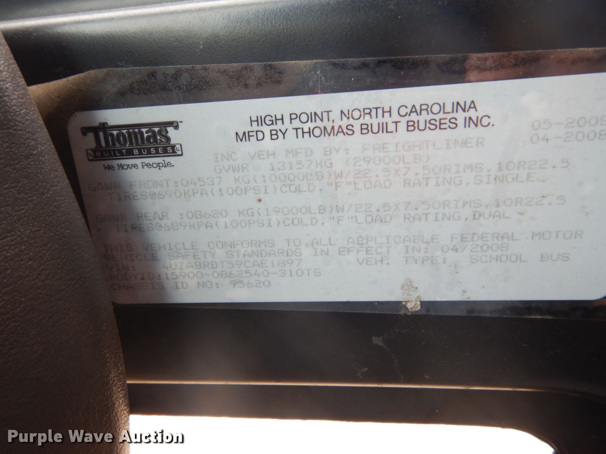 Purple Wave is selling a used Bus in Iowa. This item is a 2009 Freightliner Thomas Built school bus with the following: 166,565 miles on odometer, Engine hours: 12,351, Unit #: 553