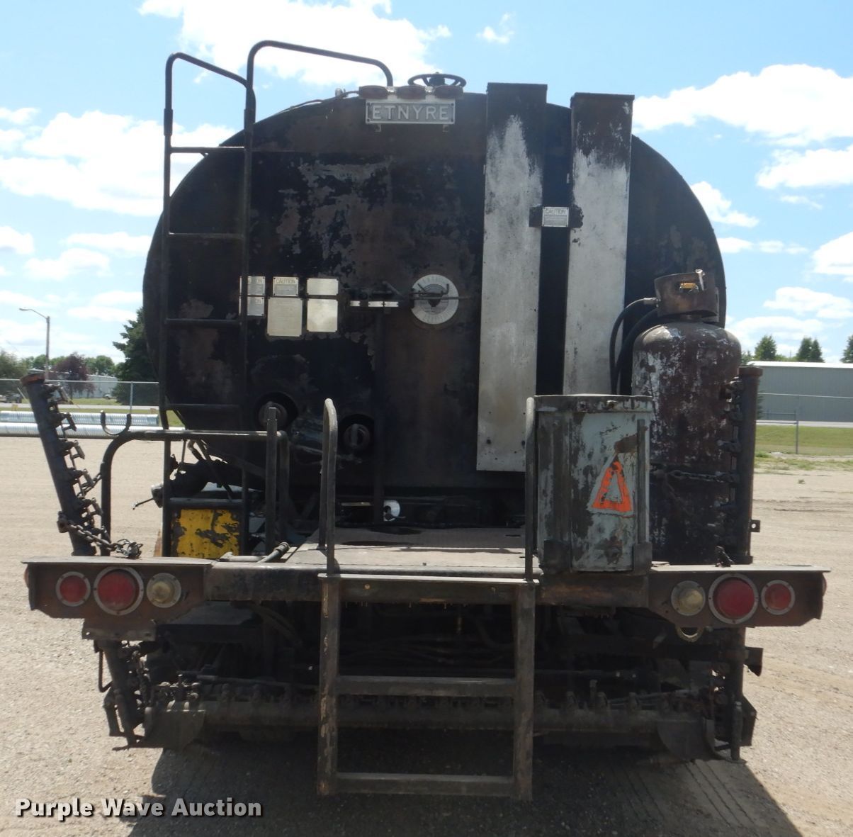 2001 International 4900 oil distributor truck. 2,963 miles on odometer. Engine International DT466E, Displacement: 7.6L, Cylinders: 6, Fuel type: Diesel. Transmission Spicer, Manual, Speed: 10. Chassis Axles: Tandem, Suspension: Walking beam, Brakes: Air, PTO, Wheelbase: 182". Interior AC, Heated mirrors. Operational Bed / tank Etnyre BT-HS, Serial: J-4527, Burner: LPG, Spray boom Width: 13', Folding, No. of nozzles: 40.. Tires Size: 11R22.5. South Dakota title. Seller is a government entity who will be assigning and distributing the title. Please contact the seller for distribution questions. 1HTSHAAR31H386486. Brown County. 3133 8th Ave NE. Aberdeen, SD 57401