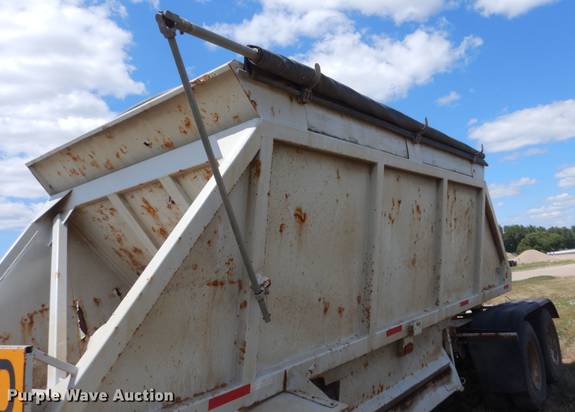 Purple Wave is selling a used Bottom Dump Trailer in South Dakota. This item is a 1999 Red River Dump25 bottom dump pup trailer with the following: 38'L overall, 25'L x 98"W body, Air operated clamshell gate, Tarp, Steel construction, Single leg landing gear, Spring suspension, Air brakes, Tandem axle, Steel wheels, 11R22.5 tires