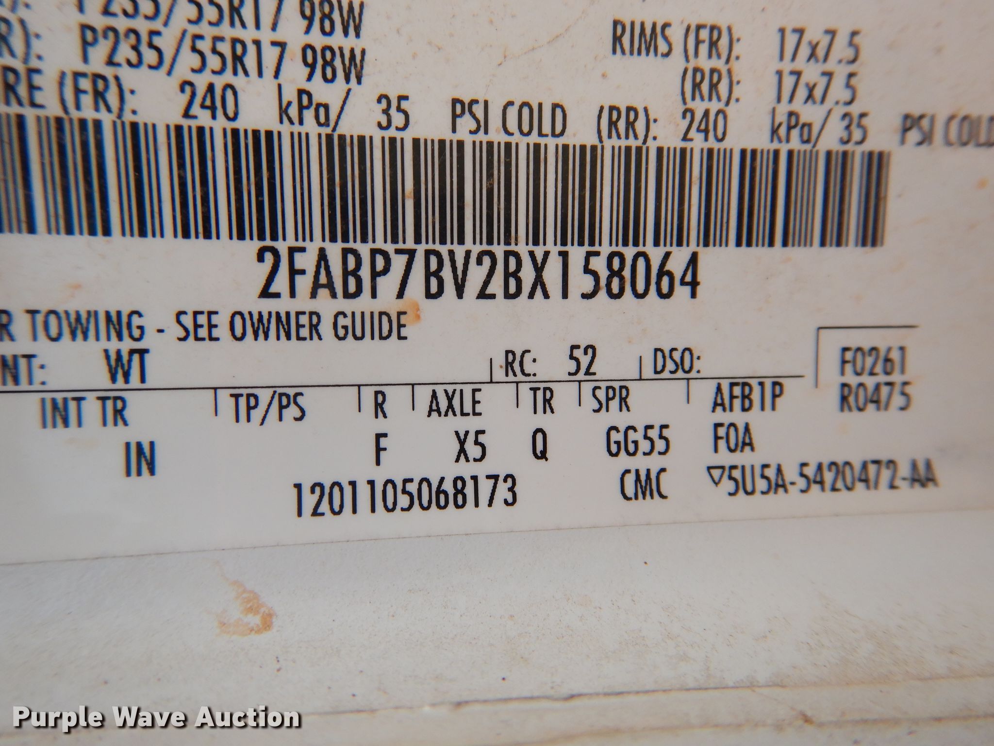 2011 Ford Crown Victoria Police Interceptor. 111,927 miles on odometer. Engine Displacement: 4.6L V8 SOHC 16V FFV, Cylinders: 8, Fuel type: Gas. Transmission Automatic. Interior AC, Heat, Power windows, Power locks. Tires Size: 235/55R17. Notes Unknown operating condition. Oklahoma title. 2FABP7BV2BX158064. Noble County Sheriff's Office. 721 Cedar St. Perry, OK 73077