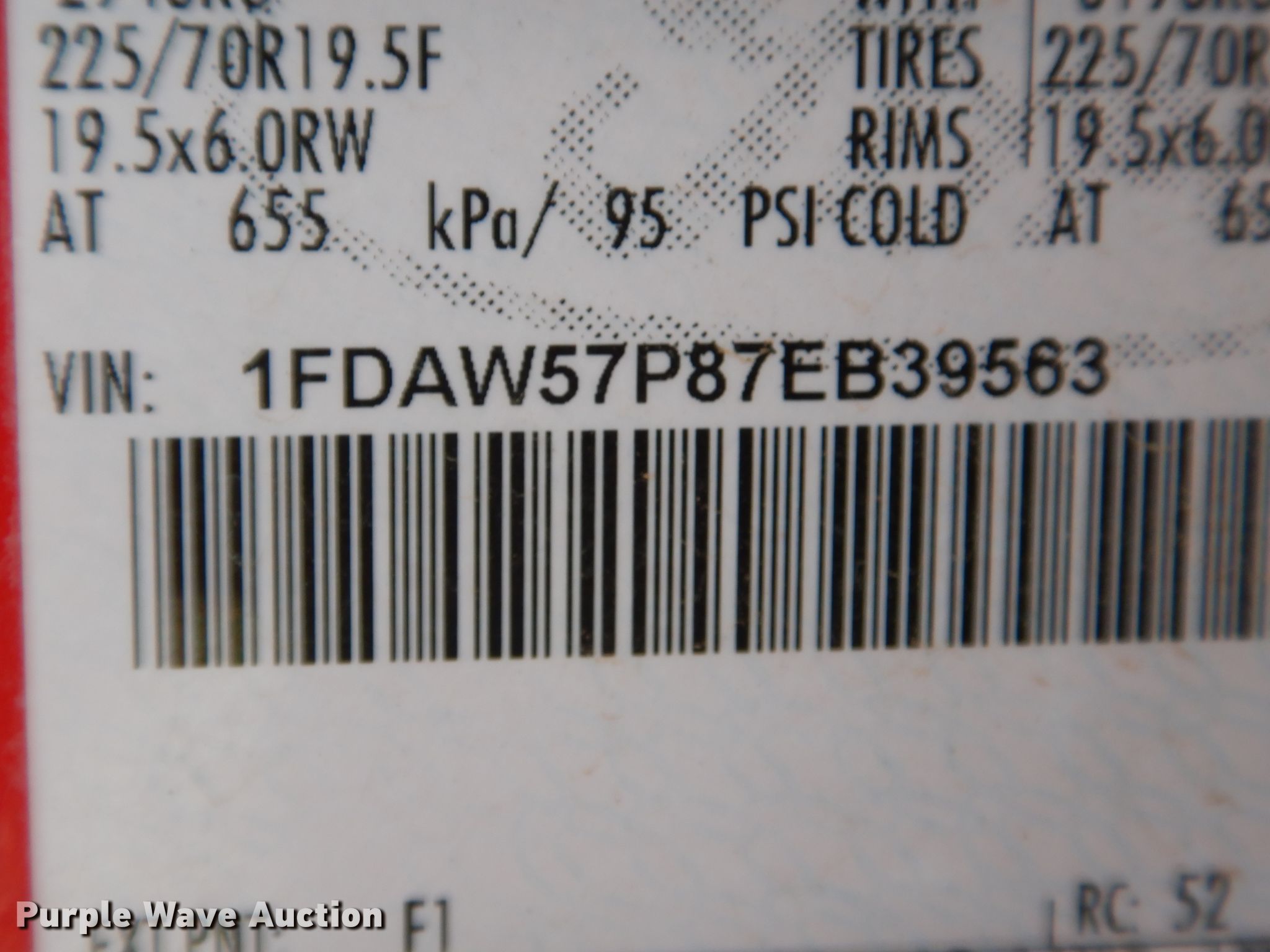 2007 Ford F550 Super Duty truck cab and chassis. 32,029 miles on odometer, Unit #: 5002. Engine Displacement: 6.0L V8 OHV 32V, Cylinders: 8, Fuel type: Diesel. Transmission Automatic, Four wheel drive. Chassis Axles: Single, Suspension: Spring, Brakes: Hydraulic, Truck chassis: 175", GVWR: 17,950 lbs FAWR: 6,500 lbs, RAWR: 13,660 lbs. Interior AC, Heat, Cruise control. Operational Fuel tank: Single. Tires Size: 225/70R19.5. Notes Engine issues, Non-operational unit. Texas title. 1FDAW57P87EB39563. City of Borger. 801 N Florida St. Borger, TX 79007