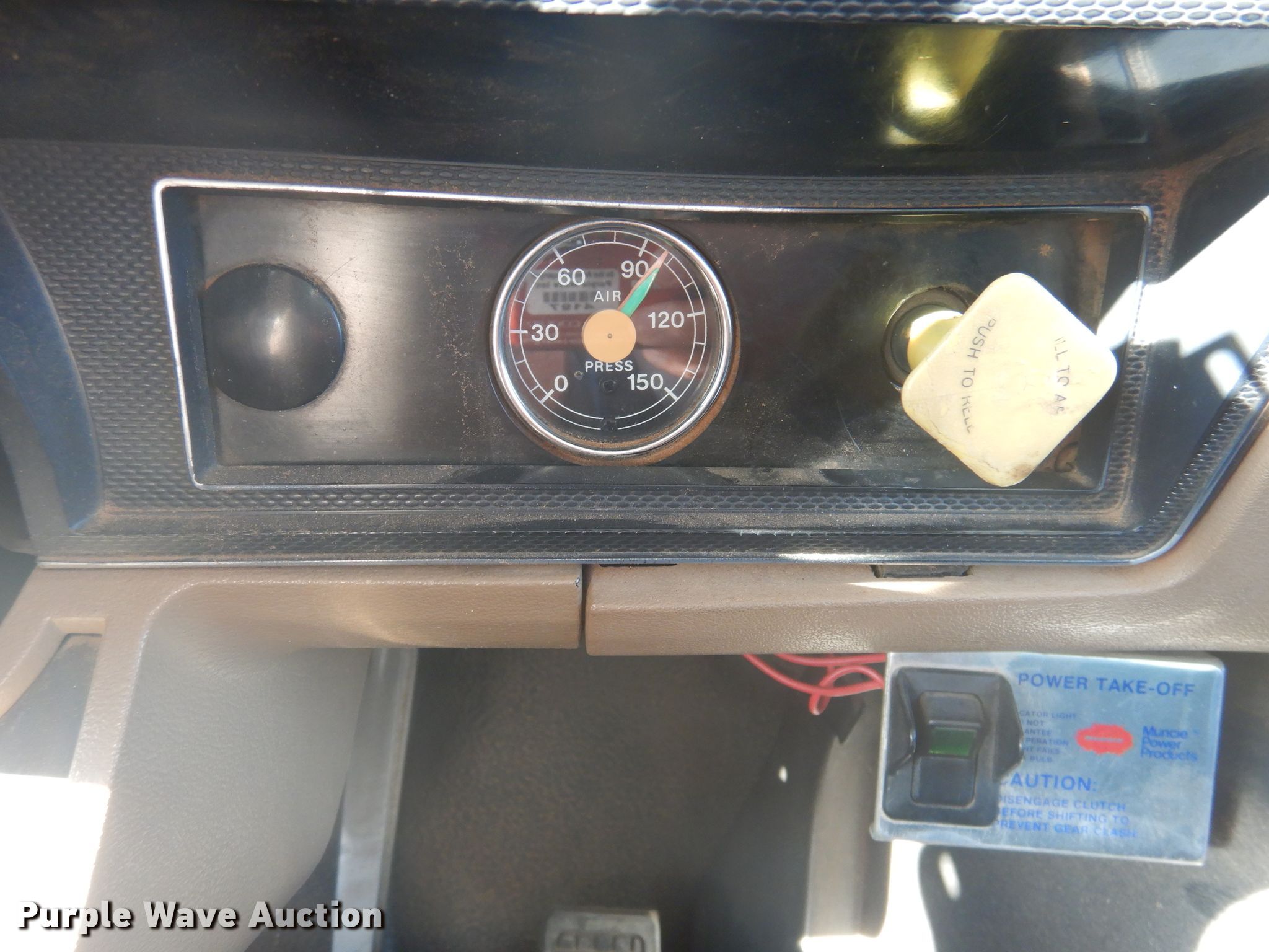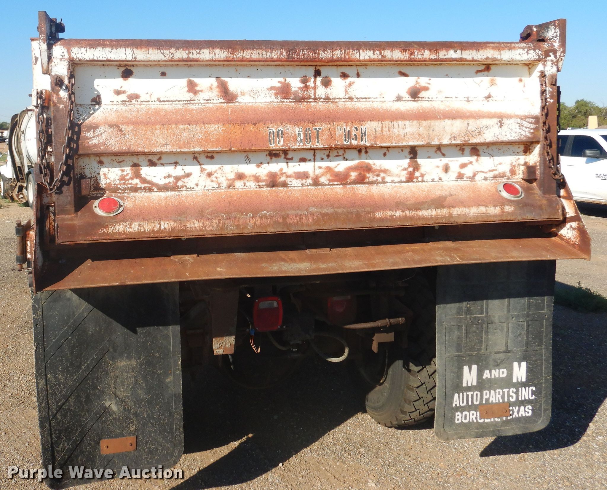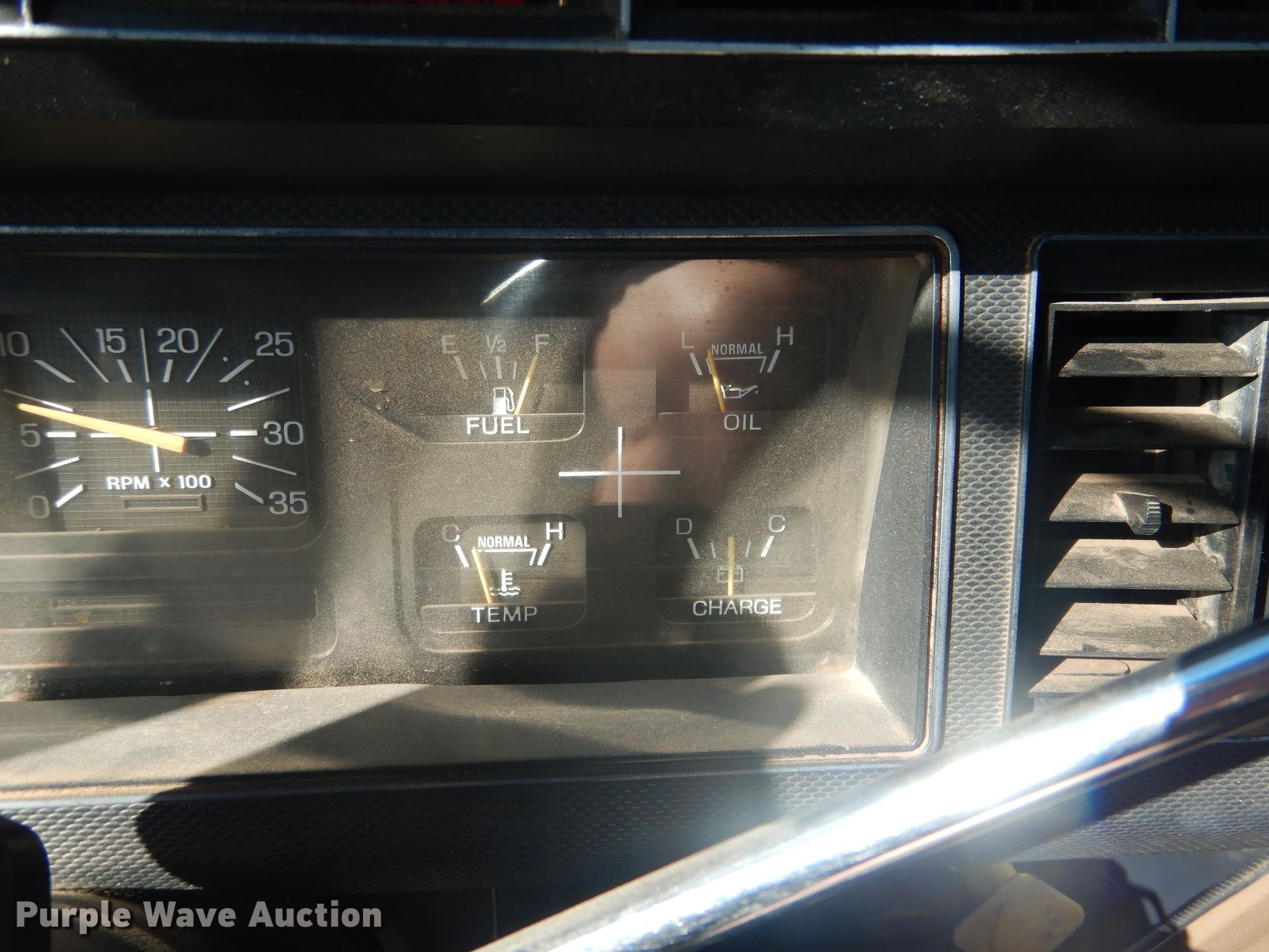 1994 Ford F800 dump truck. 58,665 miles on odometer, Engine hours: 6,482, Unit #: 5041. Engine Cummins, Displacement: 8.3L, Cylinders: 6, Fuel type: Diesel. Transmission Automatic. Chassis Double frame, Axles: Single, Suspension: Air, Brakes: Air, PTO, GVWR: 33,000 lbs. Interior AC, Heat. Operational Dump bed 10.75' L x 94.5" W, Side height: 27.5", Side board height: 10", Bed type: Steel, Ram: Single , End gate: Manual. Tires Size: 11R22.5. Texas title. 1FDXK84E6RVA07642. City of Borger. 801 N Florida St. Borger, TX 79007