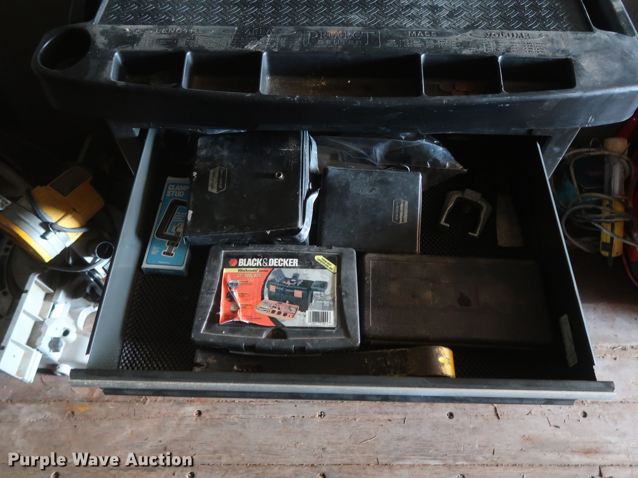 Purple Wave is selling a used Tools in Oklahoma. This item is a Craftsman toolbox with tools with the following: 26" x 18", Bits, Clamps, Service kit