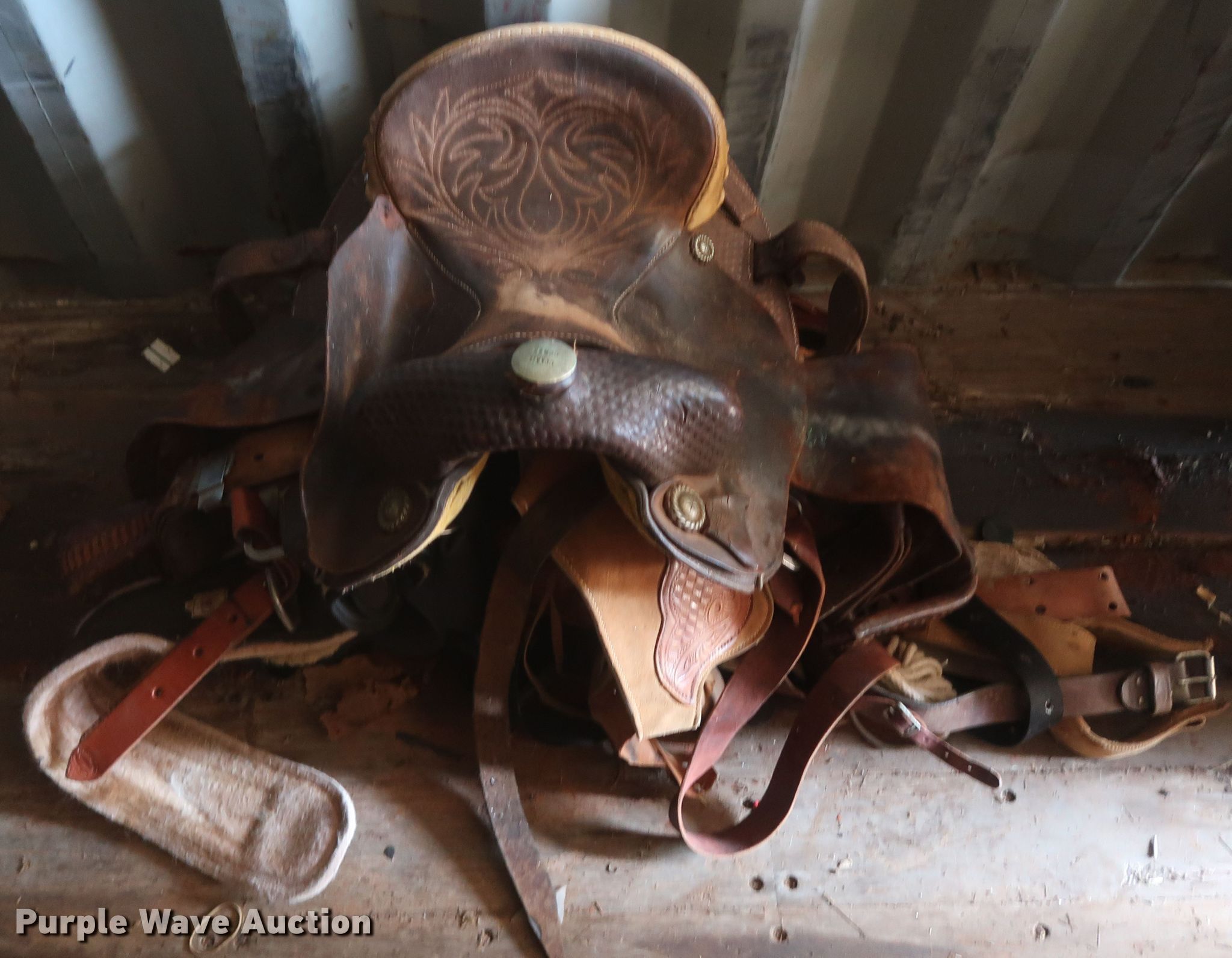 Purple Wave is selling a used Livestock Equip. in Oklahoma. This item is a (3) equestrian horse saddles with the following: (3) equestrian horse saddles. Oklahoma District Attorneys Council. 10501 US-77. Slaughterville, OK 73051