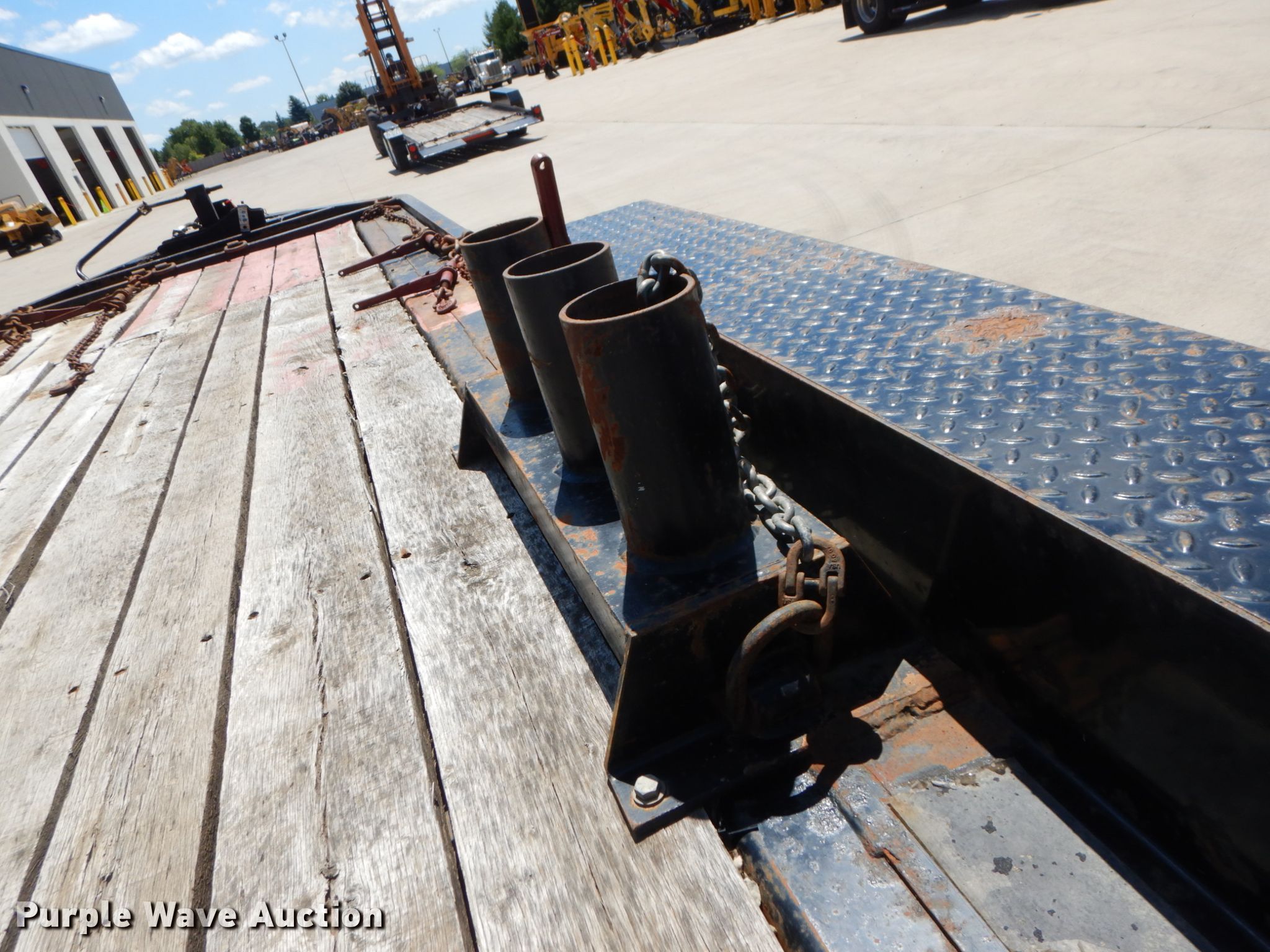Purple Wave is selling a used Equip. Trailer in Illinois. This item is a 2015 Lucon equipment trailer with the following: 32'L x 102"W overall, 20'6"L x 80"W wood deck, 28" floor height, 4' tail length, 5'L ramps, Single leg landing gear, Spring suspension, Electric brakes, Tandem axle, Steel wheels, 235/75R17.5 tires, GVWR 25,990 lbs, GAWR 12,000 lbs, Chains and binders included