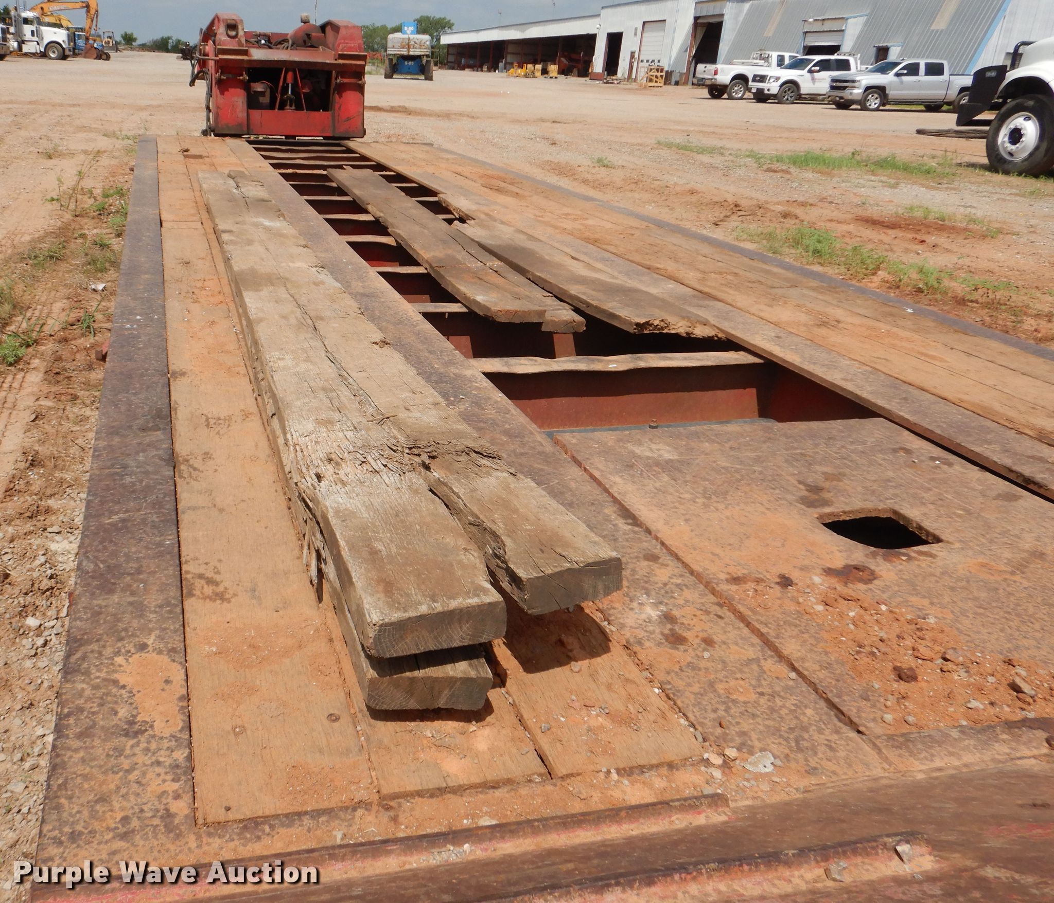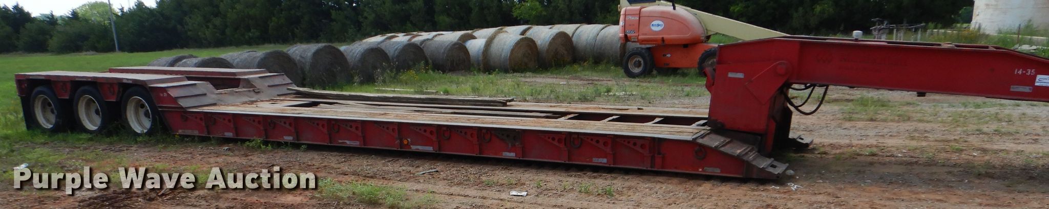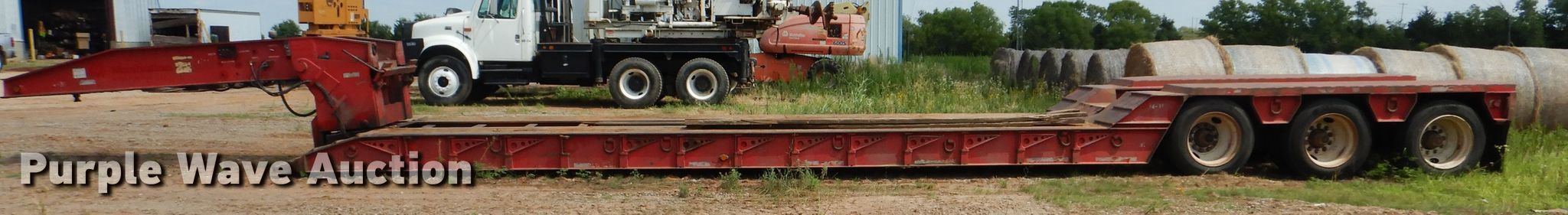 Purple Wave is selling a used Equip. Trailer in Oklahoma. This item is a 2000 Atoka 06-RGN-50-3 lowboy equipment trailer with the following: 53'L x 101"W overall, 26'L x 90"W wood deck, 50 ton capacity, Detachable neck, Self-contained hydraulics, Honda GX390 gas engine, Air suspension, Air brakes, Triple axle, 255/70R22.5 tires, GVWR 25,000 lbs