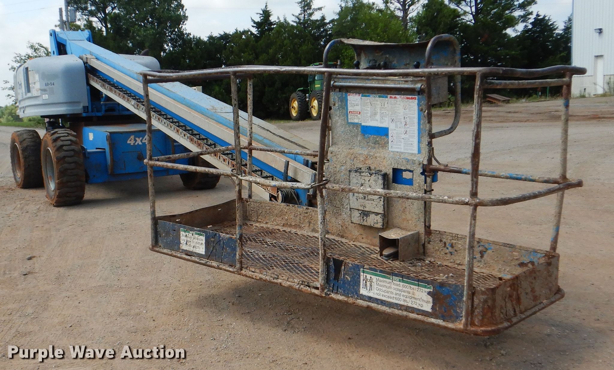 2008 Genie S-80 boom lift. 1,595 hours on meter, Serial: S8005-4068, Unit #: 80-54. Engine Deutz BF4L, Cylinders: 4, Fuel type: Diesel, HP: 77. Operational Rough terrain, Maximum lift capacity: 500 lbs, Maximum reach length: 71' 11", Maximum lift height: 80', Platform: 72" L x 36" W, Controls: Platform, Ground, Travel speed: 3.5 mph, Certification valid through: 11/2020. Tires Tire size: 385/65-12. Manhattan Road & Bridge. 26775 County Rd 110. Perry, OK 73077