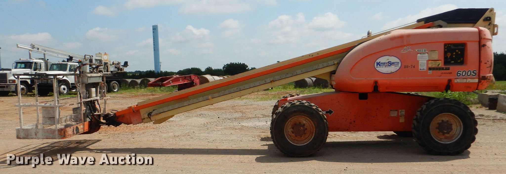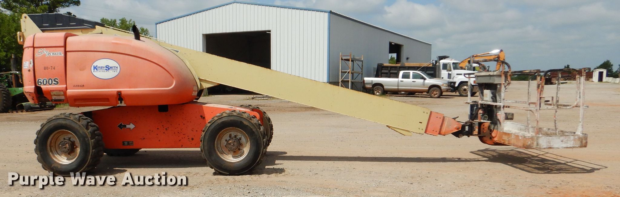 Purple Wave is selling a used Boom Lift in Oklahoma. This item is a 2008 JLG 600S boom lift with the following: 5,209 hours on meter, Serial: 0300122519, Unit #: 80-74