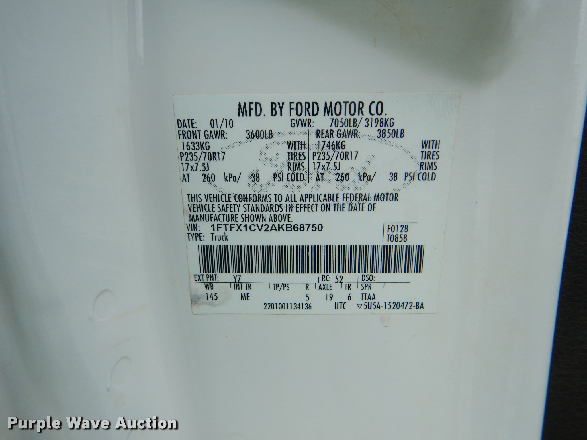 Purple Wave is selling a used 1/2 Ton Pickup or Van in Oklahoma. This item is a 2010 Ford F150 SuperCab pickup truck with the following: 248,582 miles on odometer, Unit #: 10-95