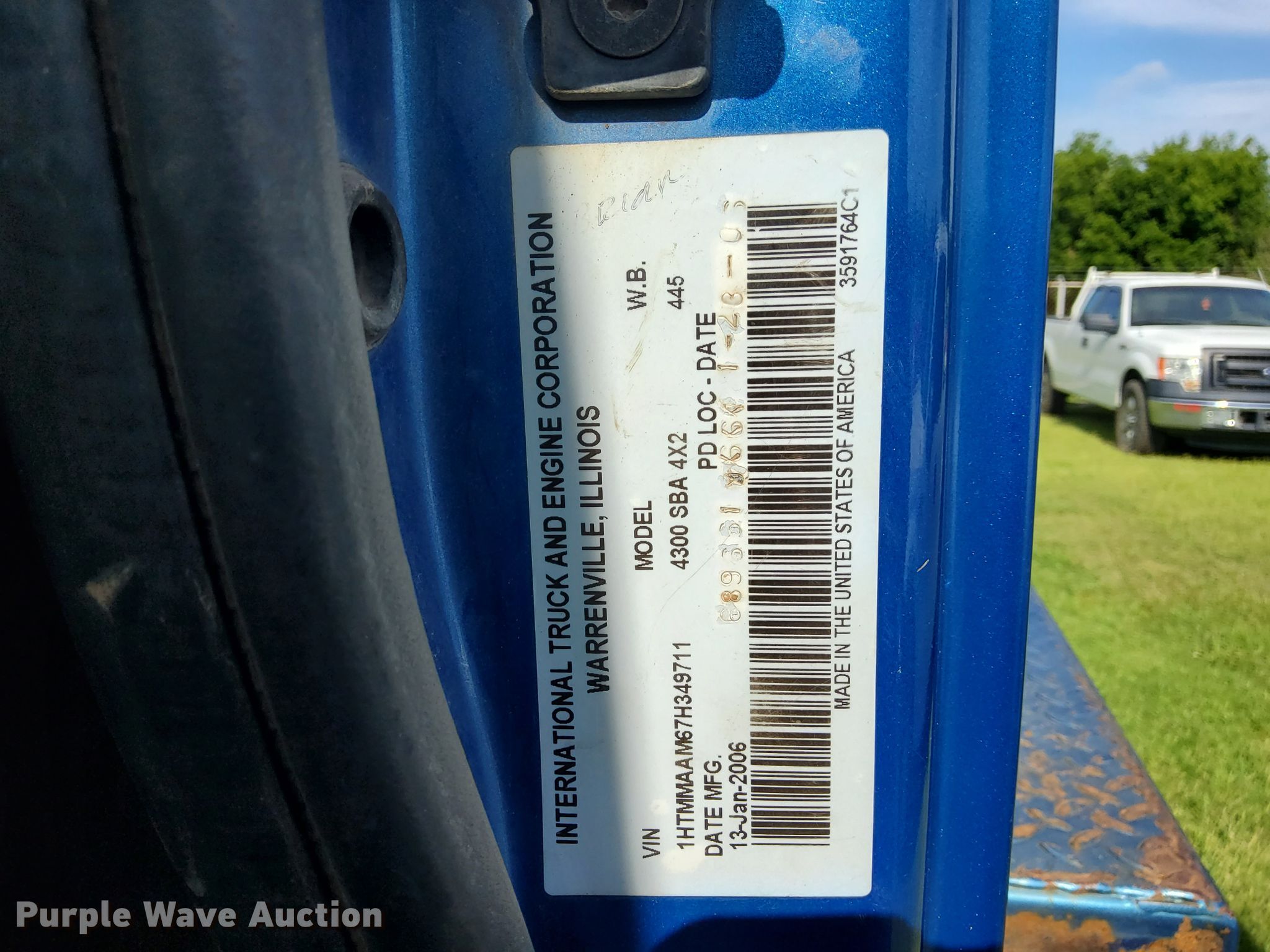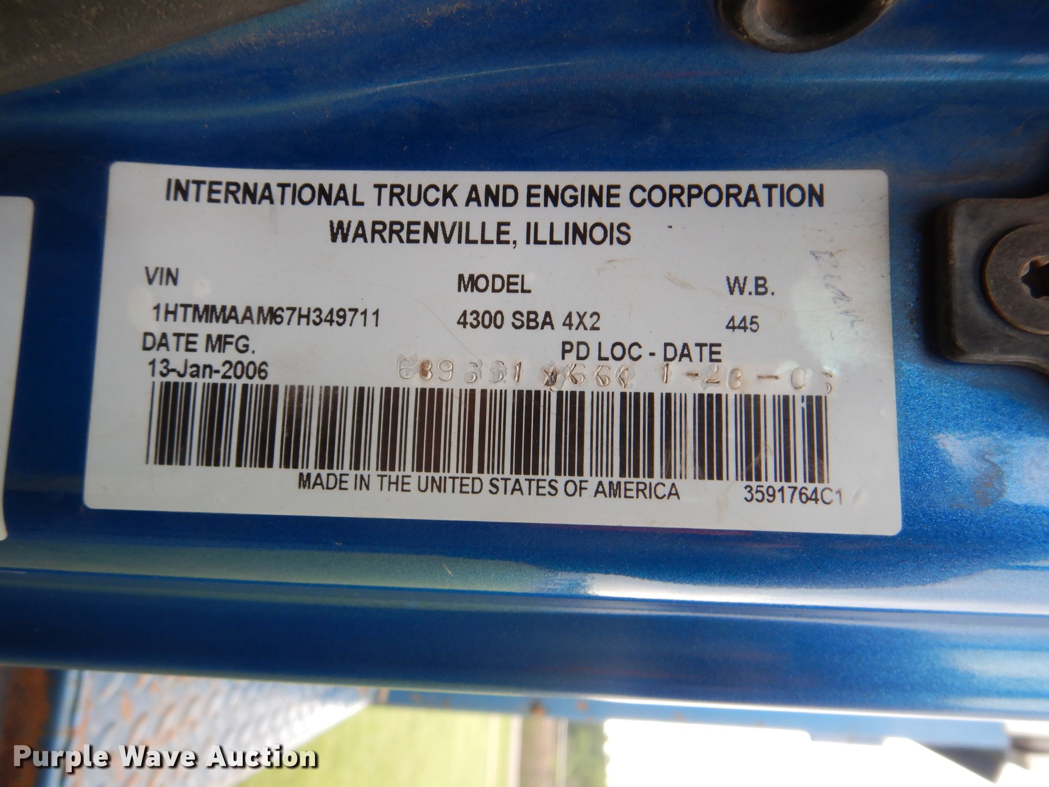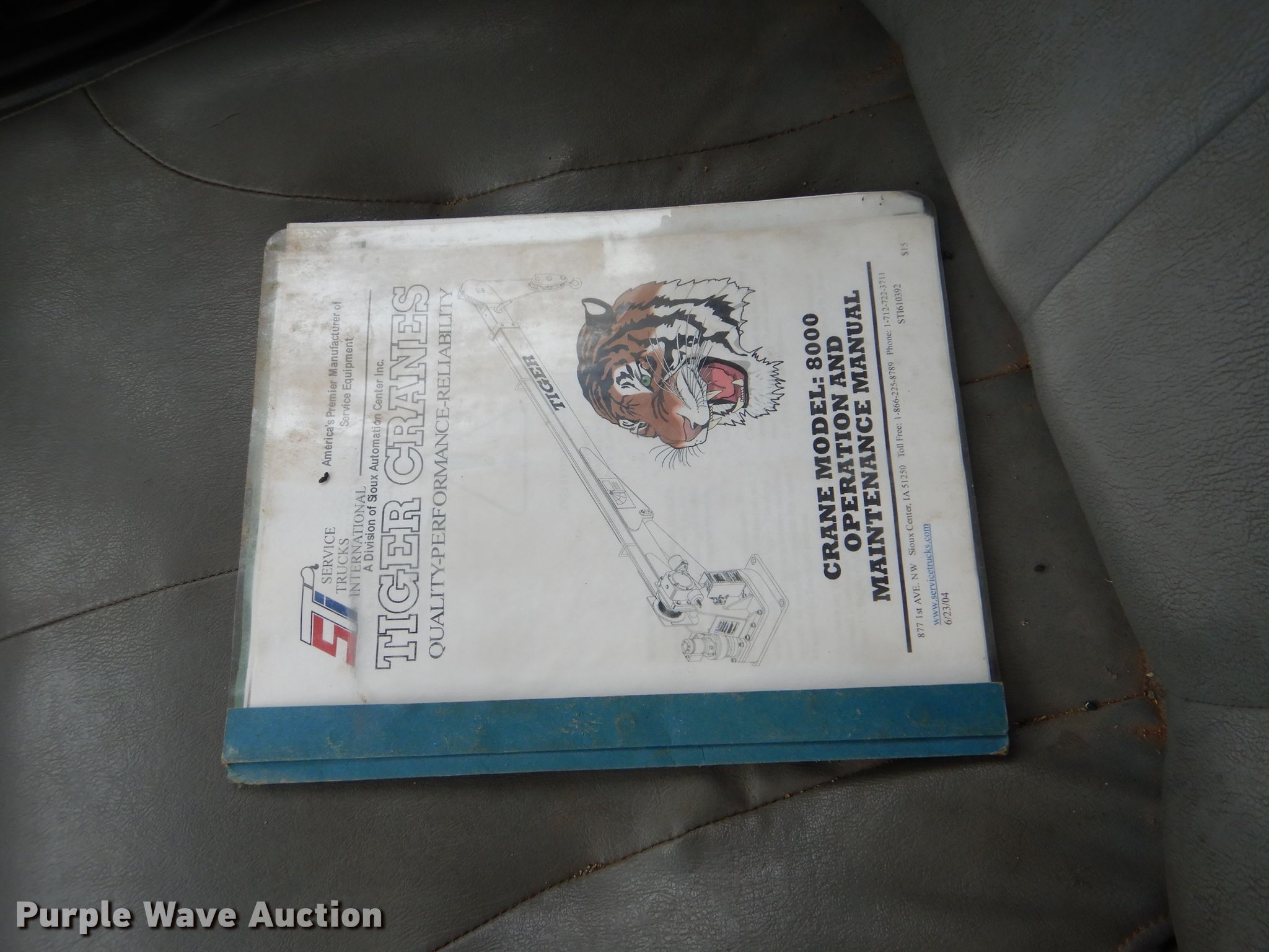 2007 International 4300 utility truck with crane. 323,072 miles on odometer. Engine International DT466, Displacement: 7.6L, Cylinders: 6, Fuel type: Diesel. Transmission International Six Plus, Manual, Speed: 6. Chassis Axles: Single, Suspension: Spring, Brakes: Hydraulic, Wheelbase: 445". Interior AC, Heat. Operational Utility bed Length: 15', Torch bottle rack Tanks not included, Crane Service Truck 8000, Boom length: 18', Maximum lift capacity: 8,000 lbs. Tires Size: 11R22.5. Notes Windshield chipped or cracked. Oklahoma title. 1HTMMAAM67H349711. Manhattan Road & Bridge - Open inspection Sept. 2. 5429 E. Hancock St. Muskogee, OK 74403